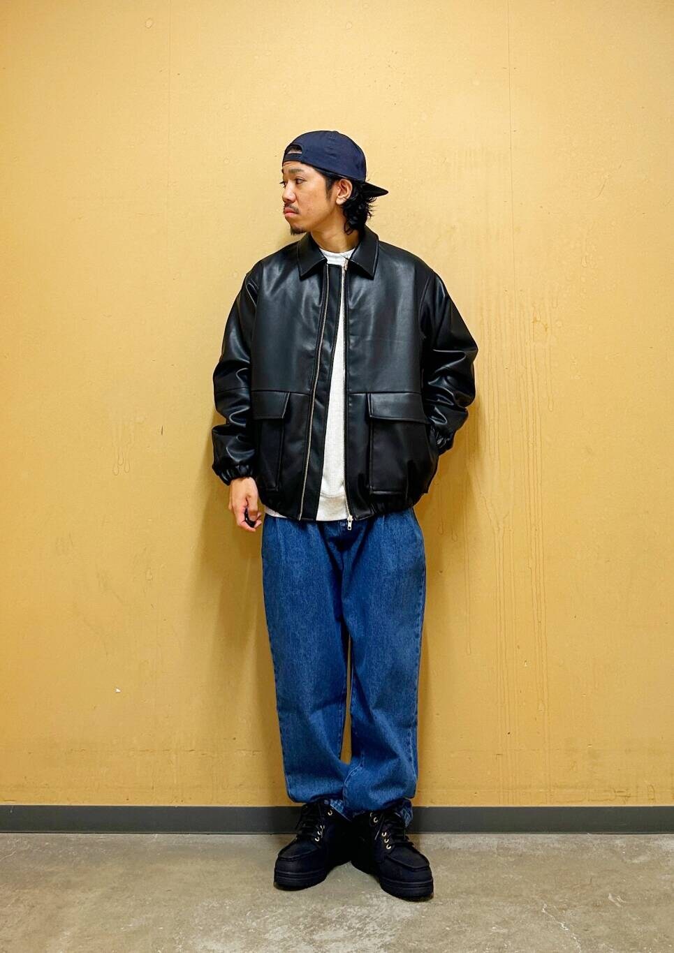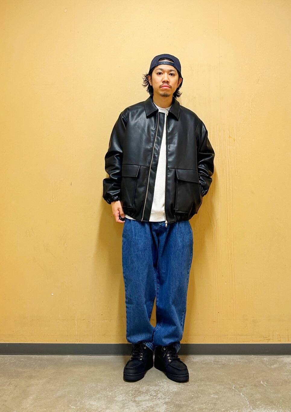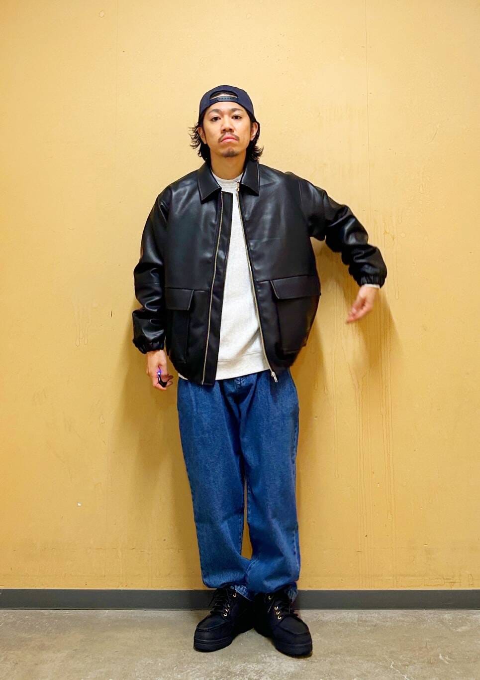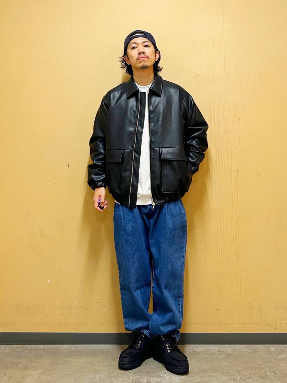 今回はフライトジャケットとデニムトラウザーを使用したコーディネート。
