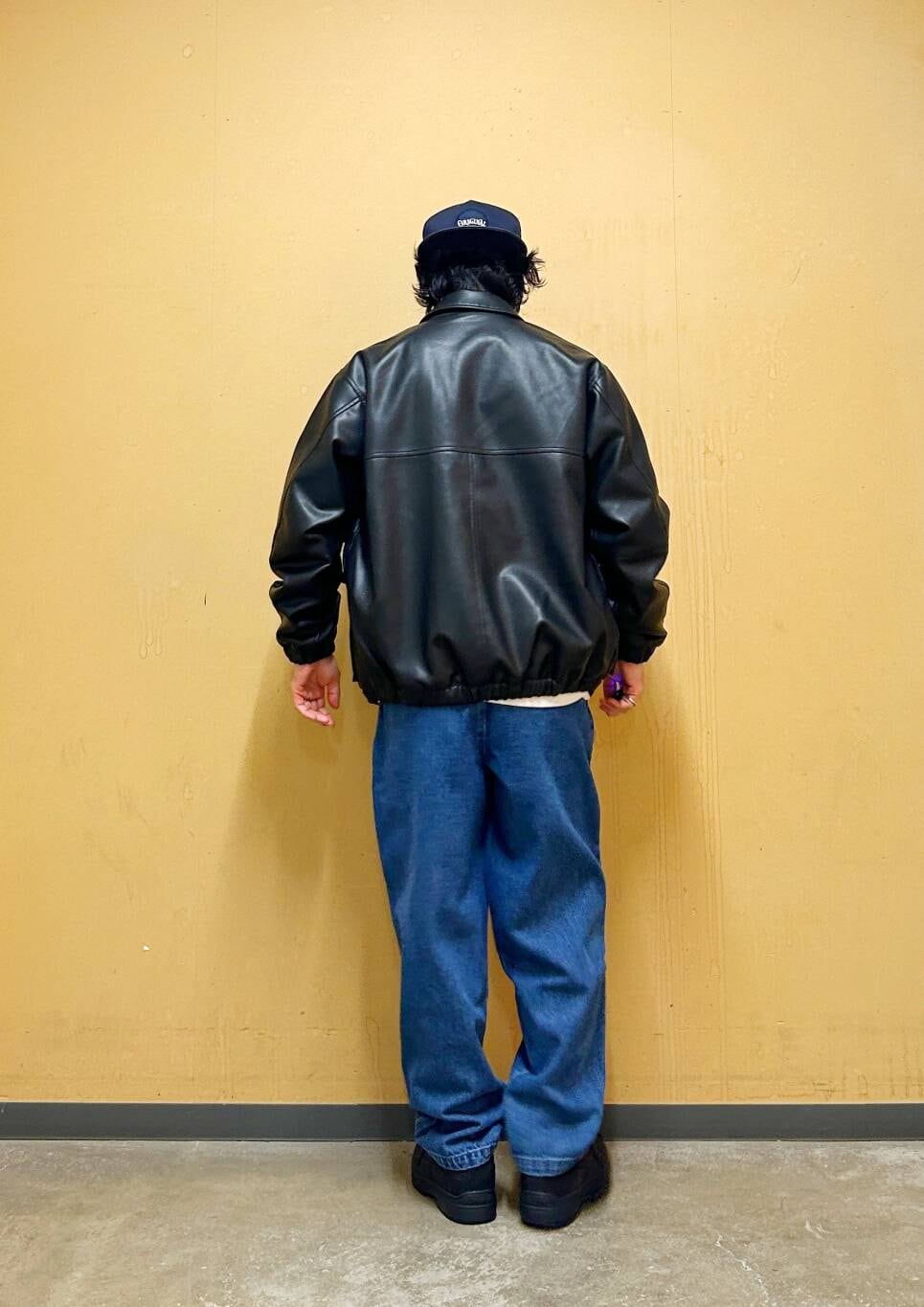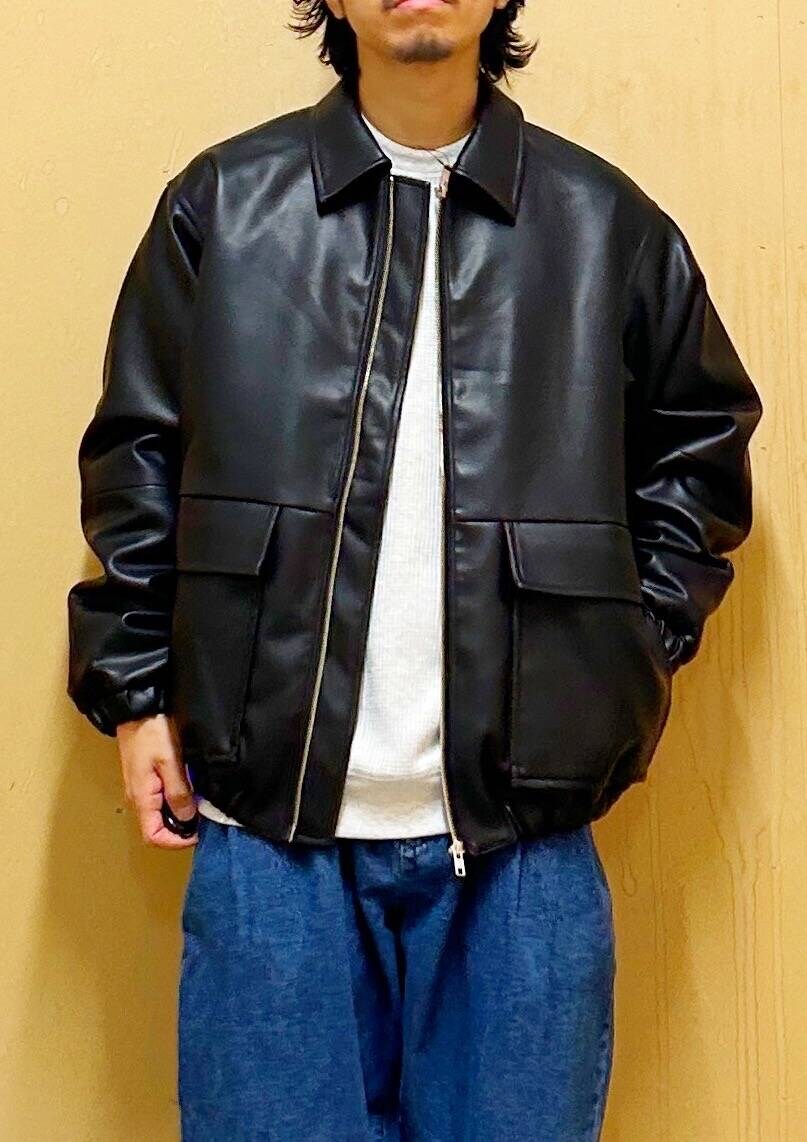 ラムレザー風のフェイクレザーを使用しており、程よい光沢感と肉厚に加え、柔らかな着心地が魅力の一着。