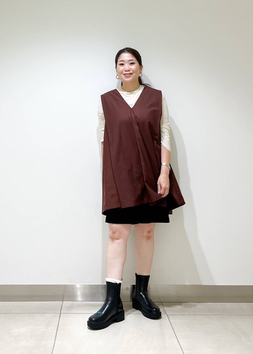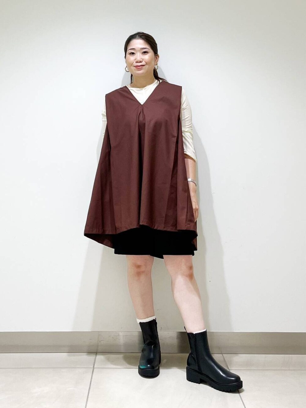 ミニワンピース×ショートブーツの組み合わせは鉄板で可愛いです☆