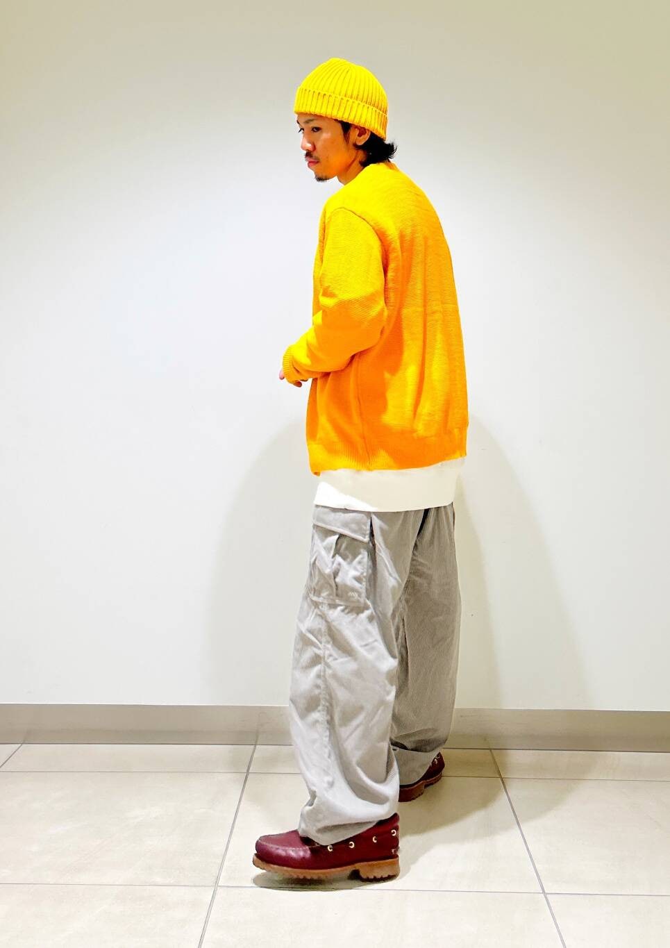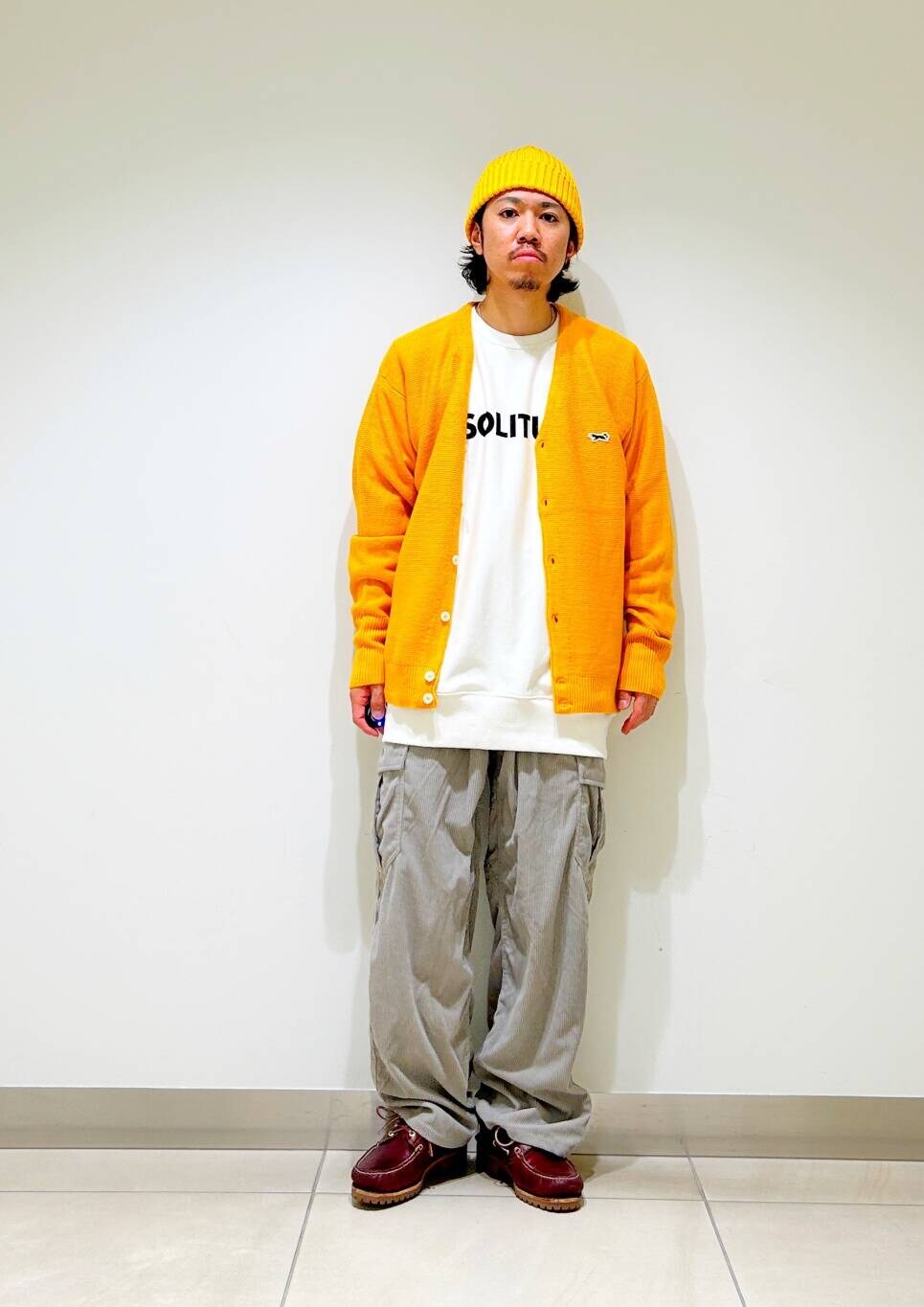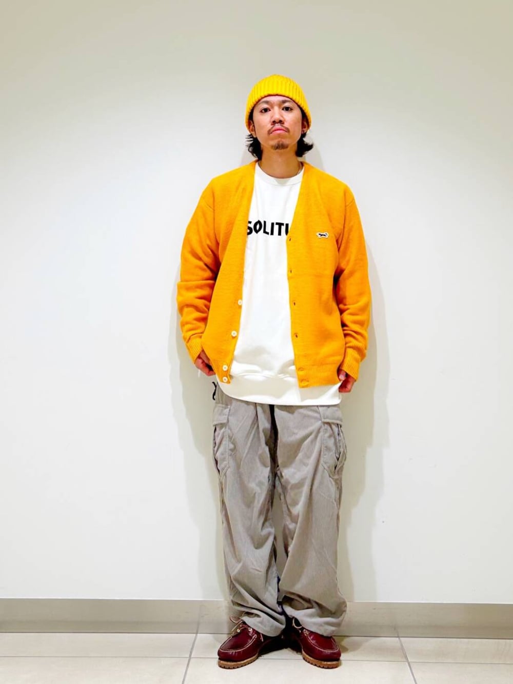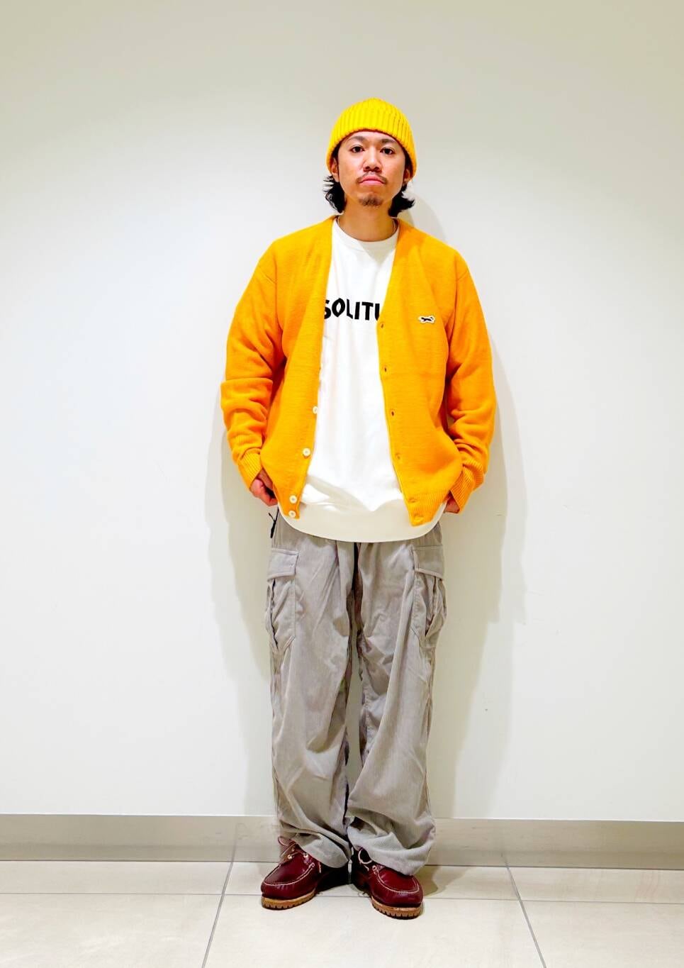 今回はfoxカーディガンとSTONEMASTER×ROKX×DOORS TERRAIN CARGO PANTSを使用したコーディネート。