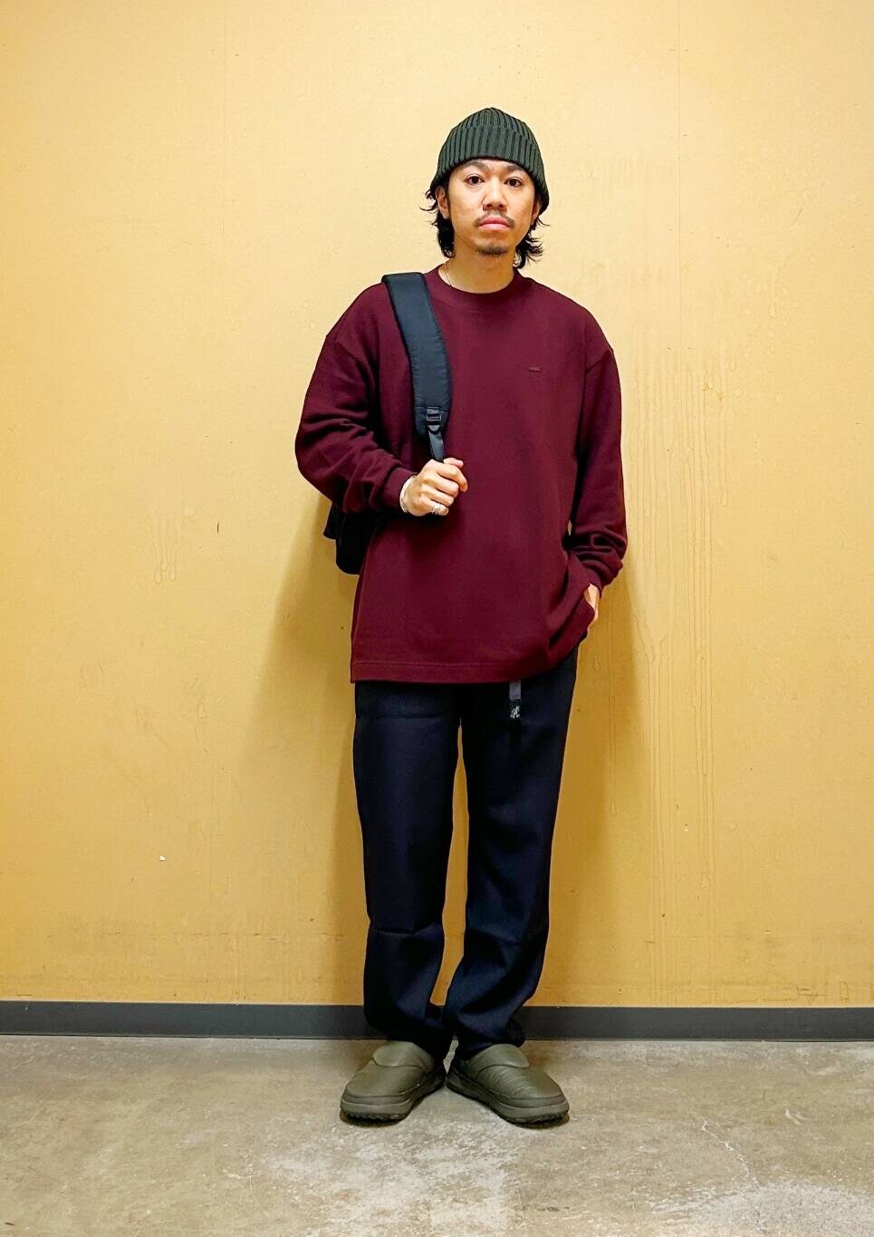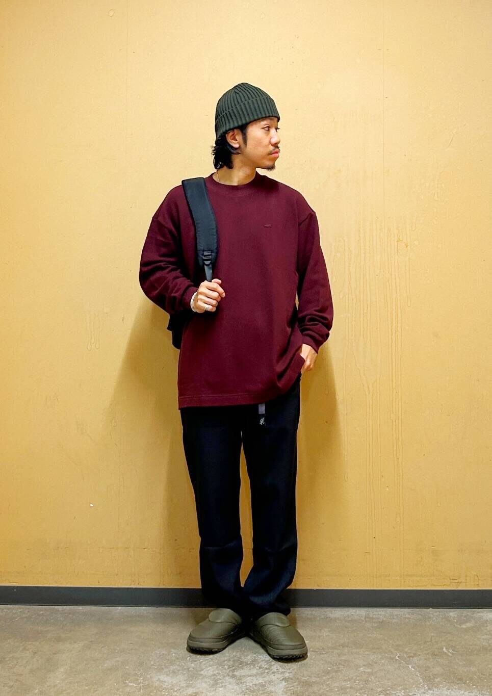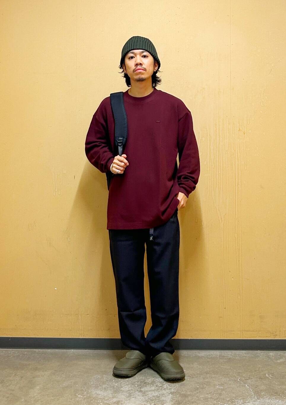 今回はLACOSTE×DOORS thick pique mock Long-Sleeveとグラミチ別注ウールライクパンツを使用したコーディネート。