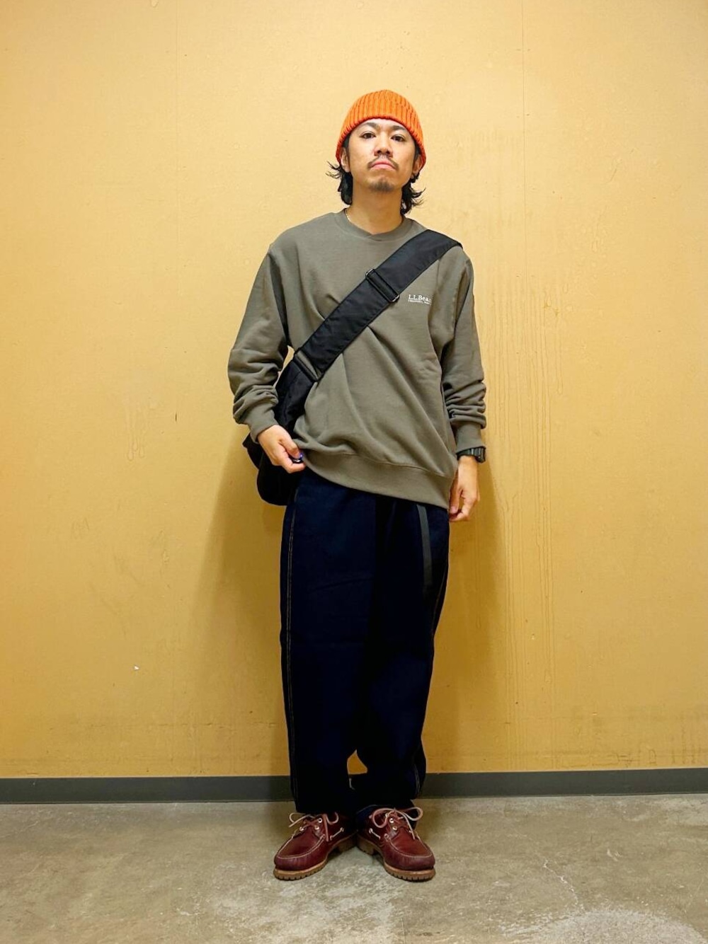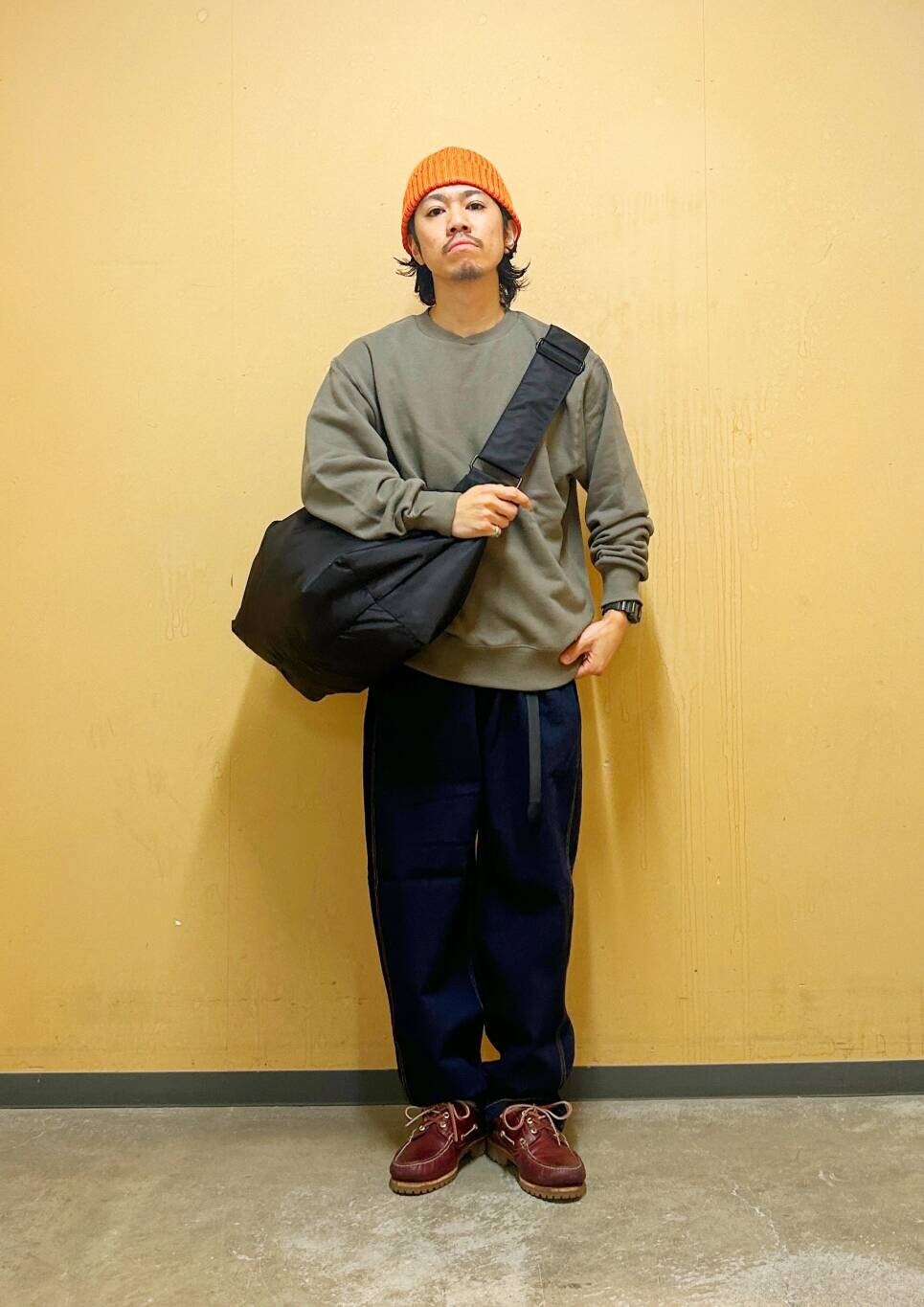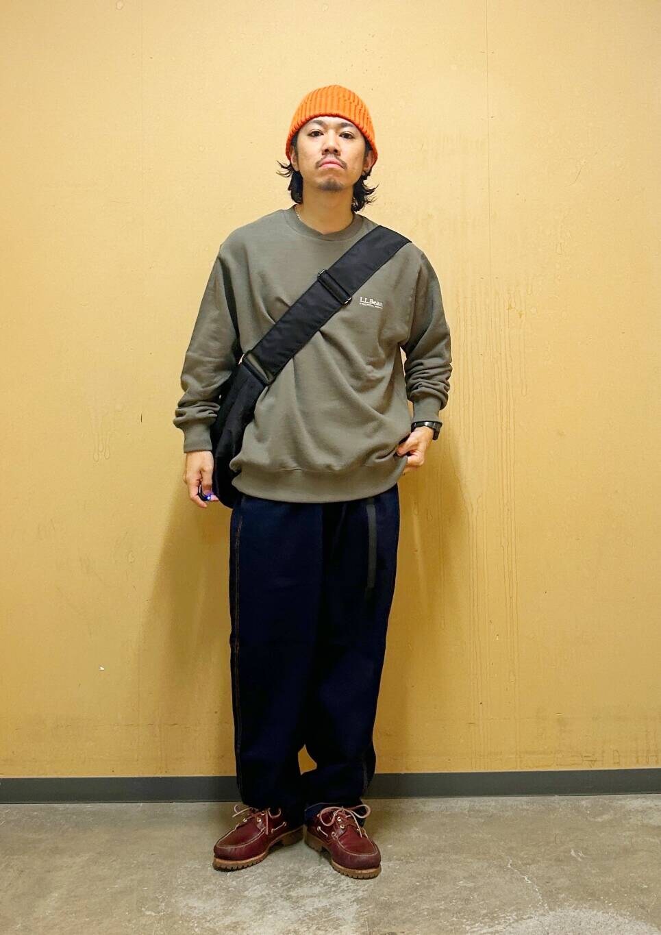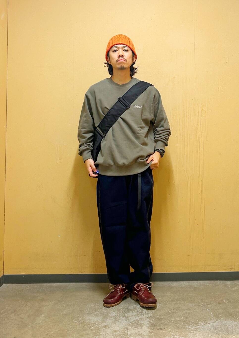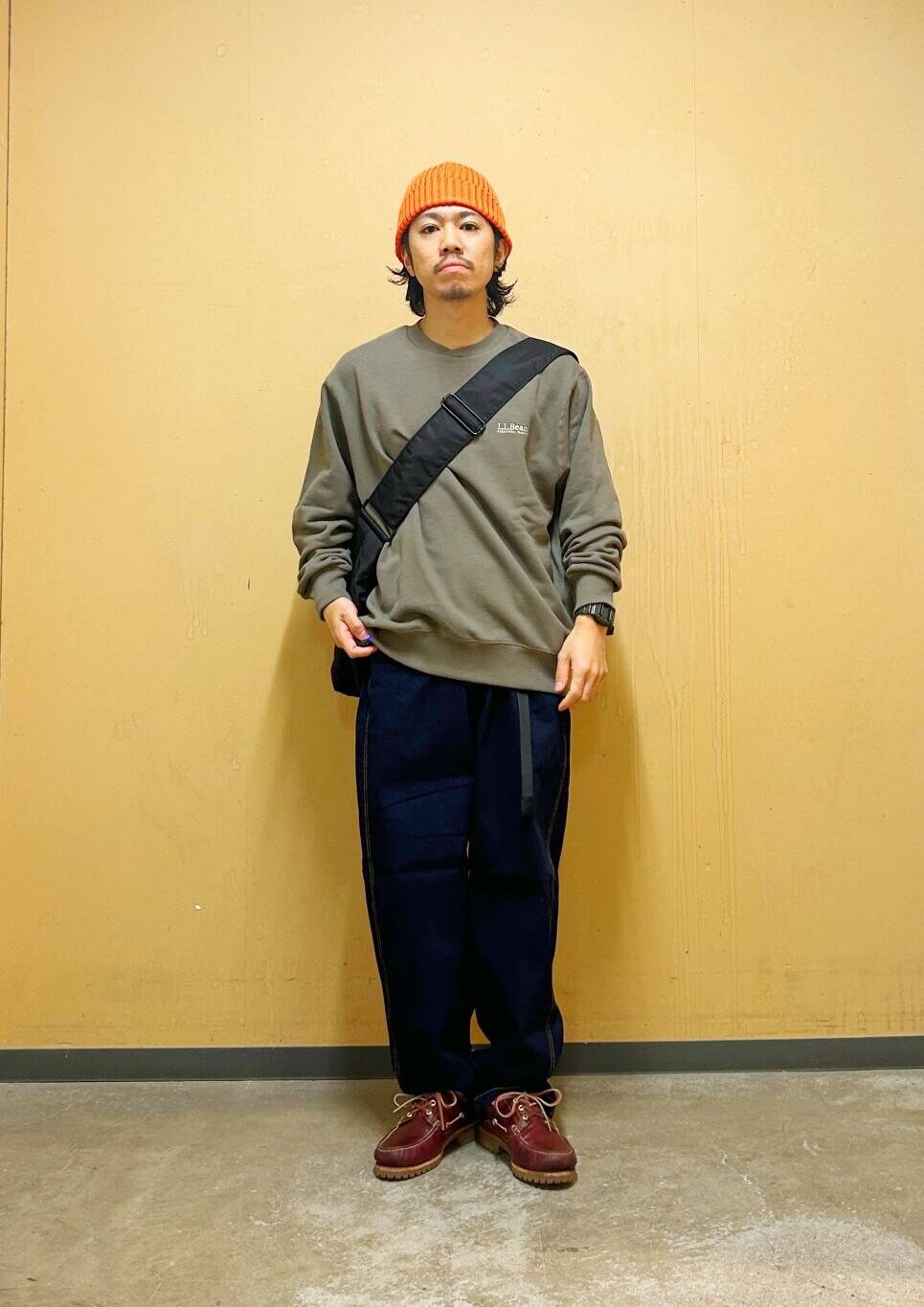 今回はエルエルビーン スウェットとグラミチ別注デニムパンツを使用したコーディネート。