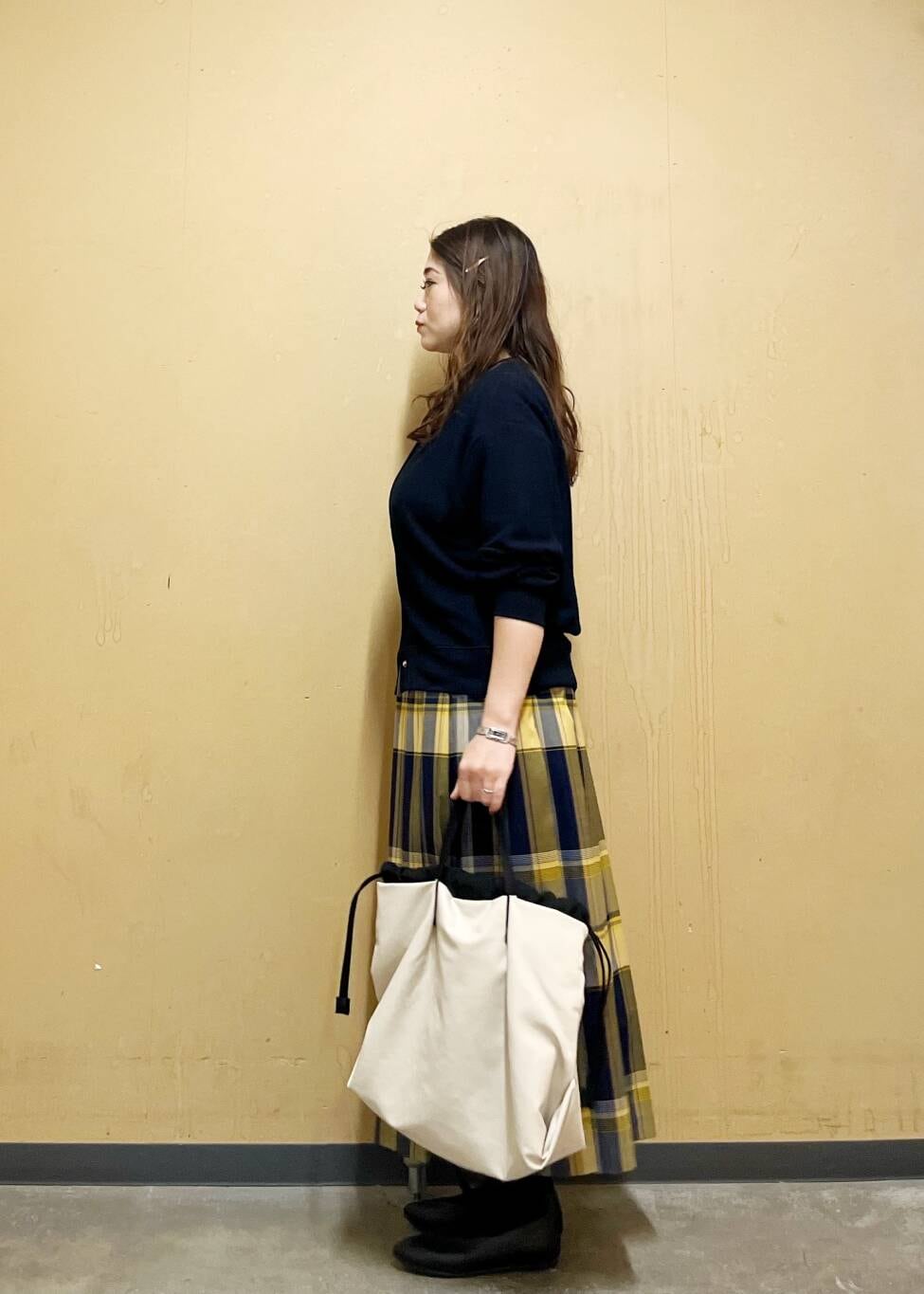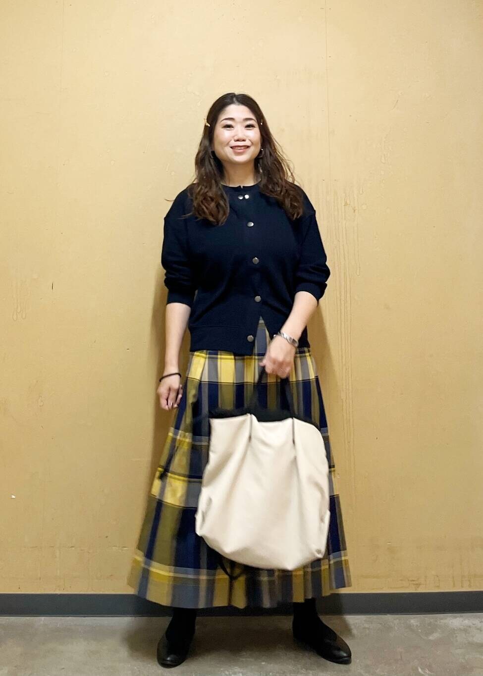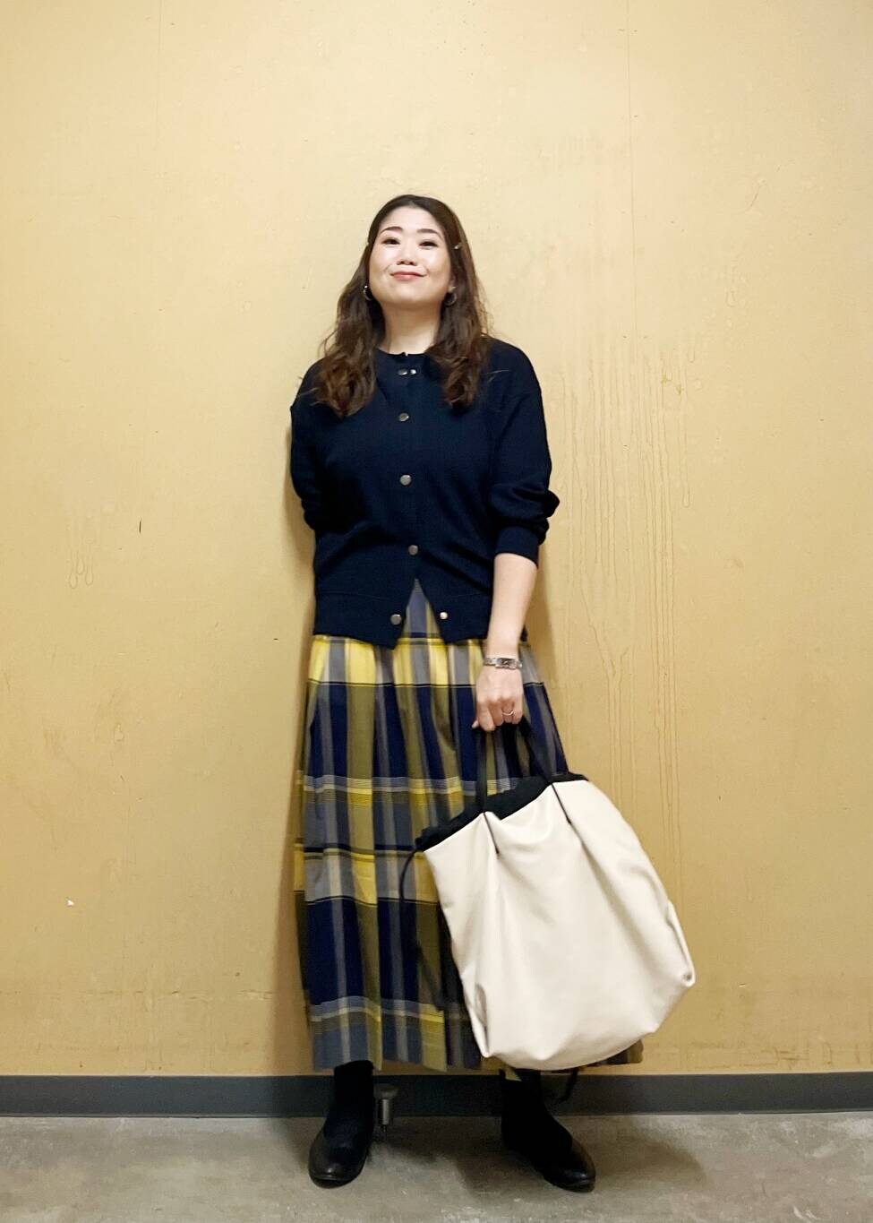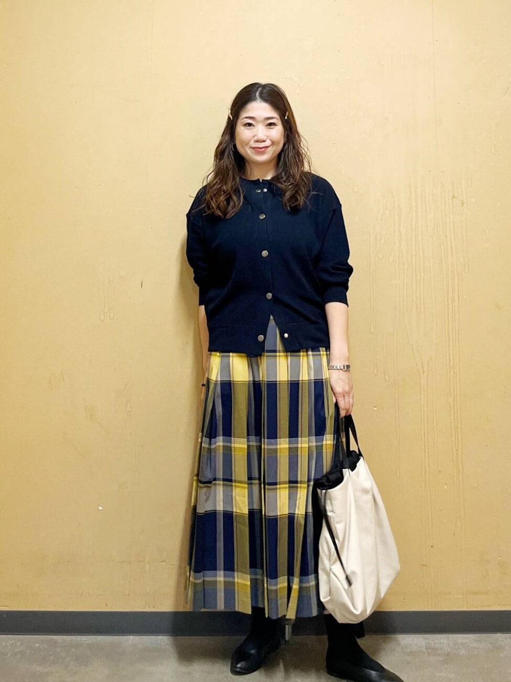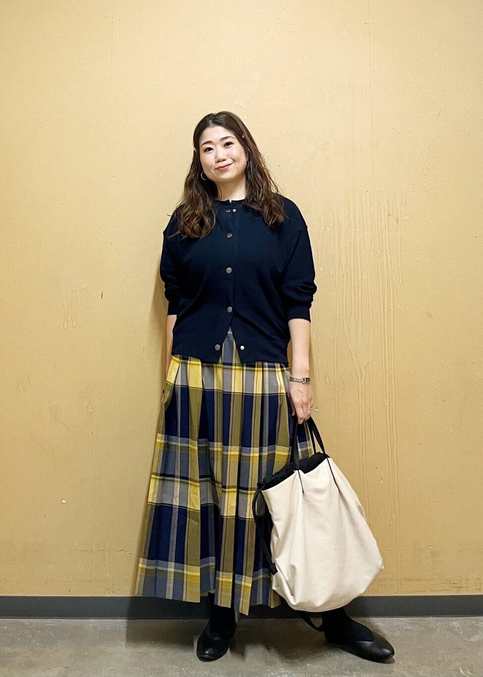ネイビー×チェック柄スカートが秋っぽくって、とっても可愛いです〜☆