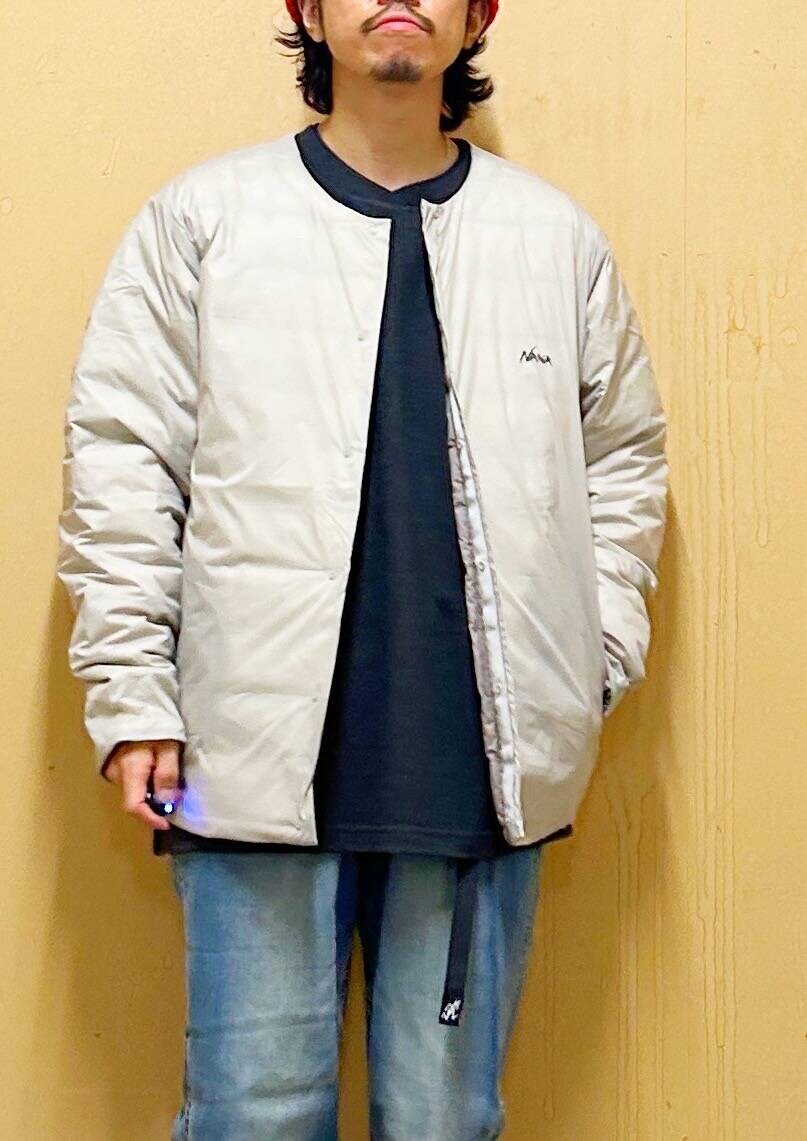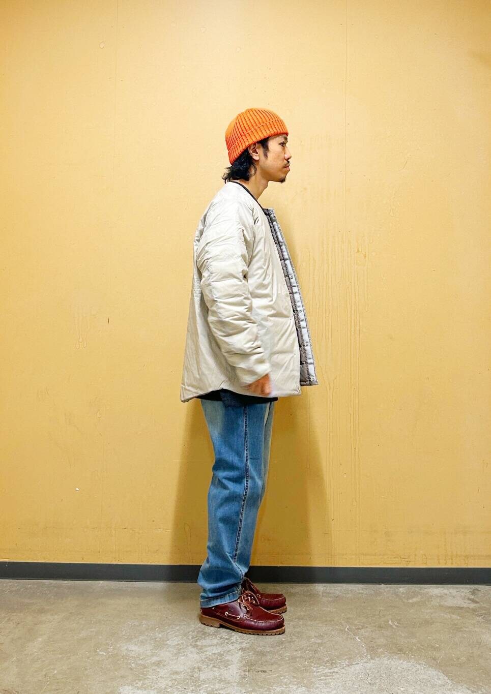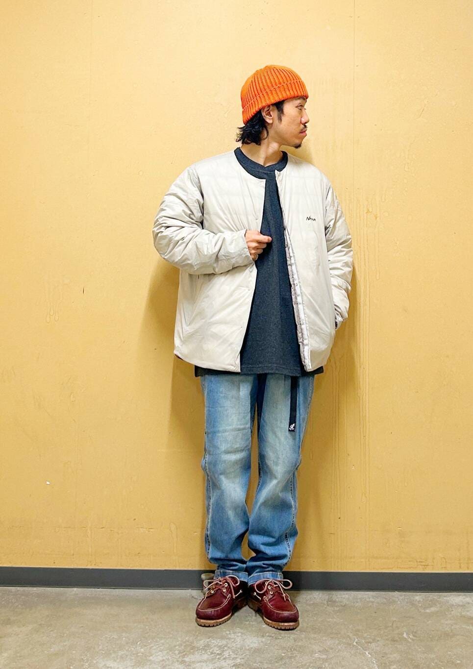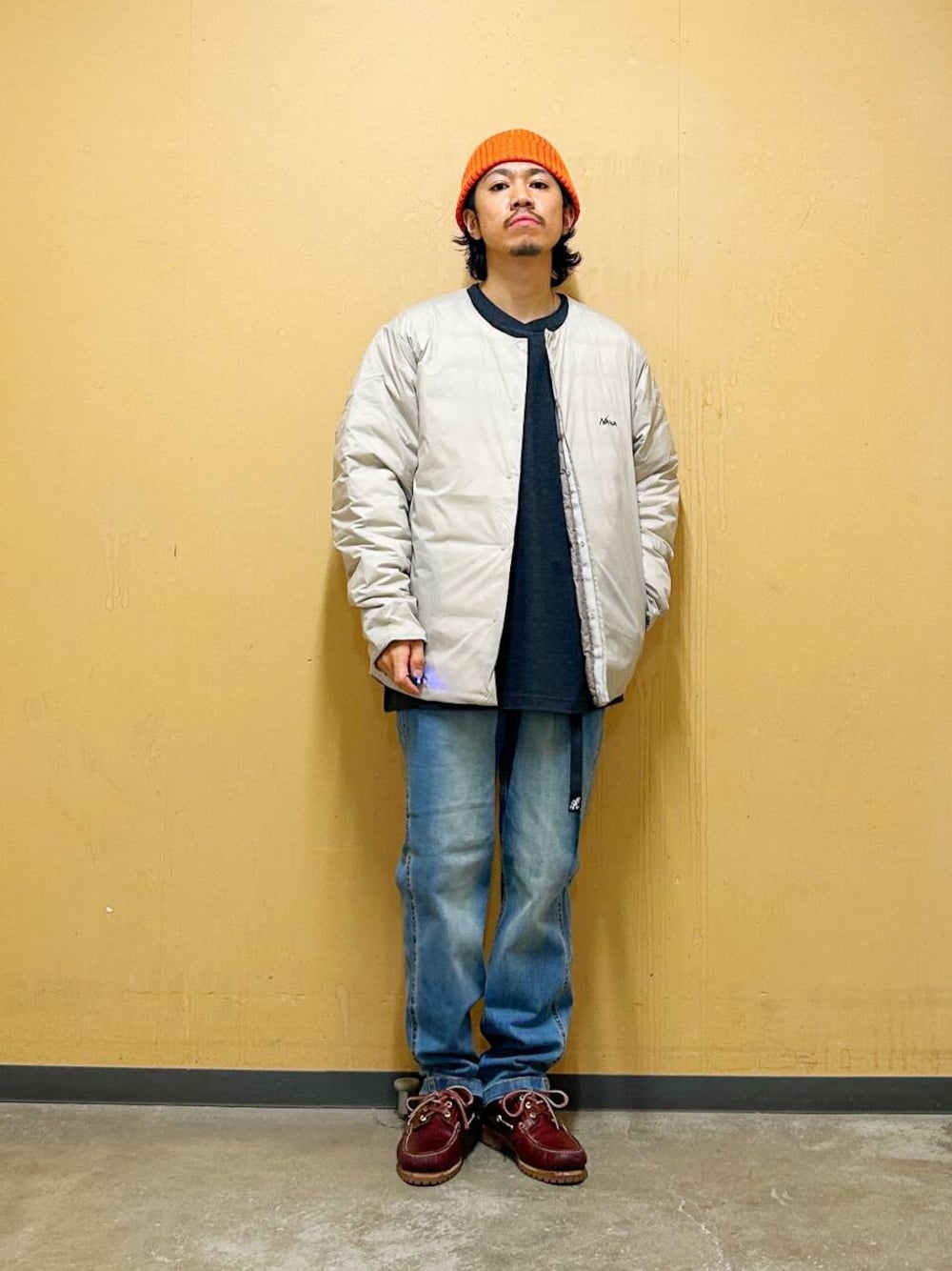 今回はnangaインナーダウンとグラミチ別注デニムパンツを使用したコーディネート。