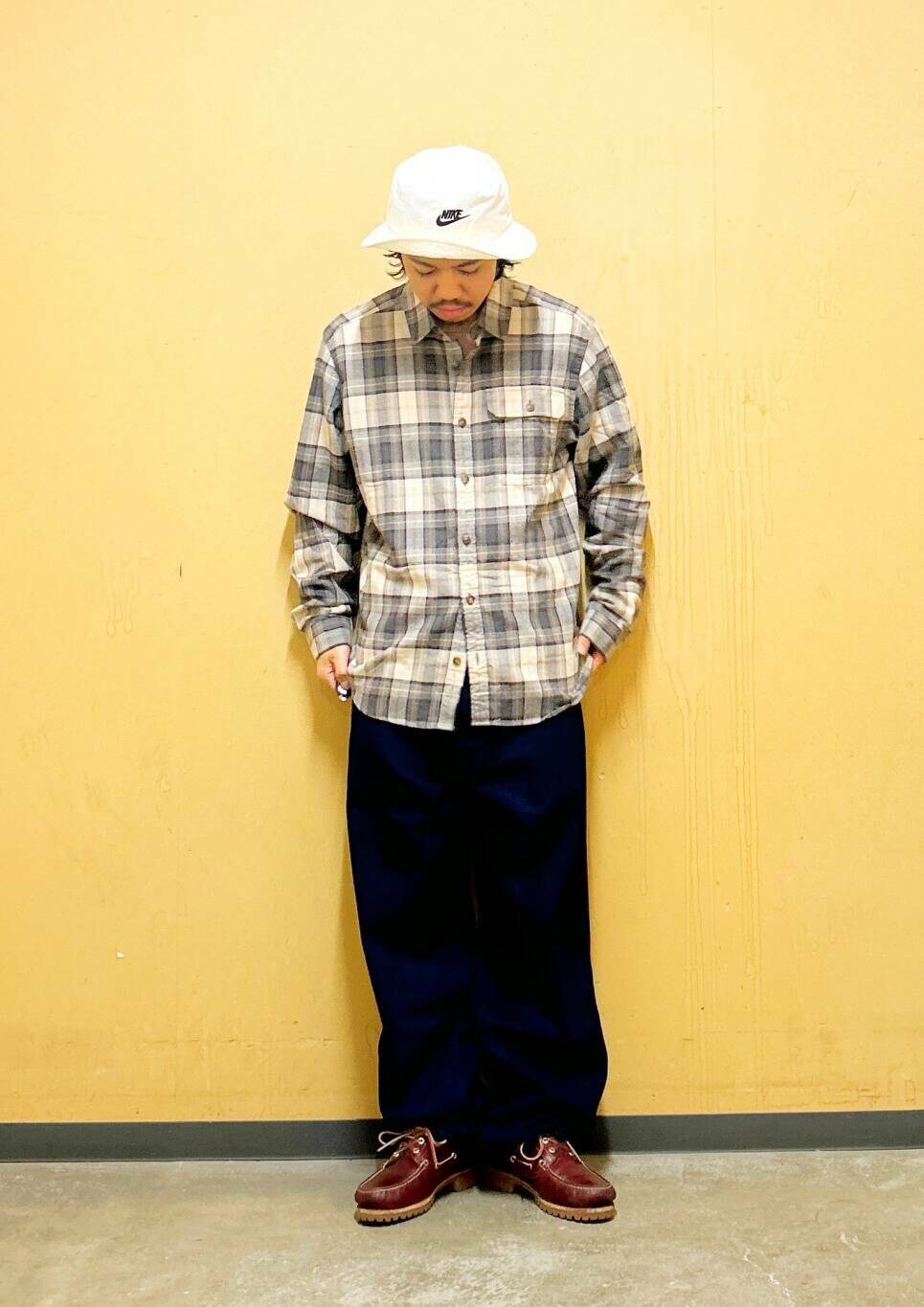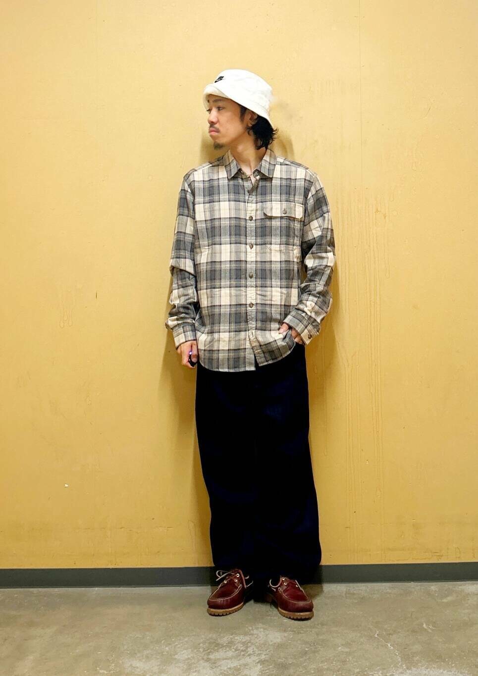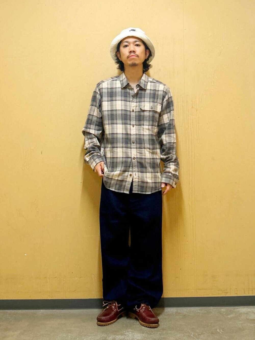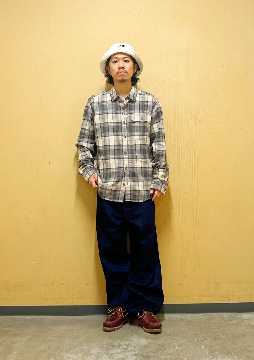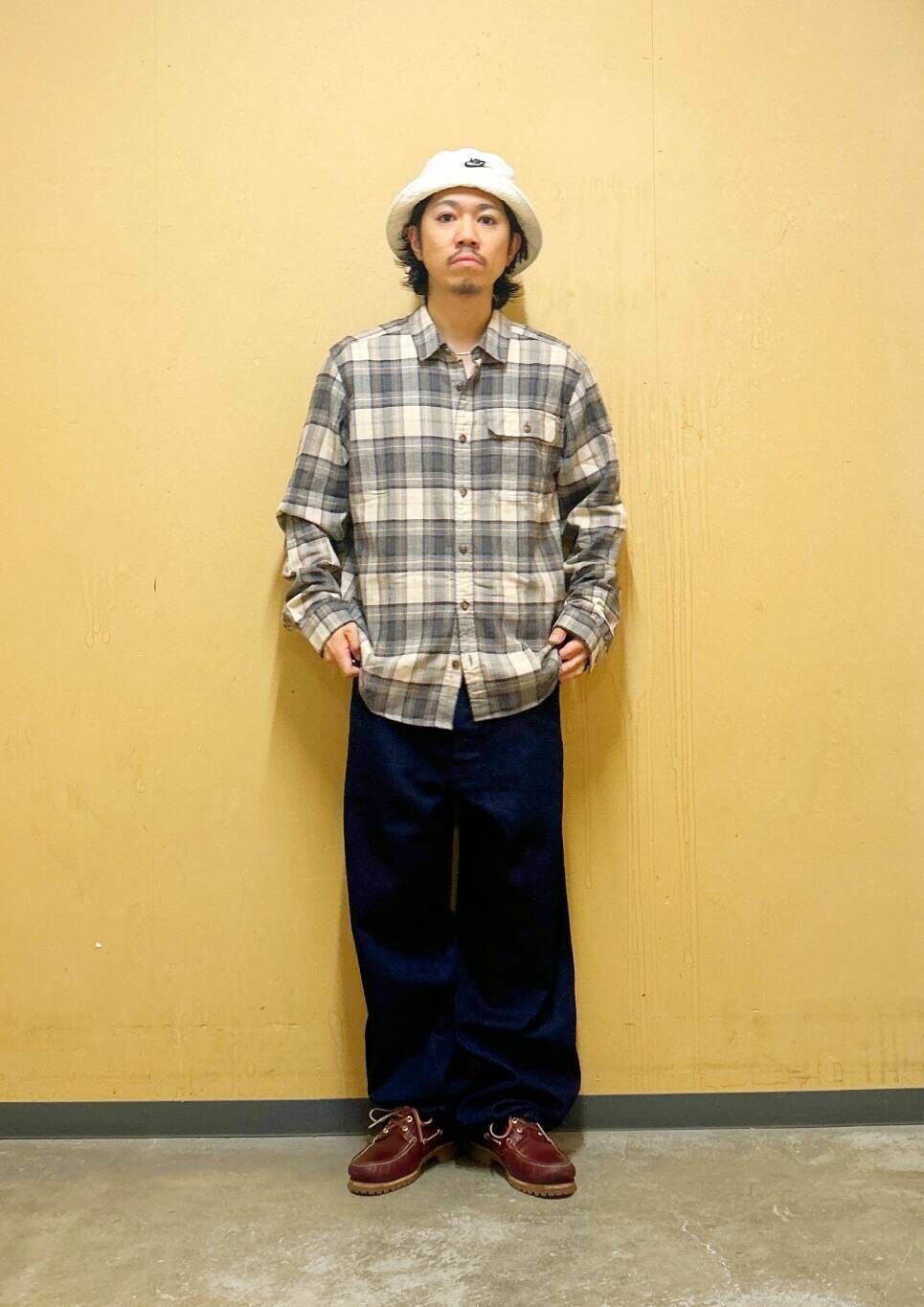 今回はPatagoniaチェックシャツとデニムパンツを使用したコーディネート。