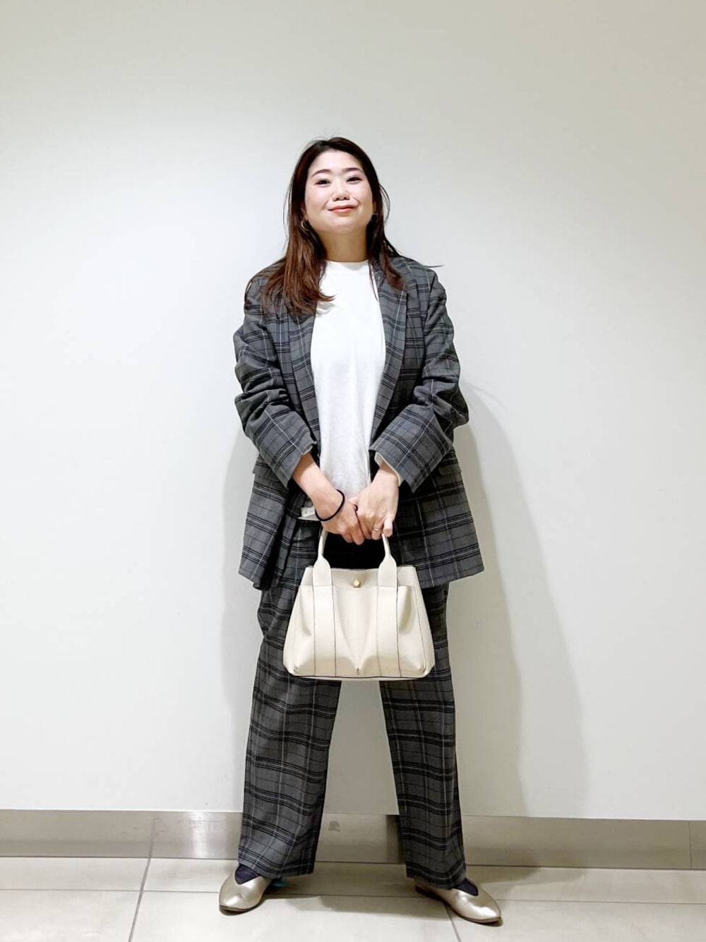 オーバーシルエットのセットアップは、インナーに厚みのあるトップスを着てもおすすめです!