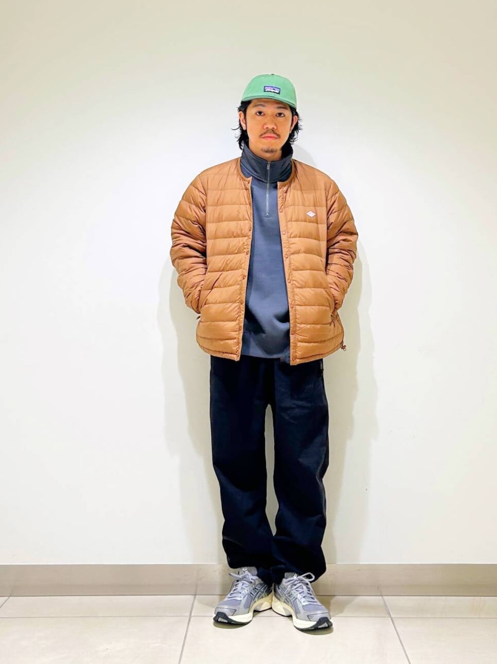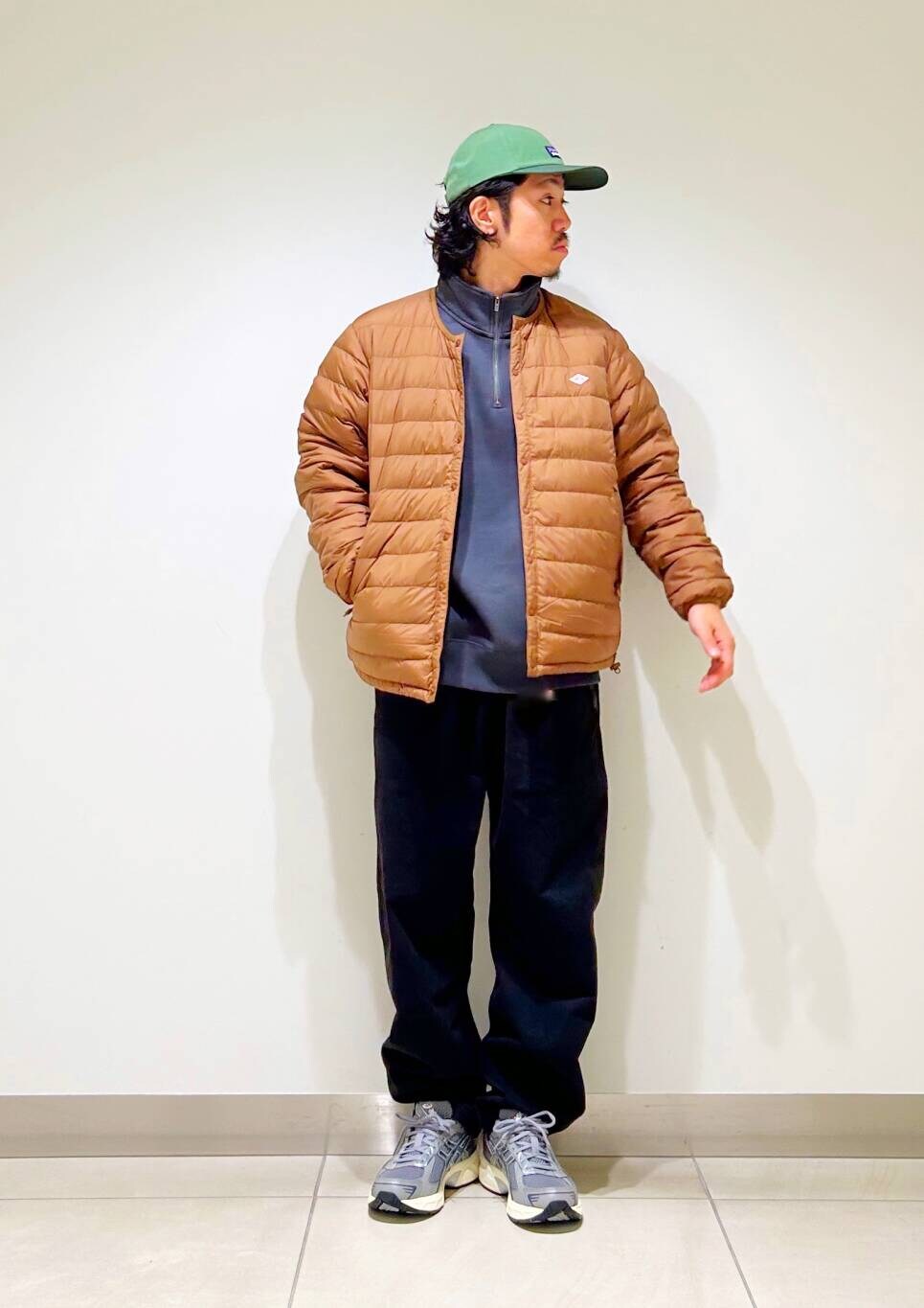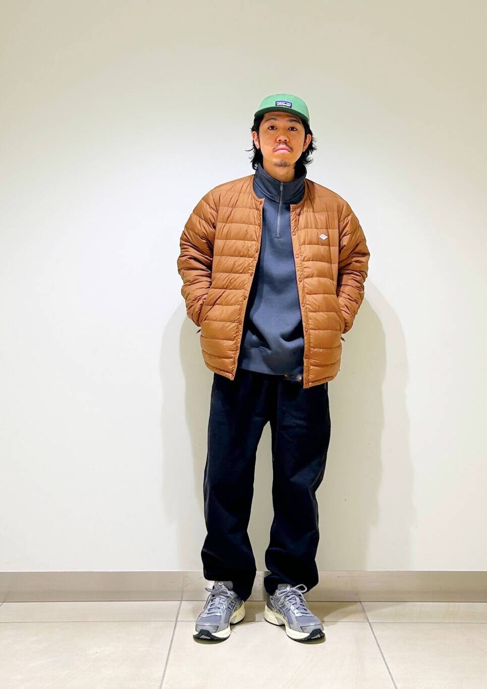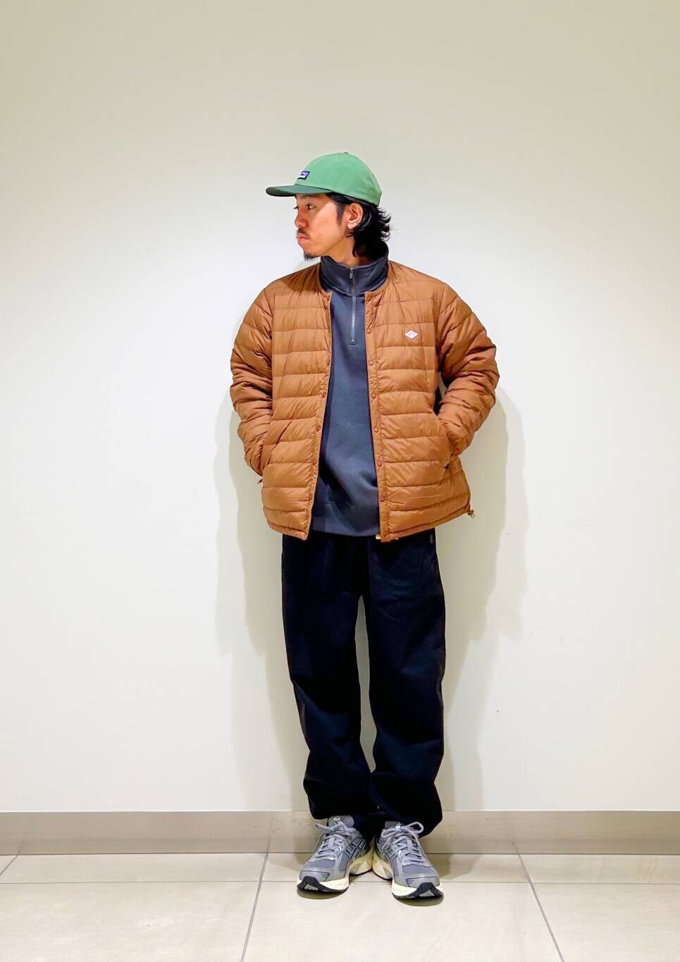 今回はDANTON INNER DOWN CREWNECK JACKETとグラミチ別注トラウザーを使用したコーディネート。 ・高密度のナイロンタフタを使用したダウンジャケット