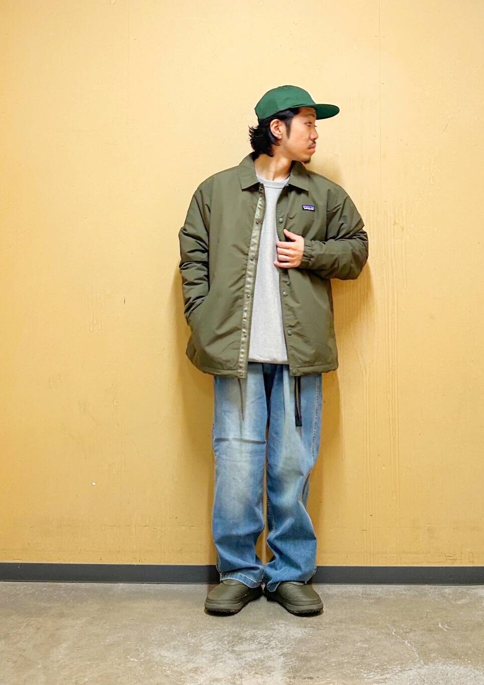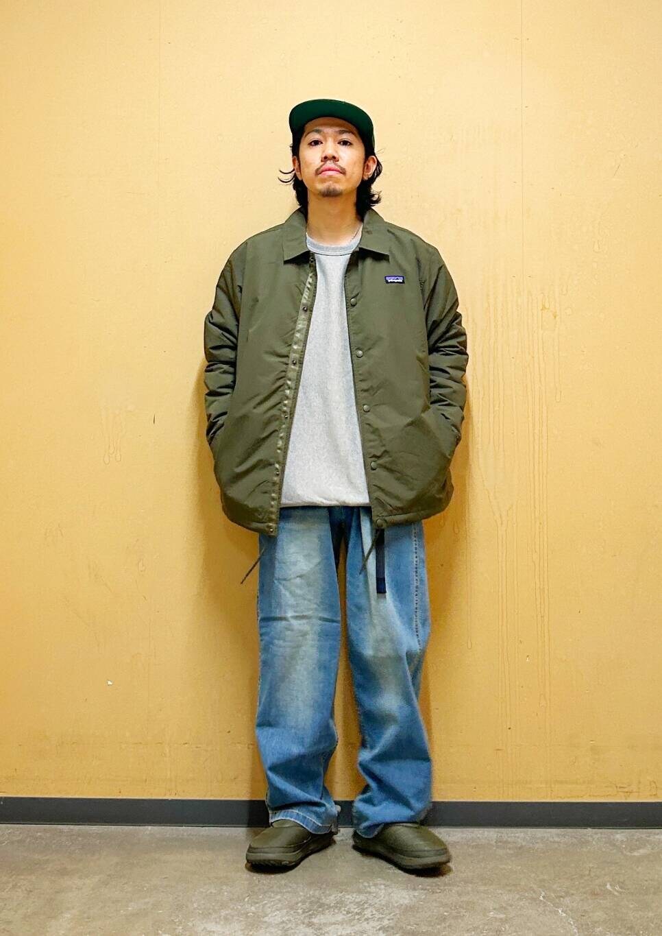 今回はpatagonia LinedIsthmusCoachesJacketとグラミチ別注デニムパンツを使用したコーディネート。
