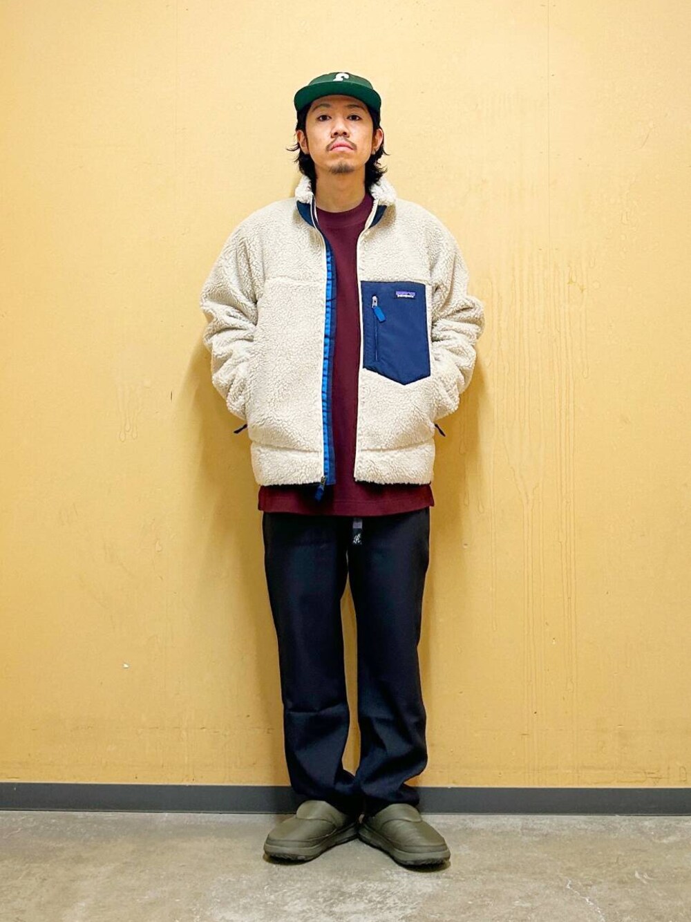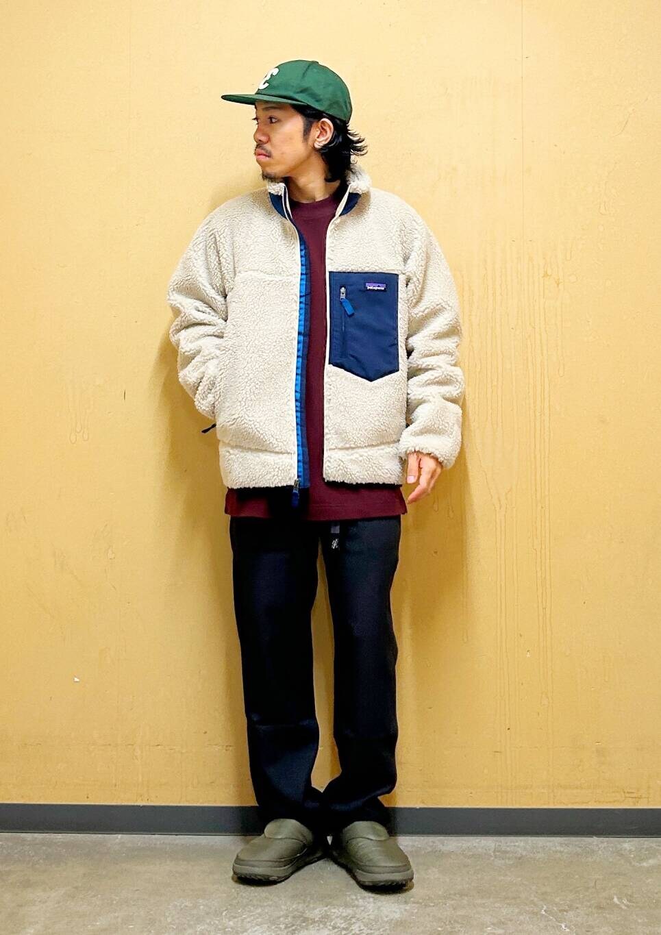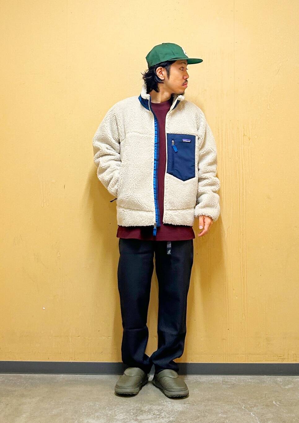 今回はpatagonia Ms Classic Retro-X JACKETとグラミチ別注ウールライクパンツを使用したコーディネート。