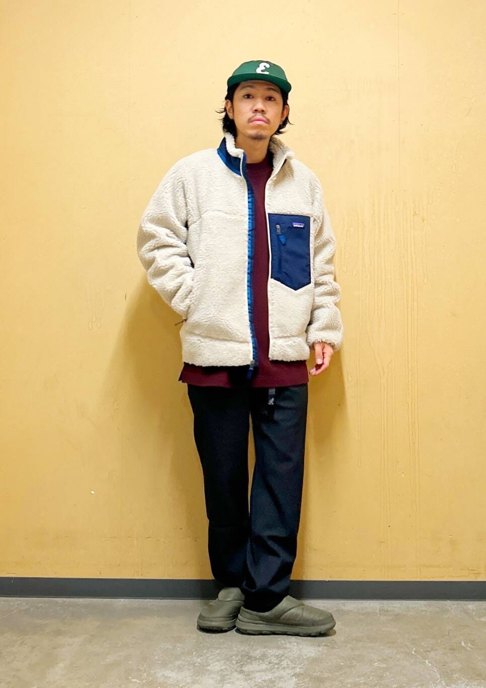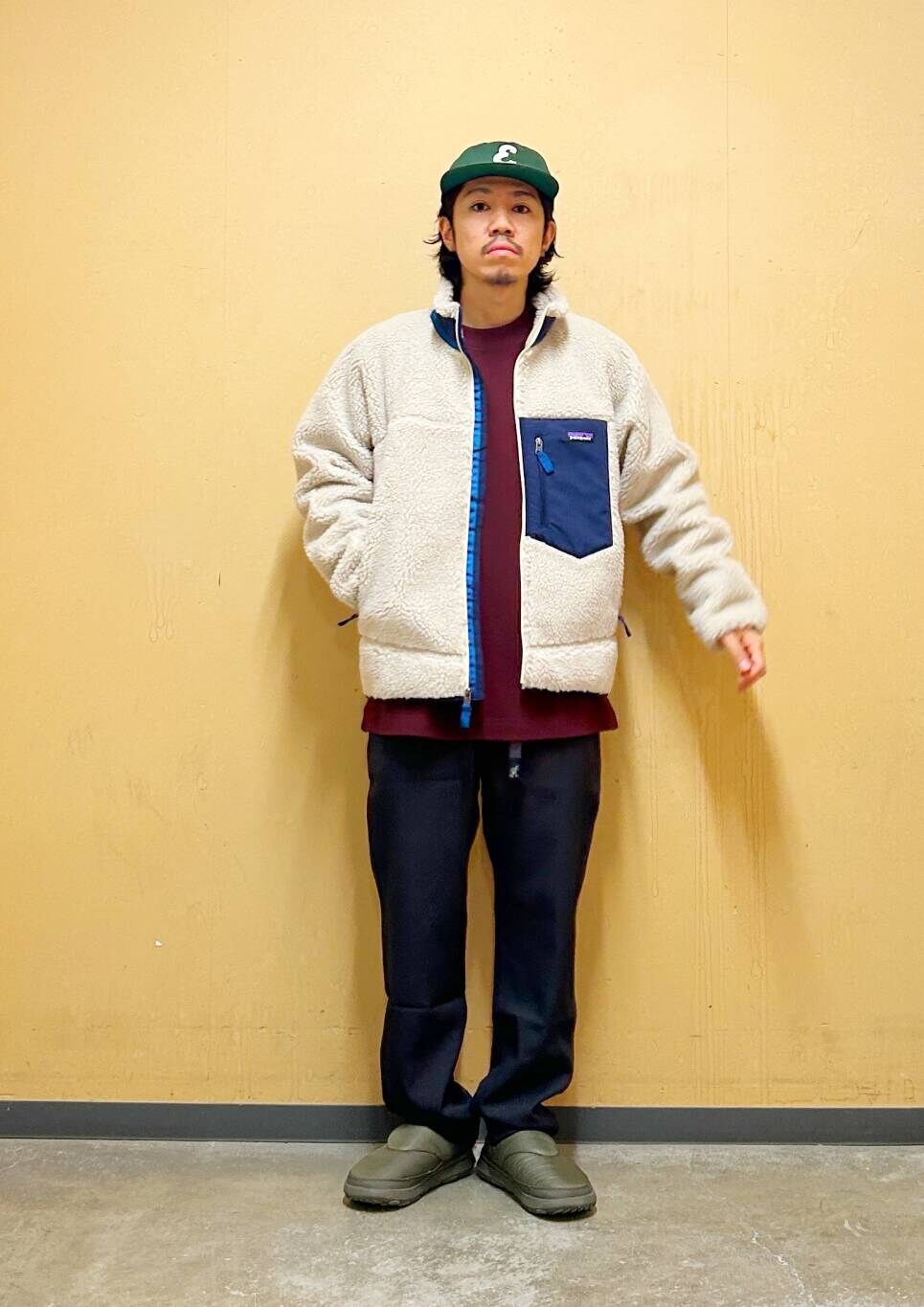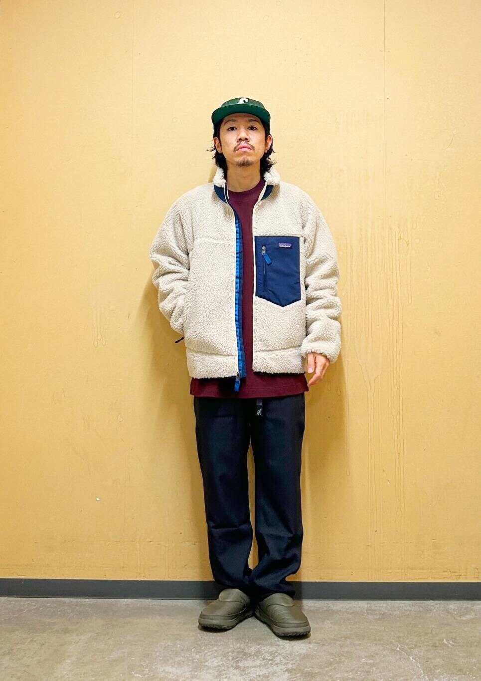 今回はpatagonia Ms Classic Retro-X JACKETとグラミチ別注ウールライクパンツを使用したコーディネート。