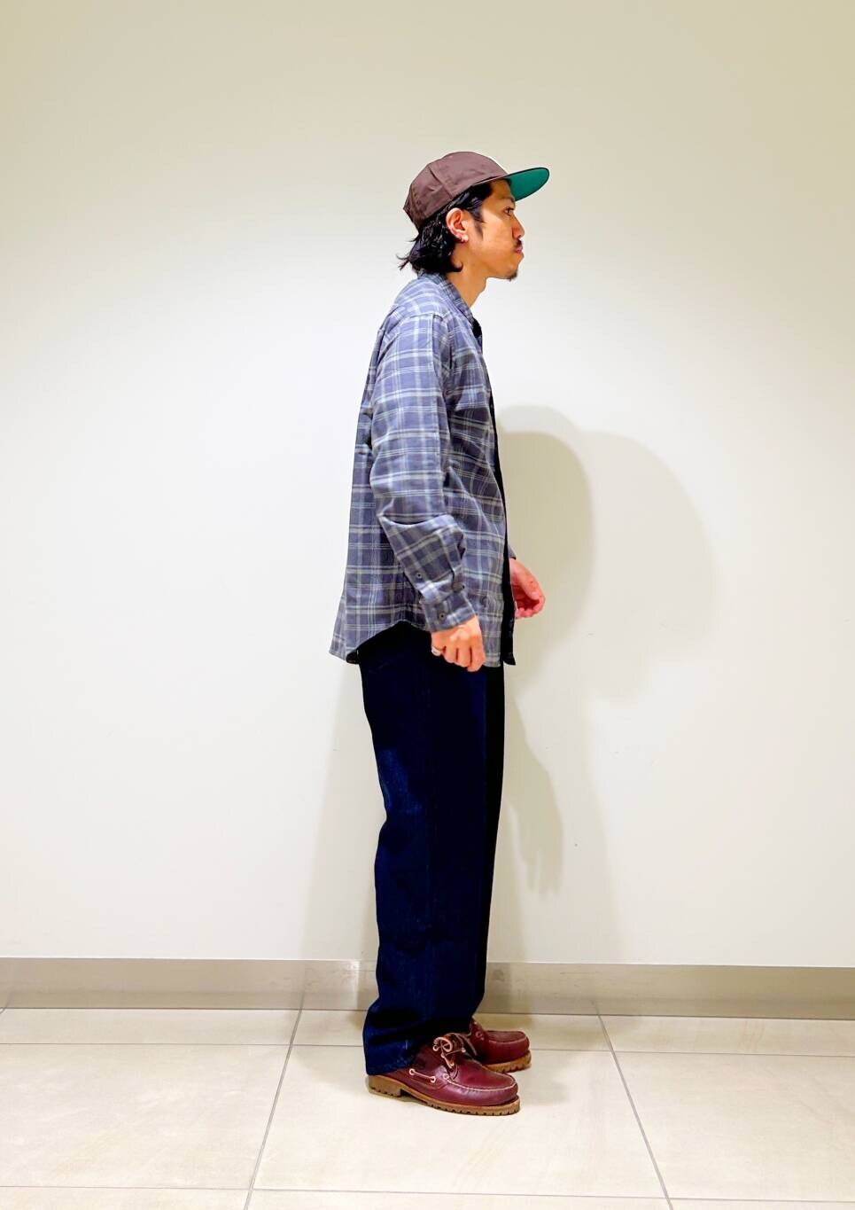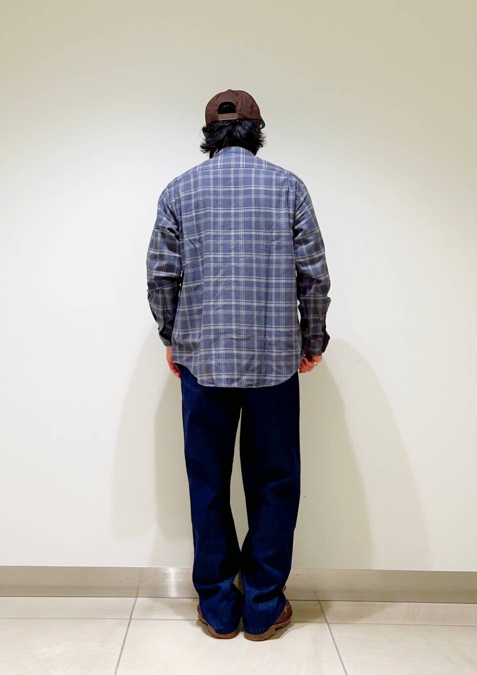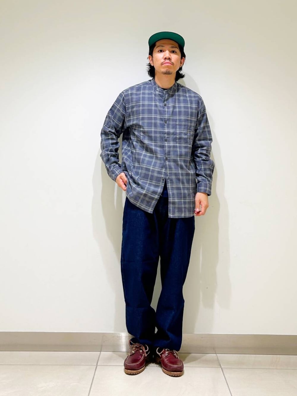 今回はビエラバンドカラーシャツとデニムパンツを使用したコーディネート。