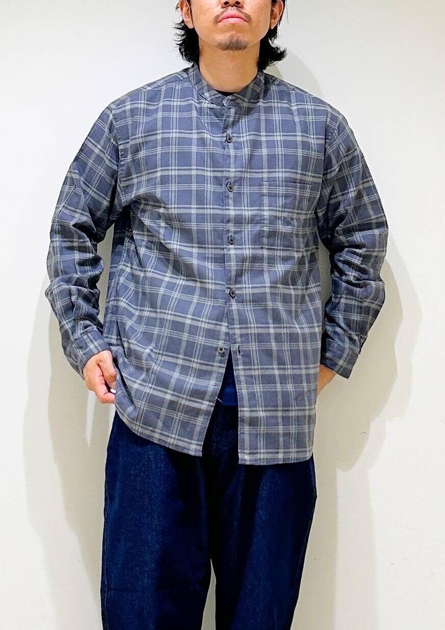 ふんわりとした柔らかな生地のバンドカラーシャツ