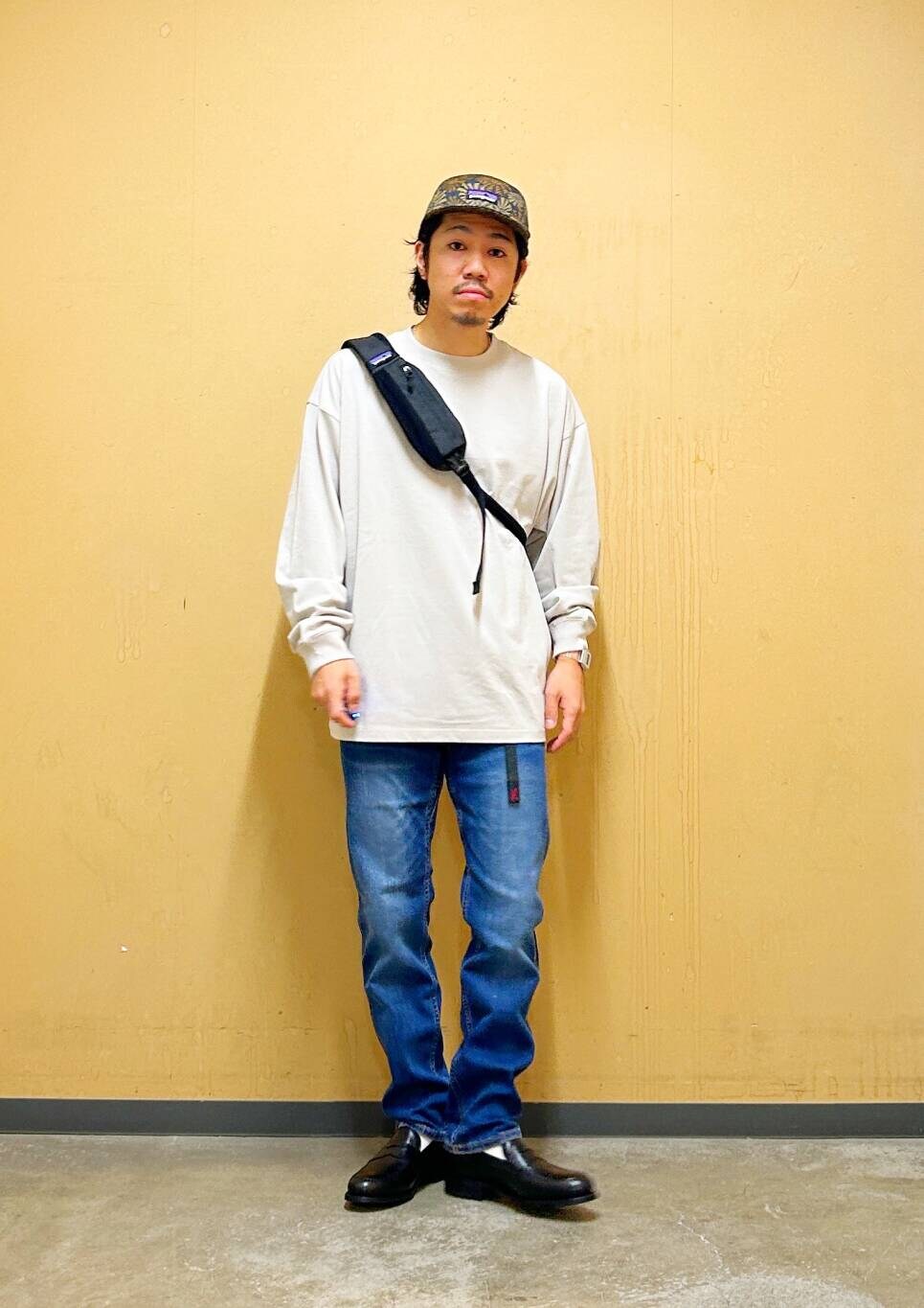 今回はFORK&SPOON ハイツイストジャージープルオーバーとグラミチ別注デニムパンツを使用したコーディネート。 シンプルながら一枚でも主役の役目を果たしてくれるロンTを今の時期から着やすい柔らかなタッチで仕上げました。