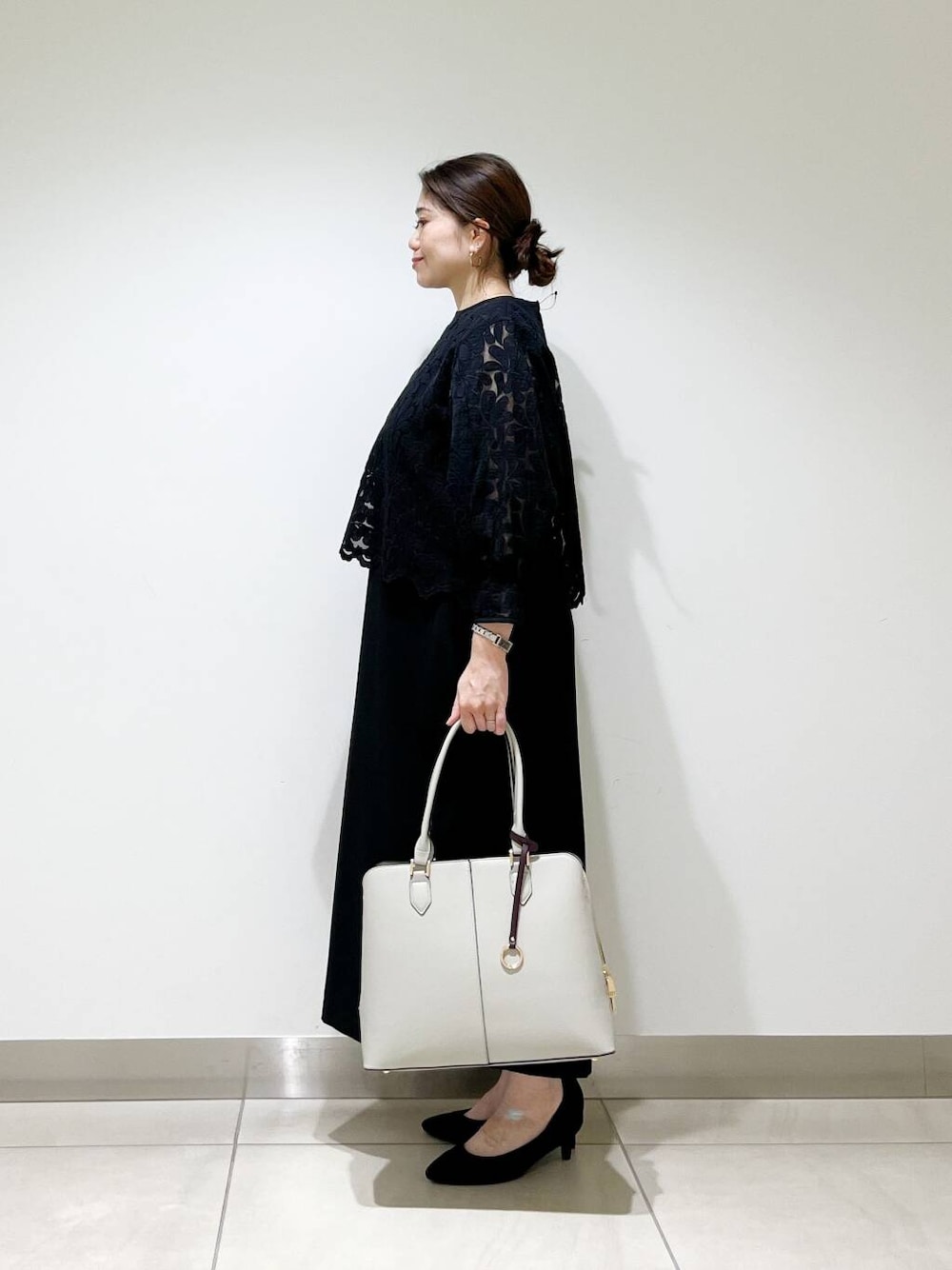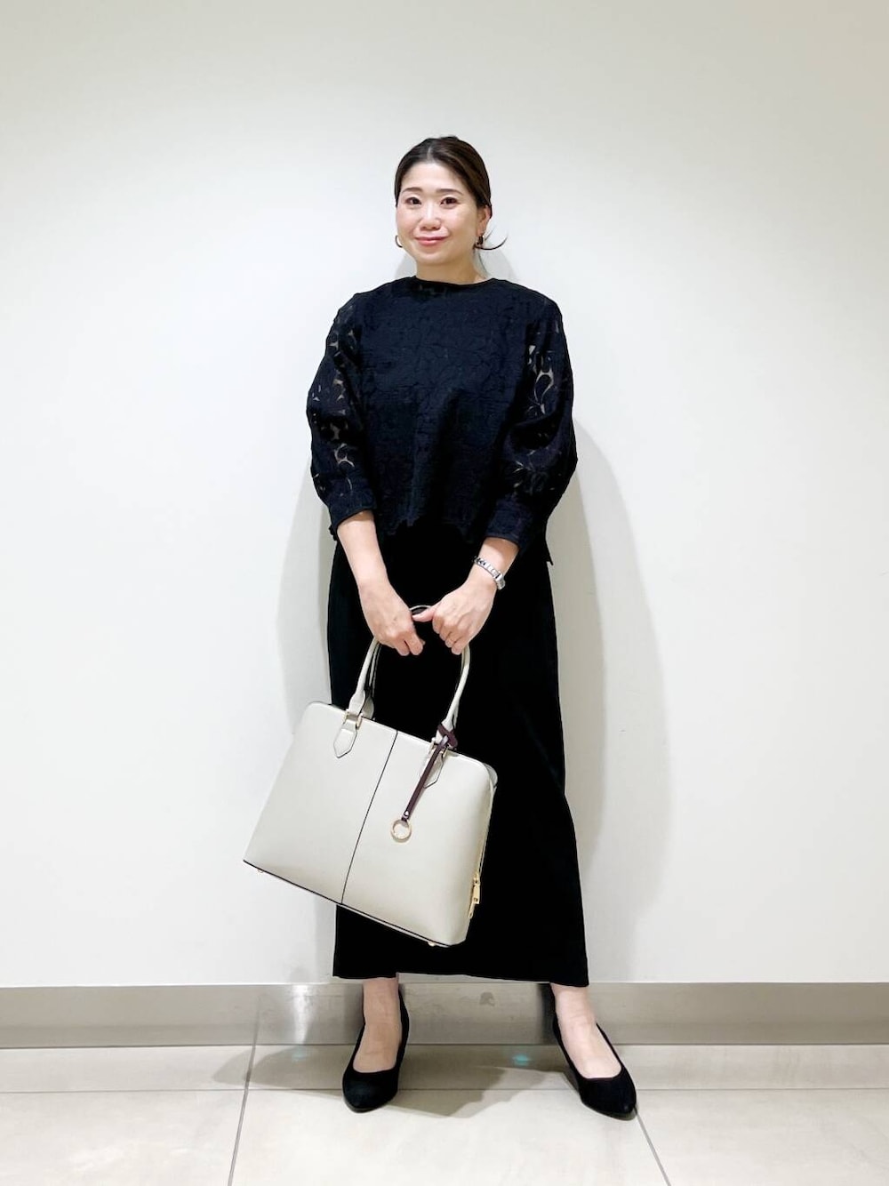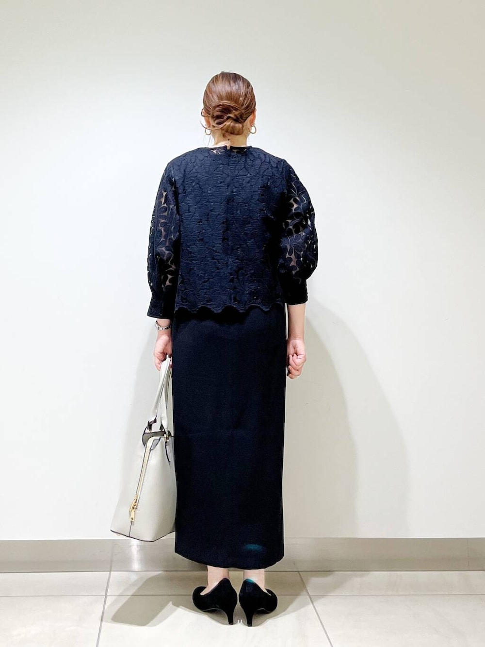 オールブラックですが、女性らしいレースのトップスなので重たくならず着れます☆