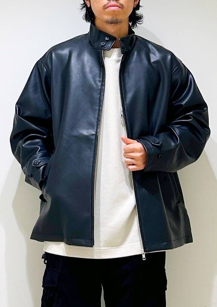 フェイクレザーを使用したトレンド感抜群のハリントンジャケットです。