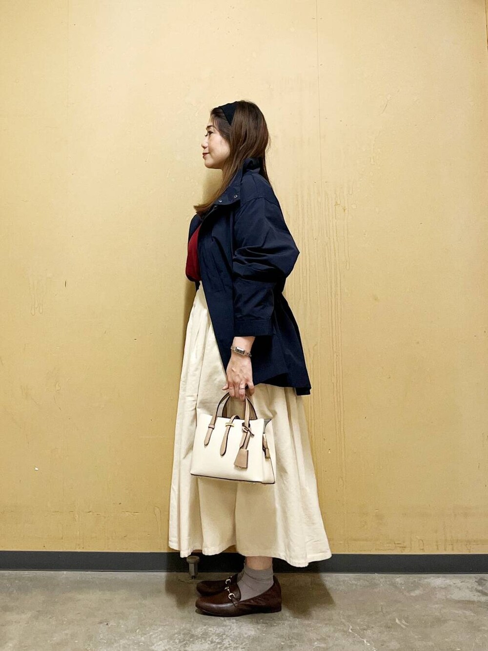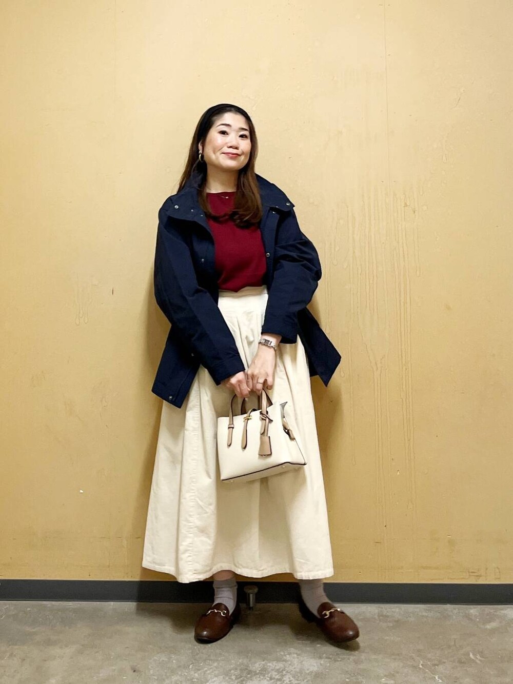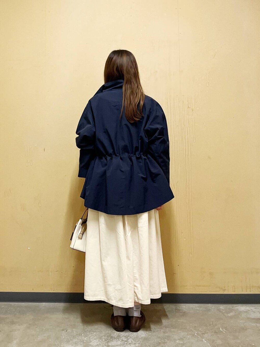 マウンテンジャケットはウエストで絞ることで女性らしい印象で着れます〜☆