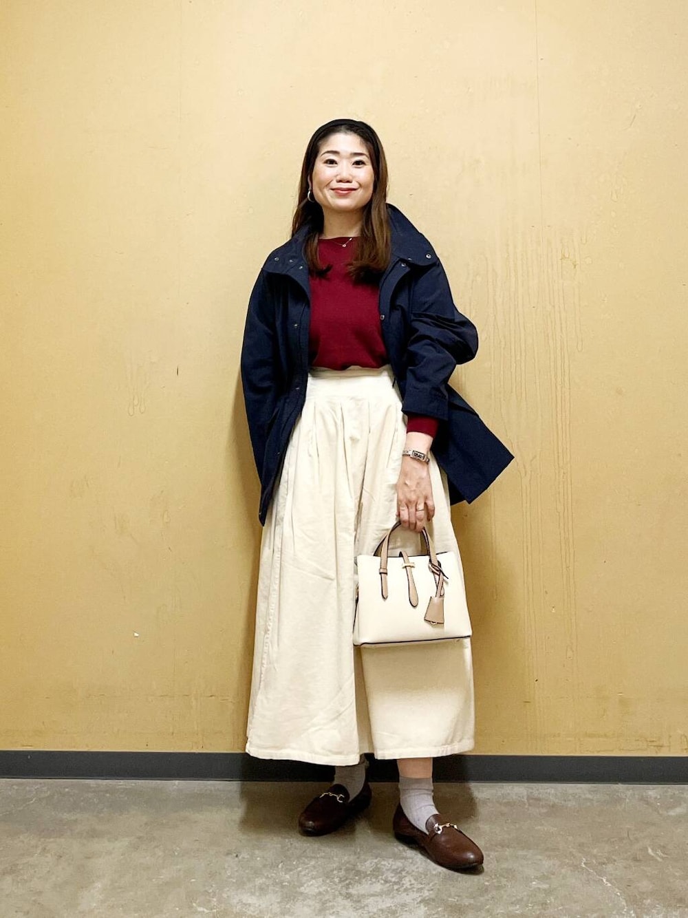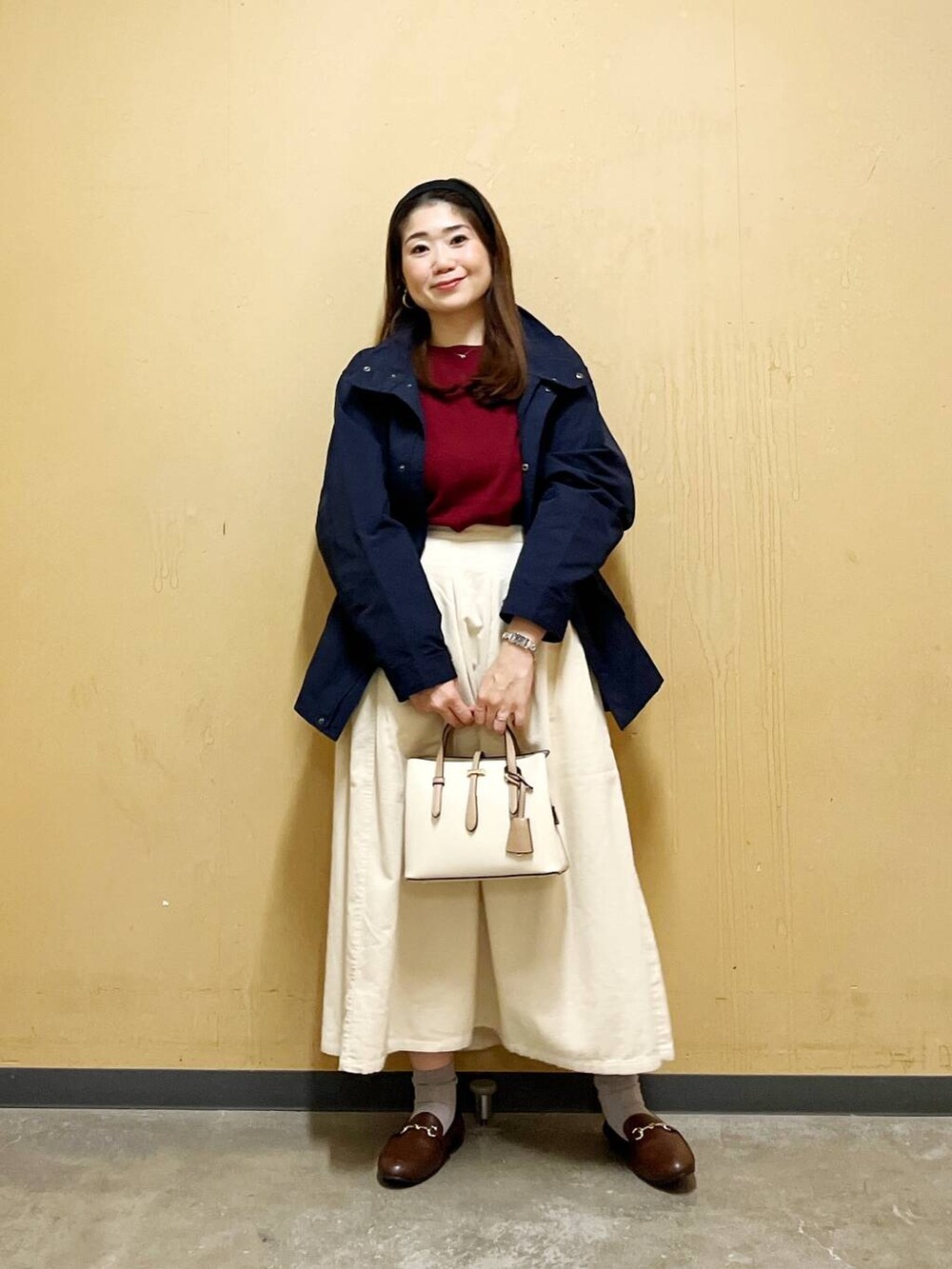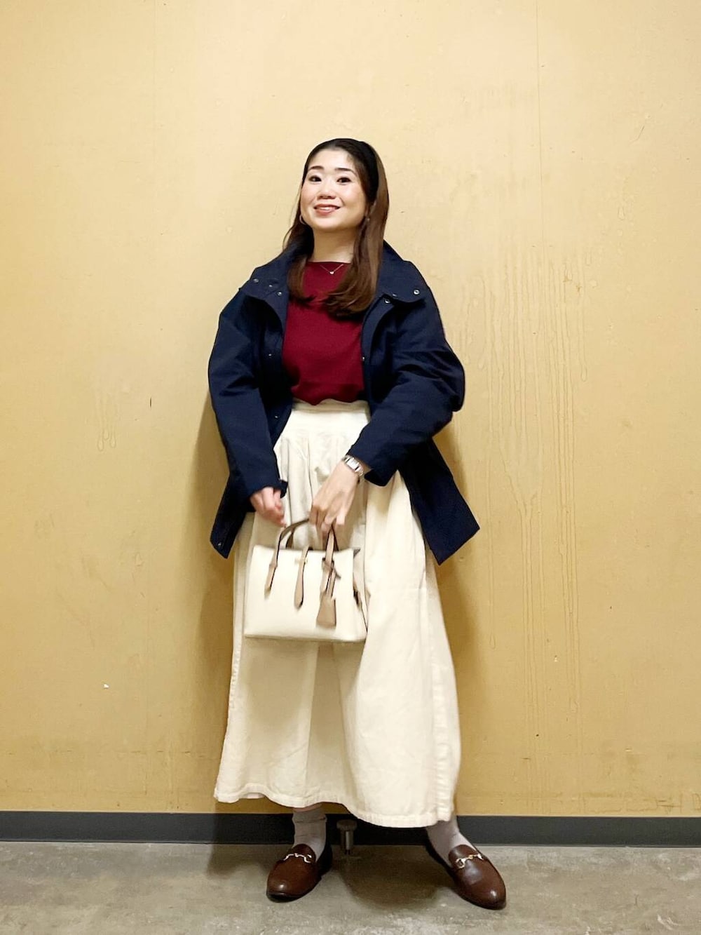 マウンテンジャケットはウエストで絞ることで女性らしい印象で着れます〜☆