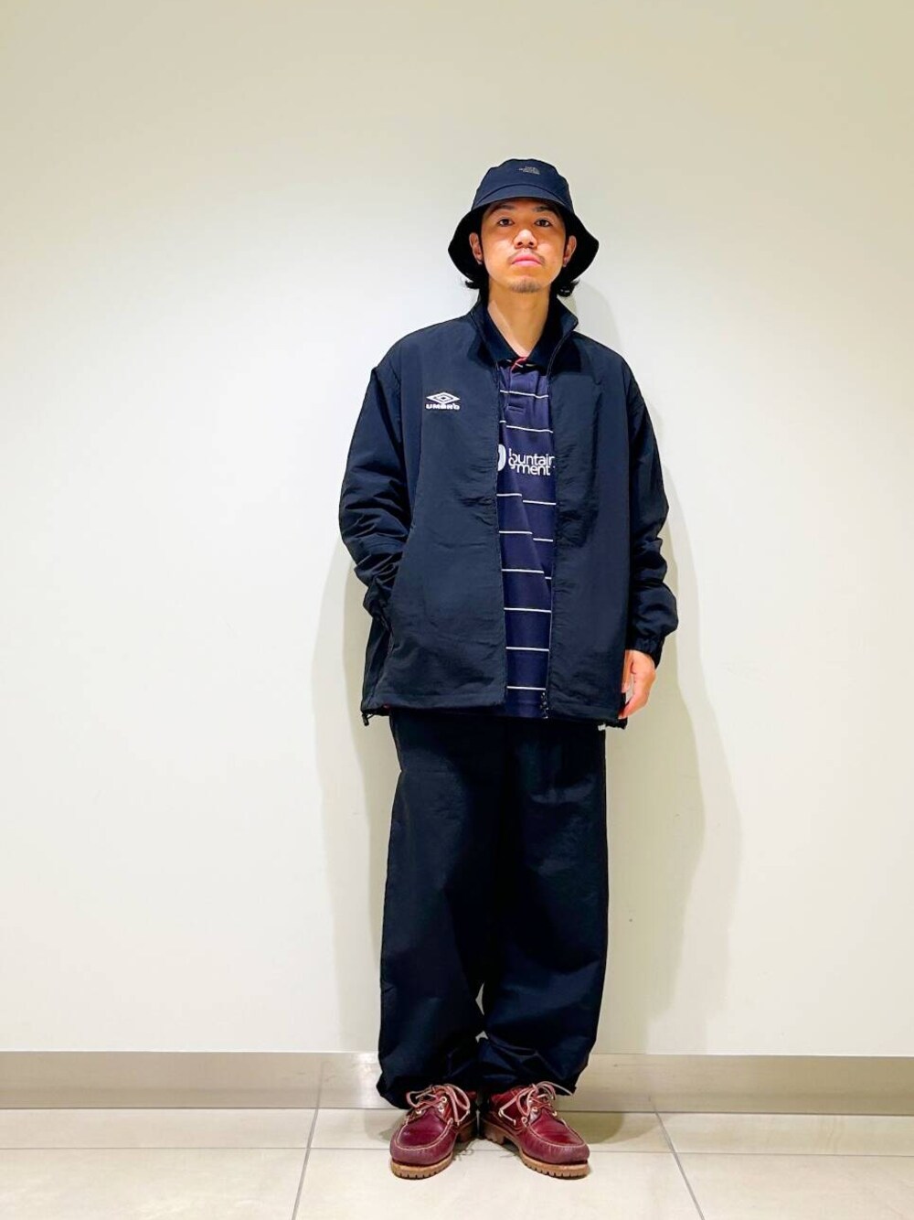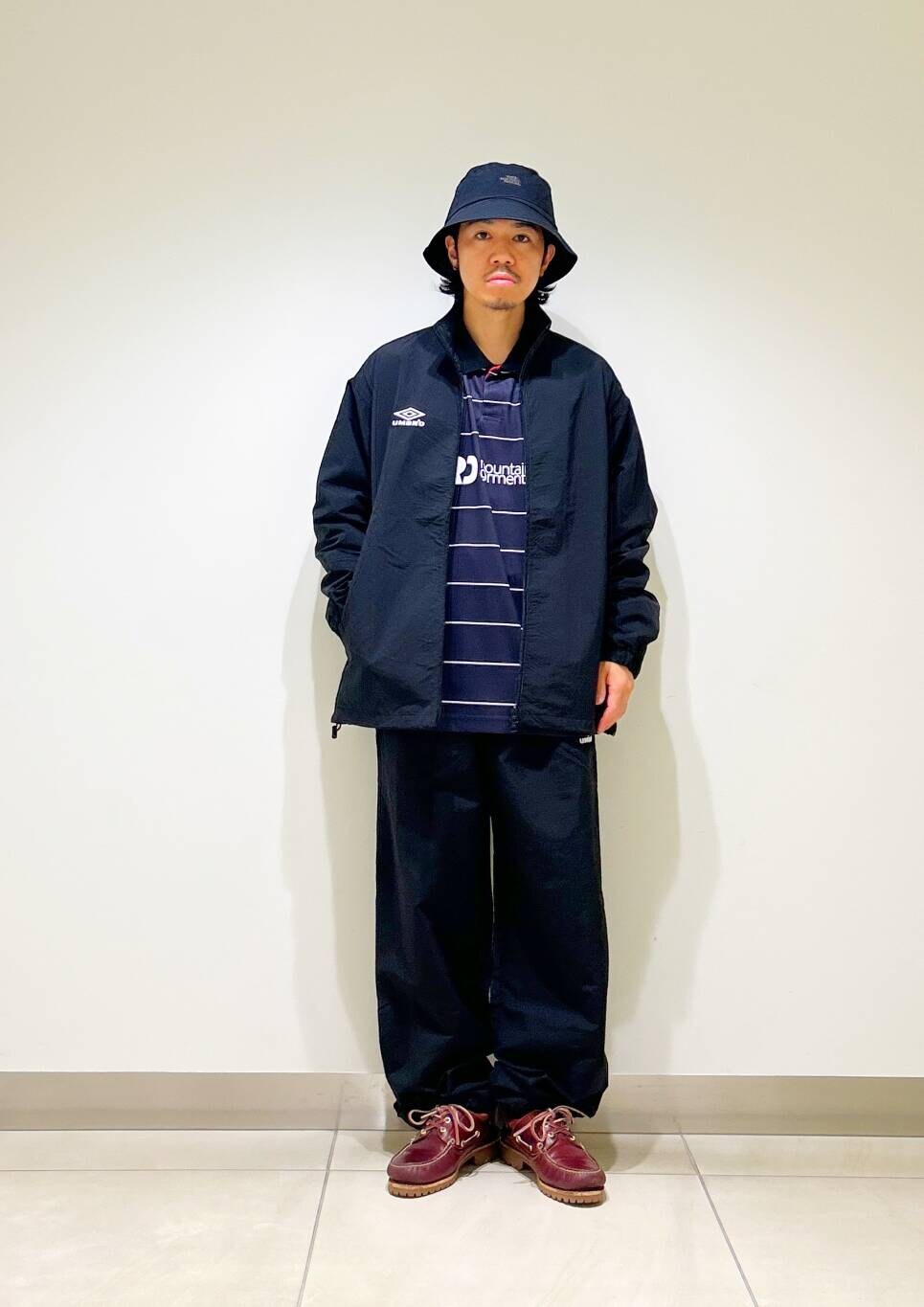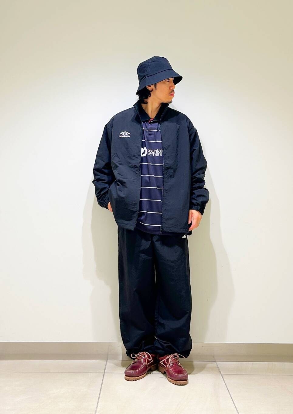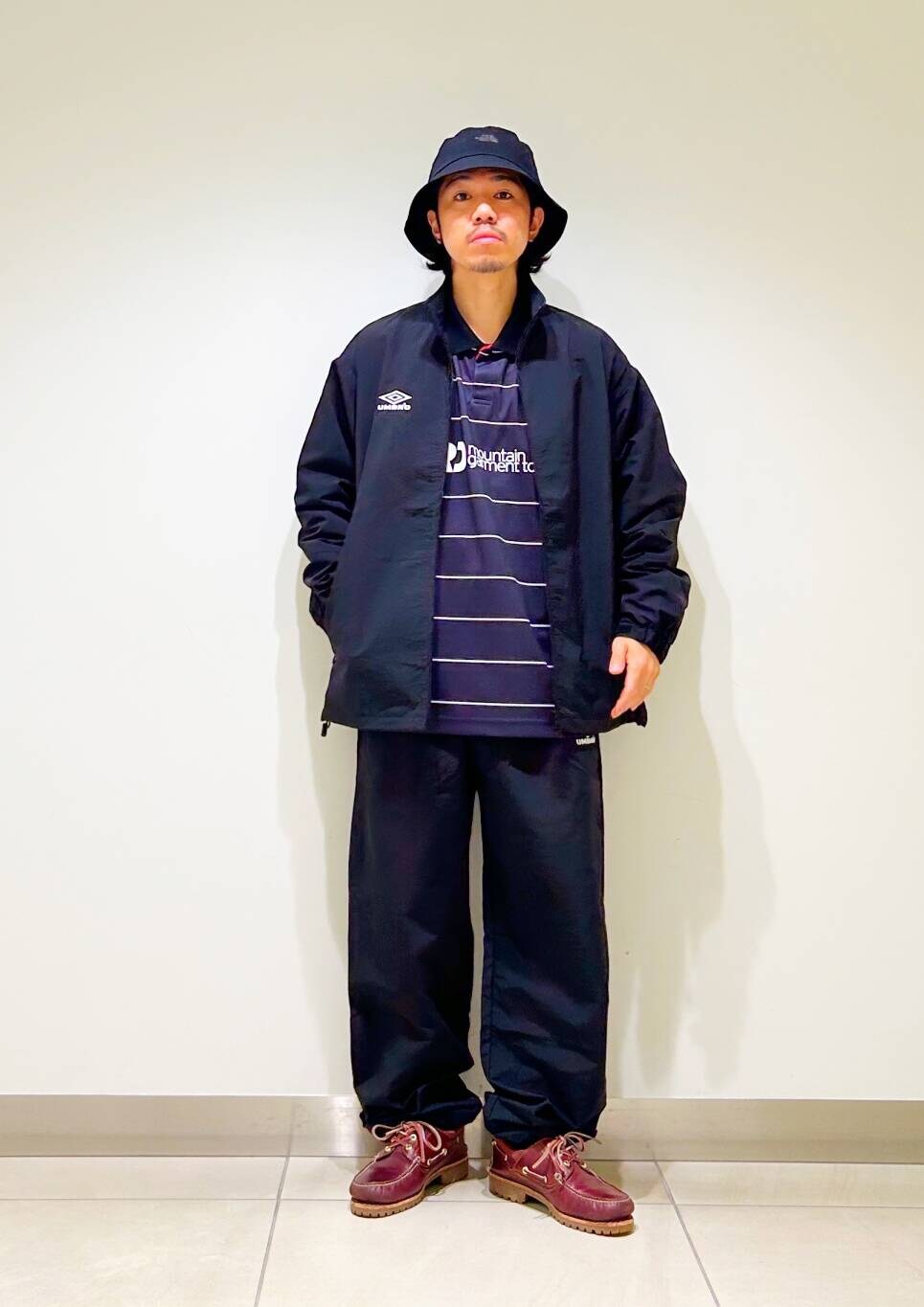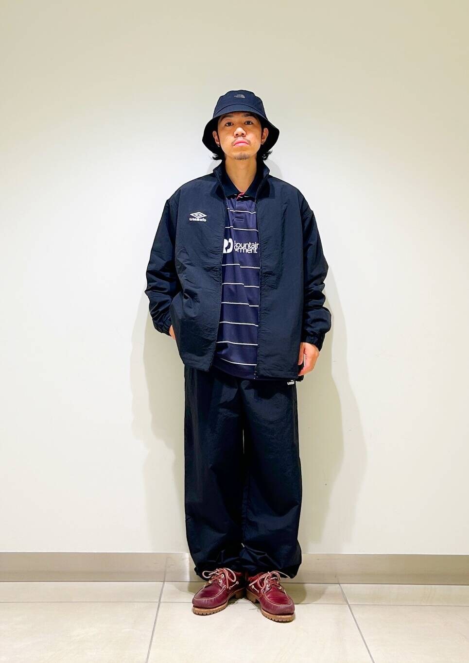 今回はumbroトラックジャケットとトラックパンツを使用したコーディネート。