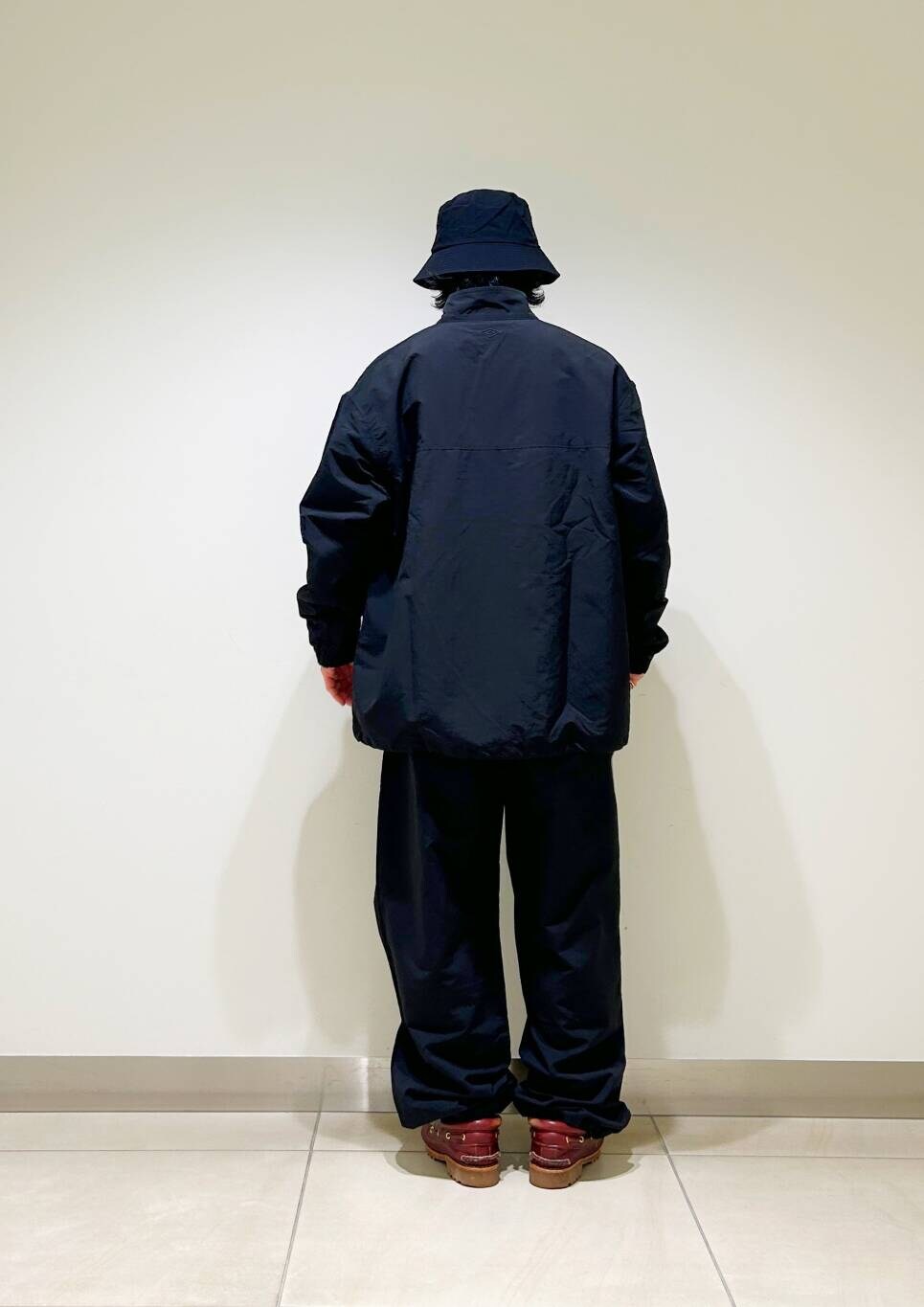 程よくハリのあるリップストップナイロンを使用し、裾のドローコードでシルエットを変化して着用していただけます。