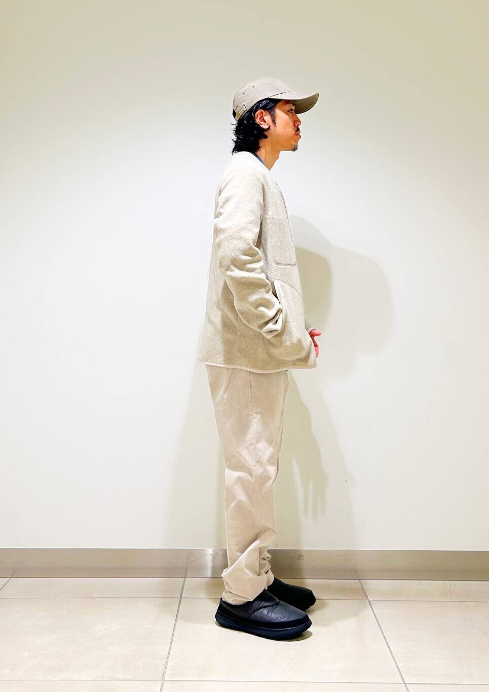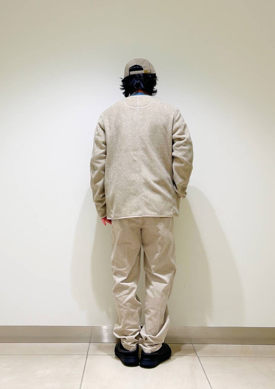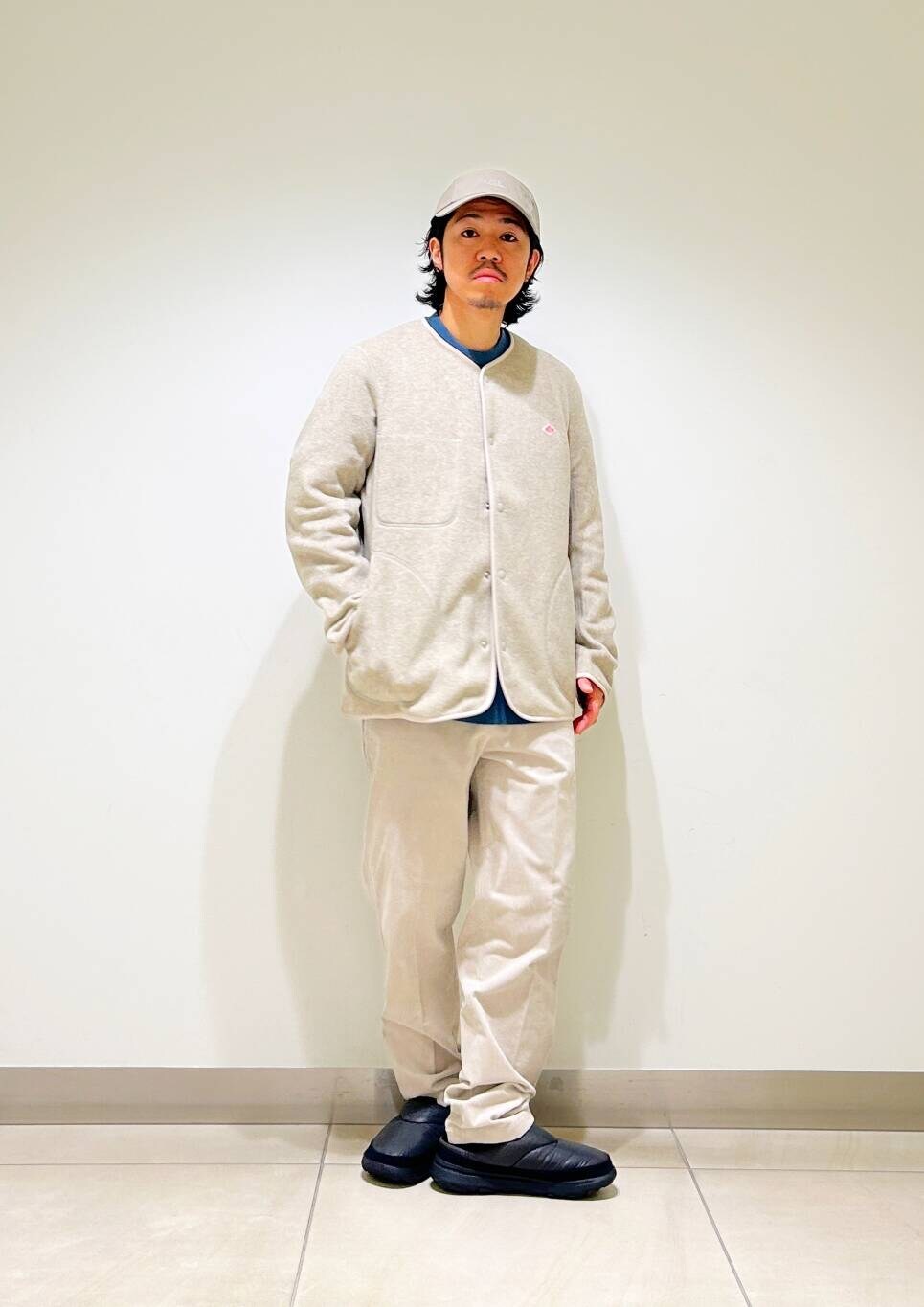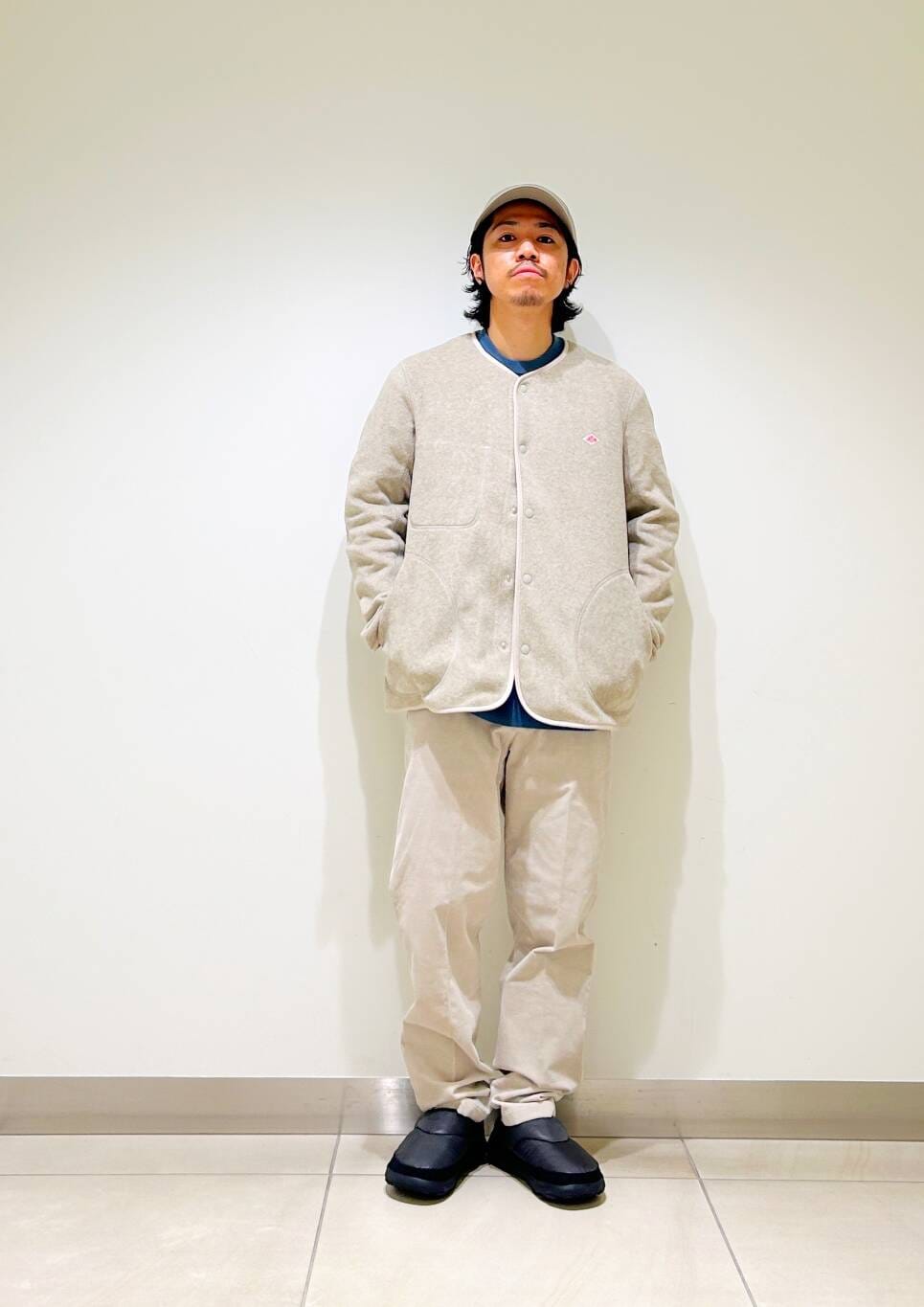 今回はDANTON FLEECE COLLARLESS JACKETとコーデュロイトラウザーを使用したコーディネート。