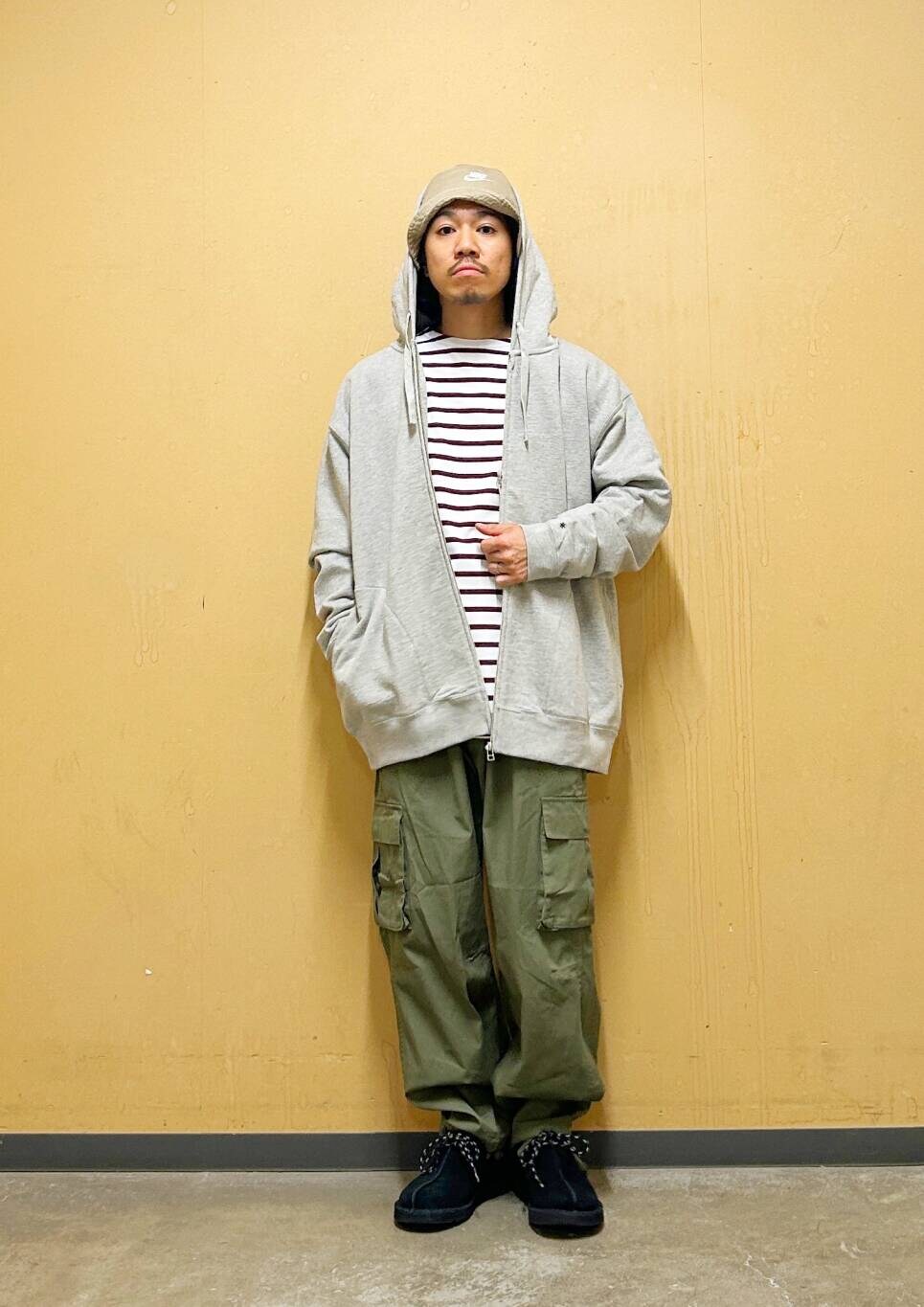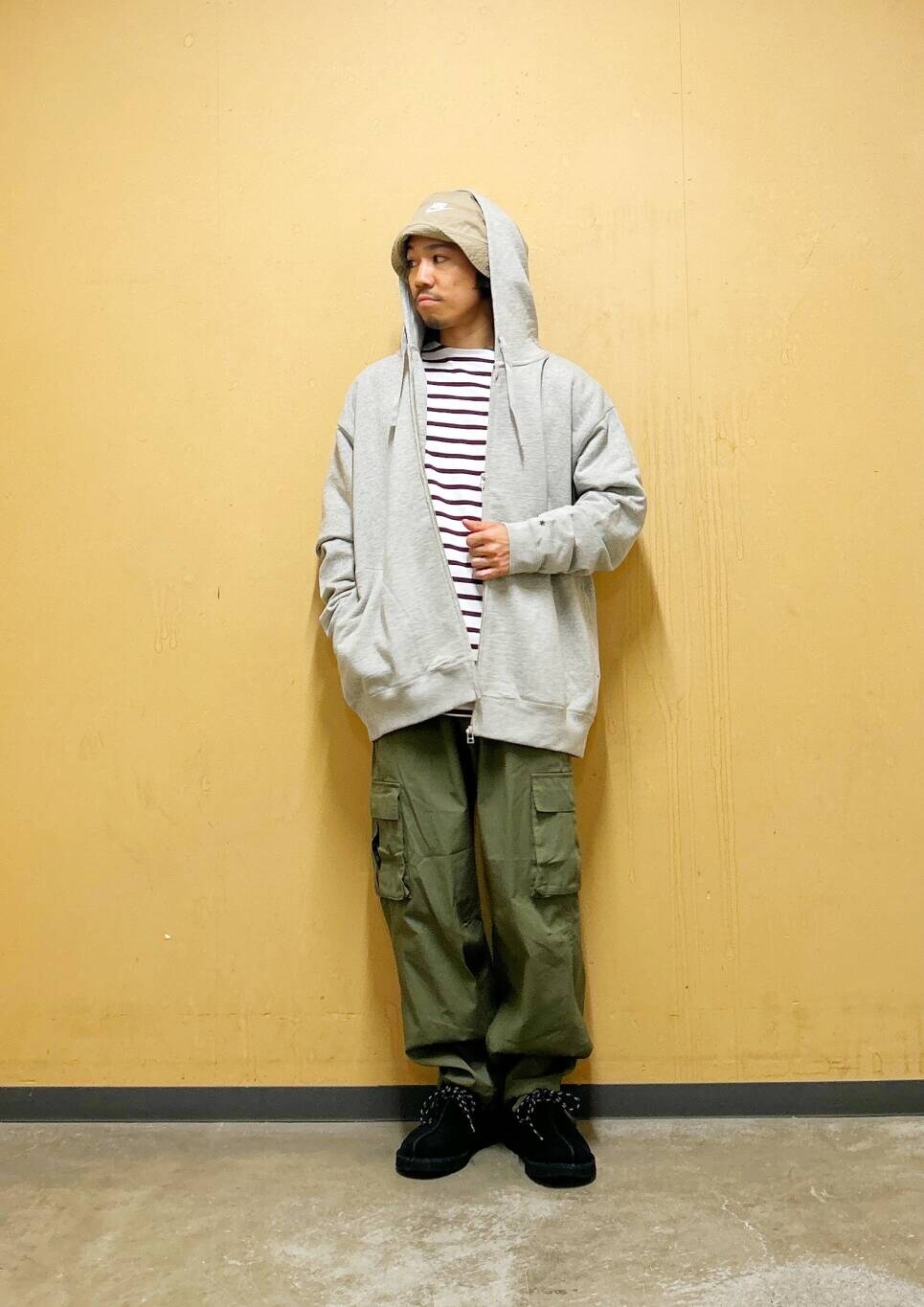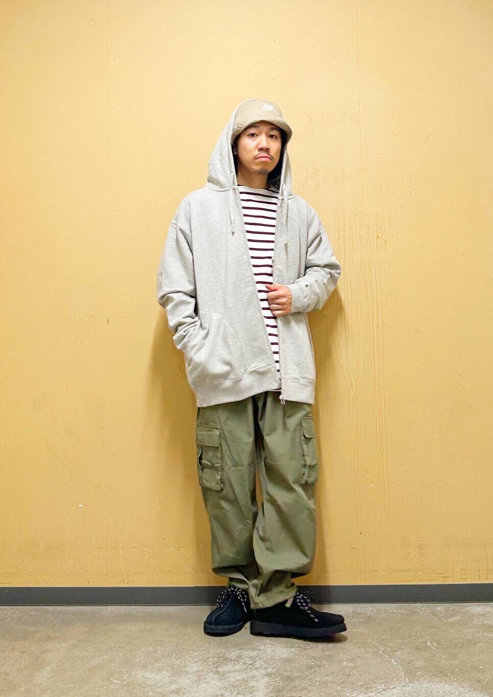 今回はスノーピーク ジップパーカーとカーゴパンツを使用したコーディネート。