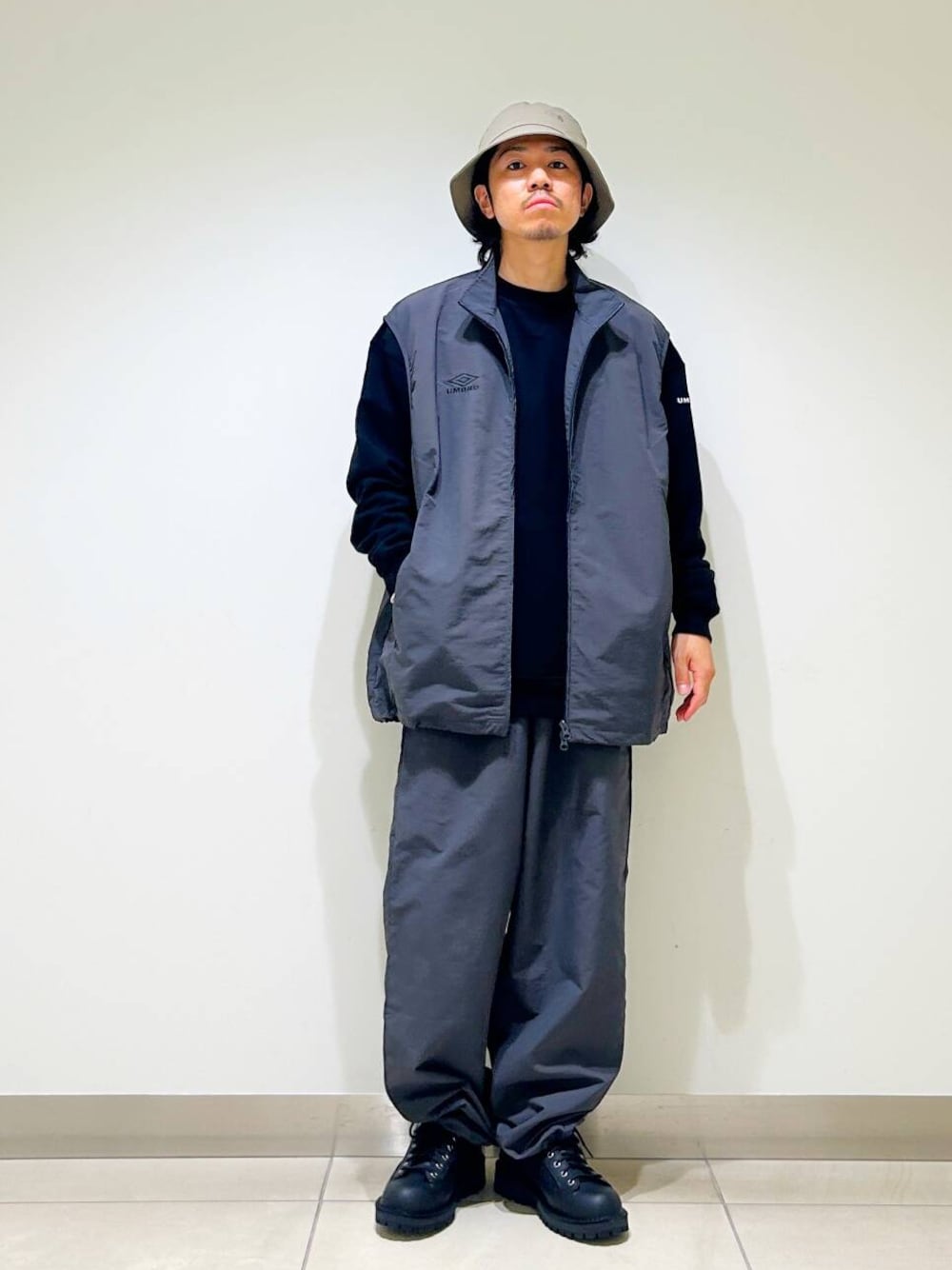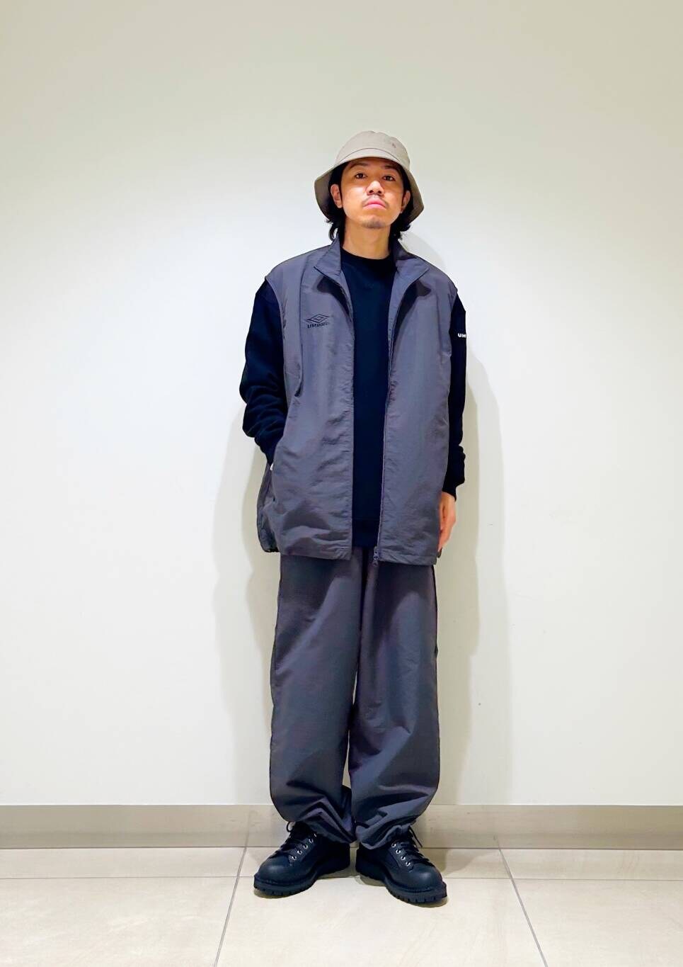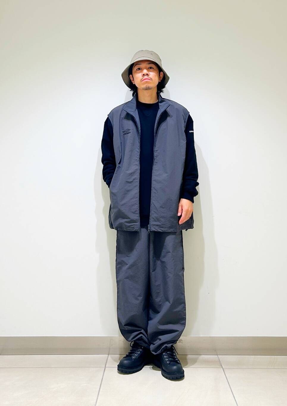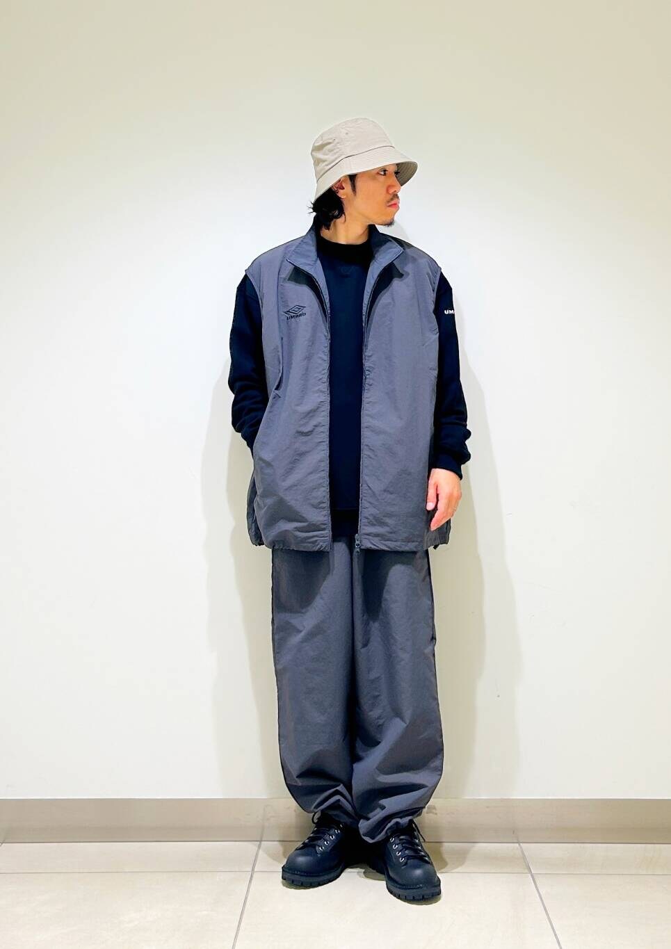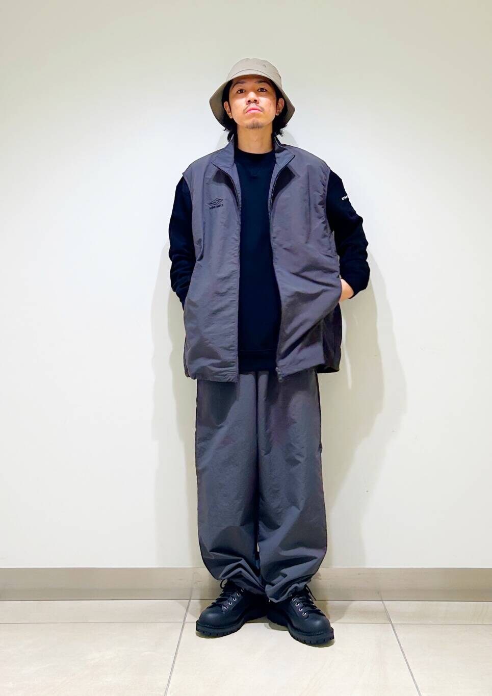 今回はumbro別注トラックジャケットとトラックをトラックパンツ使用したコーディネート。