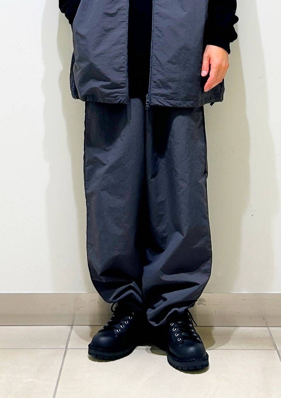 程よくハリのあるリップストップナイロンを使用し、裾のドローコードでシルエットを変化して着用していただけます。