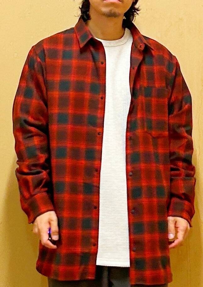 表に微起毛をかけたオリジナル柄のオンブレチェックシャツ。