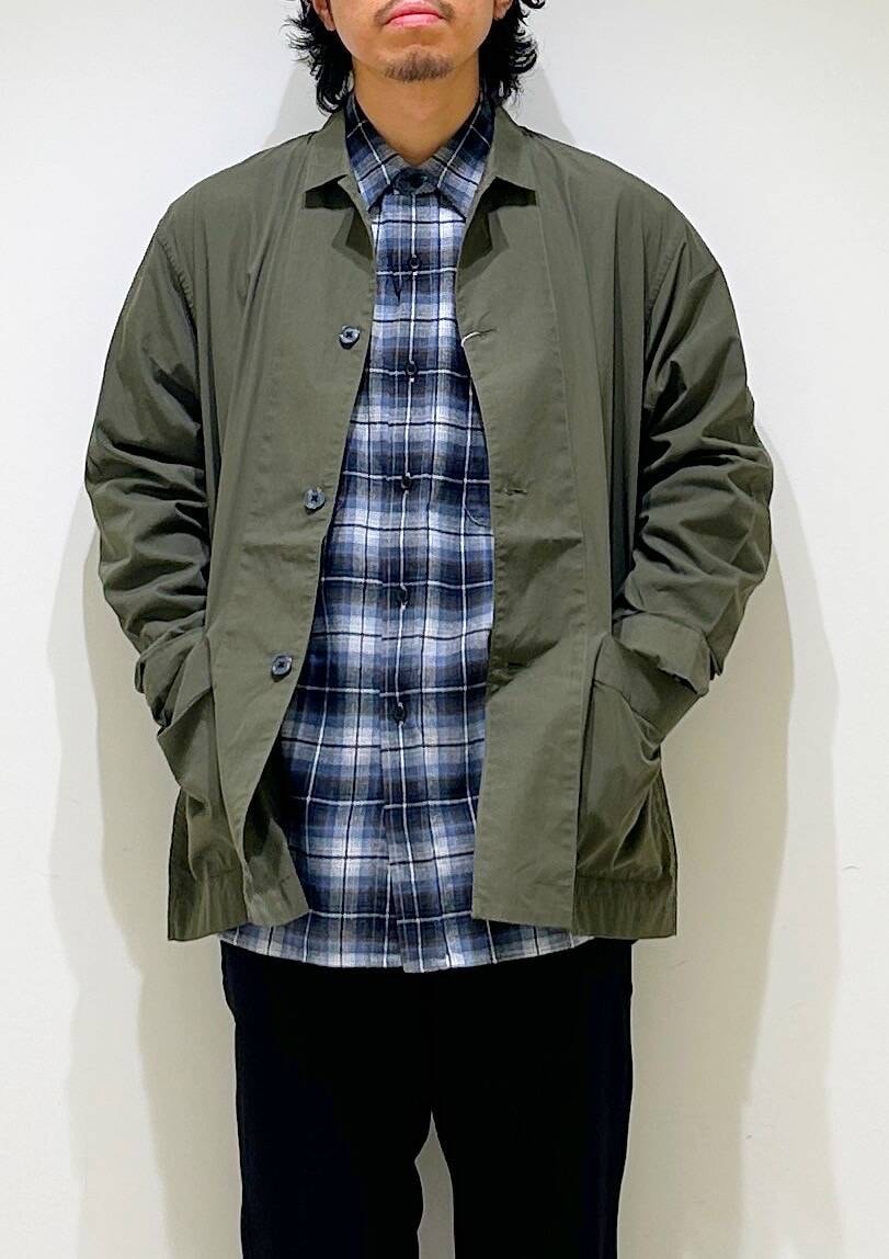 通常しっかりとしたデニムやかつらぎなどを使用するカバーオールですが、シャツ地にすることで着用時期も長く重宝する一枚が完成。