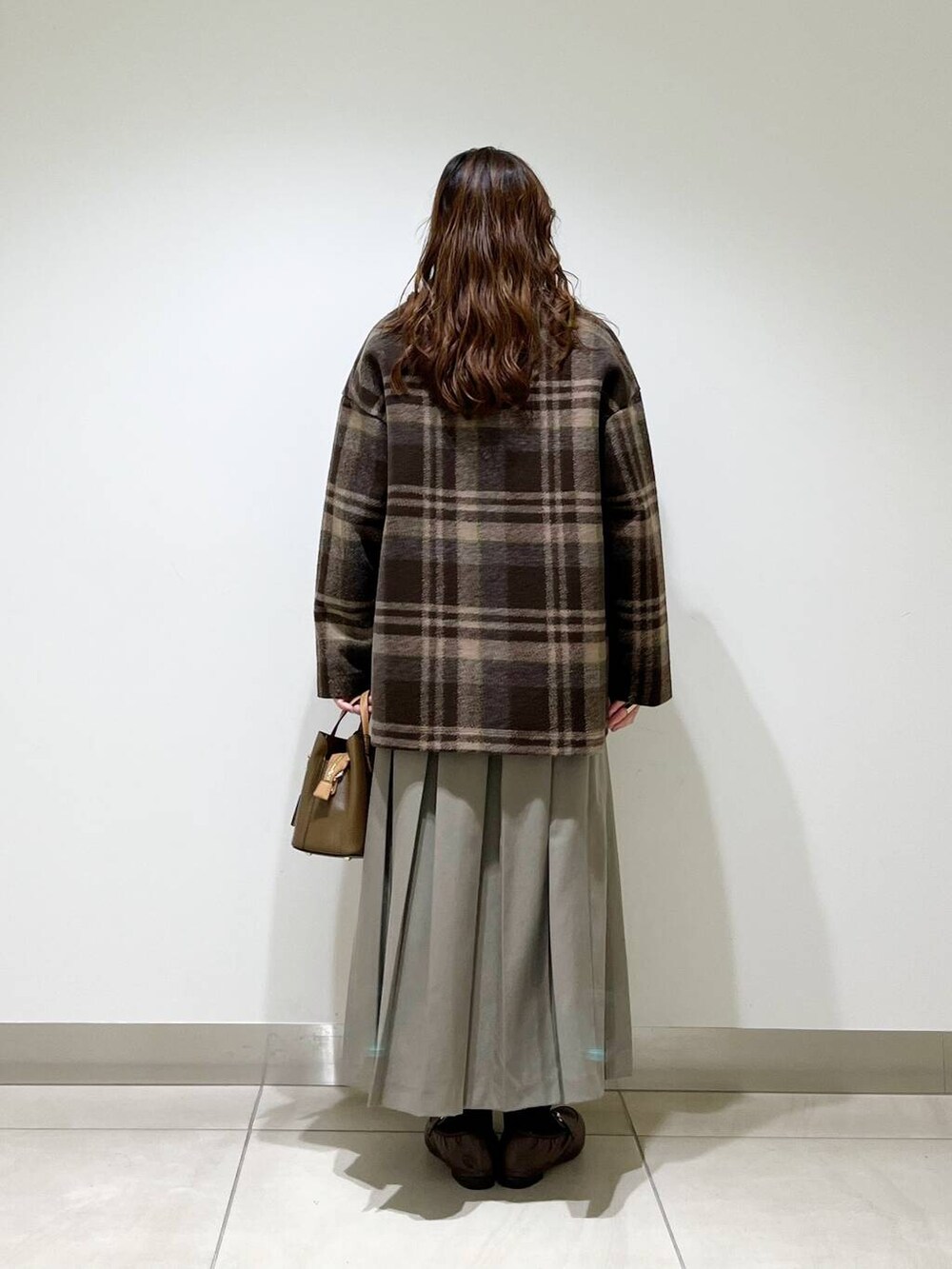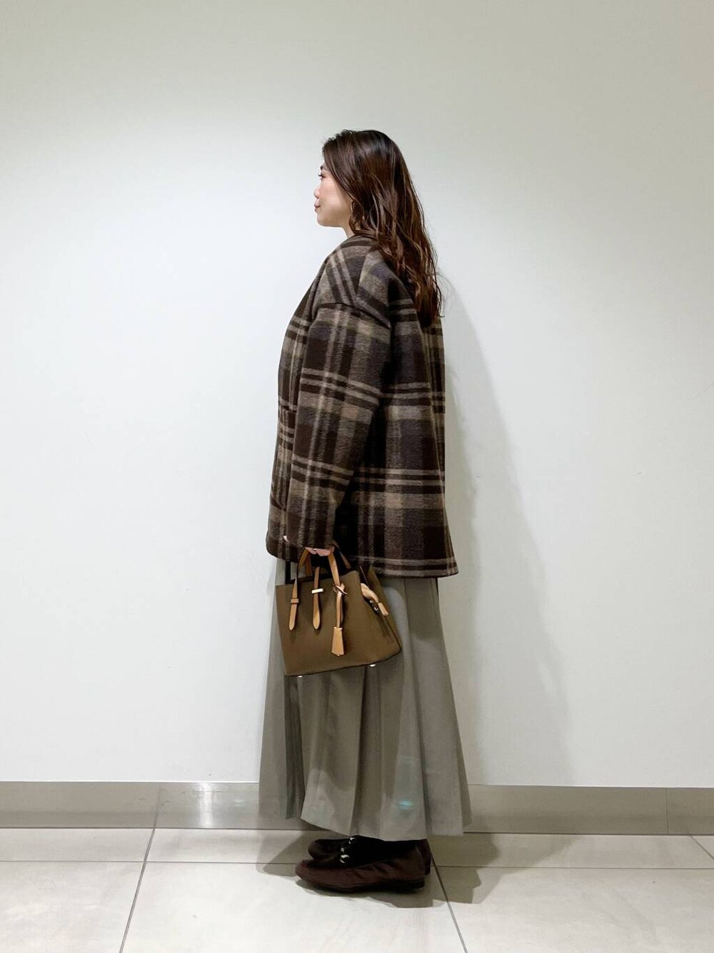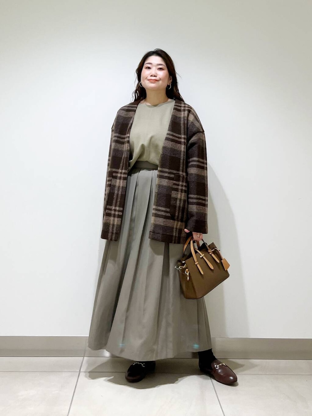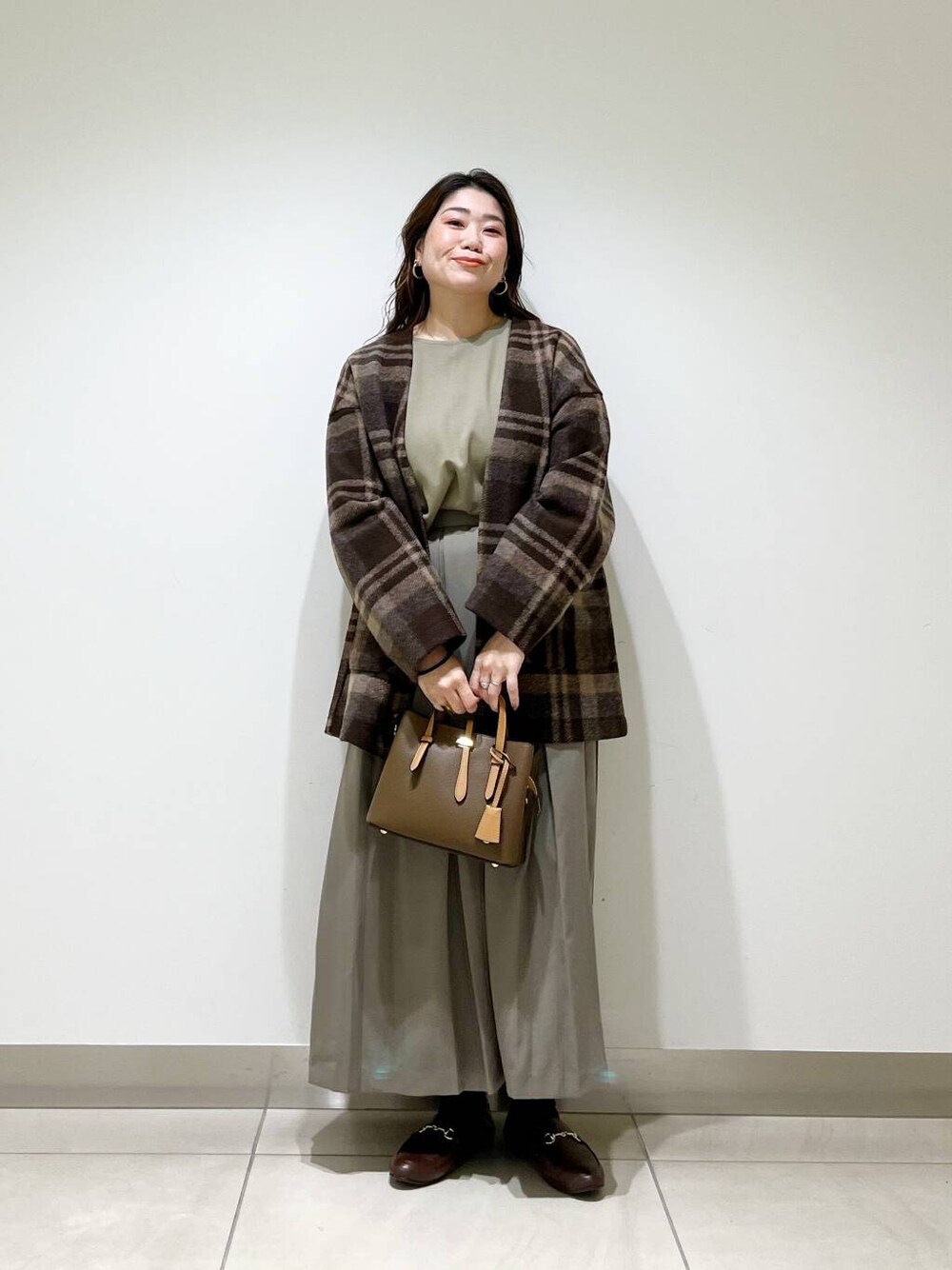 柔らかなライトカーキのトーンで合わせてチェックコートで合わせました〜☆