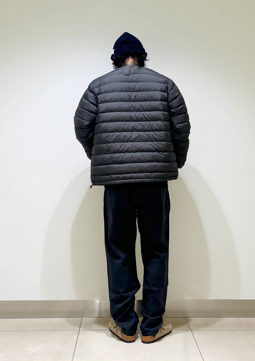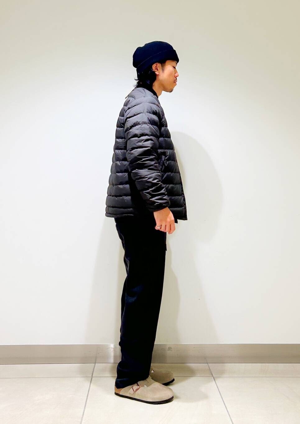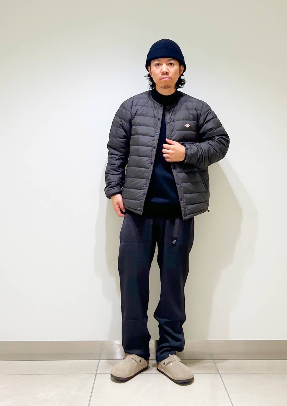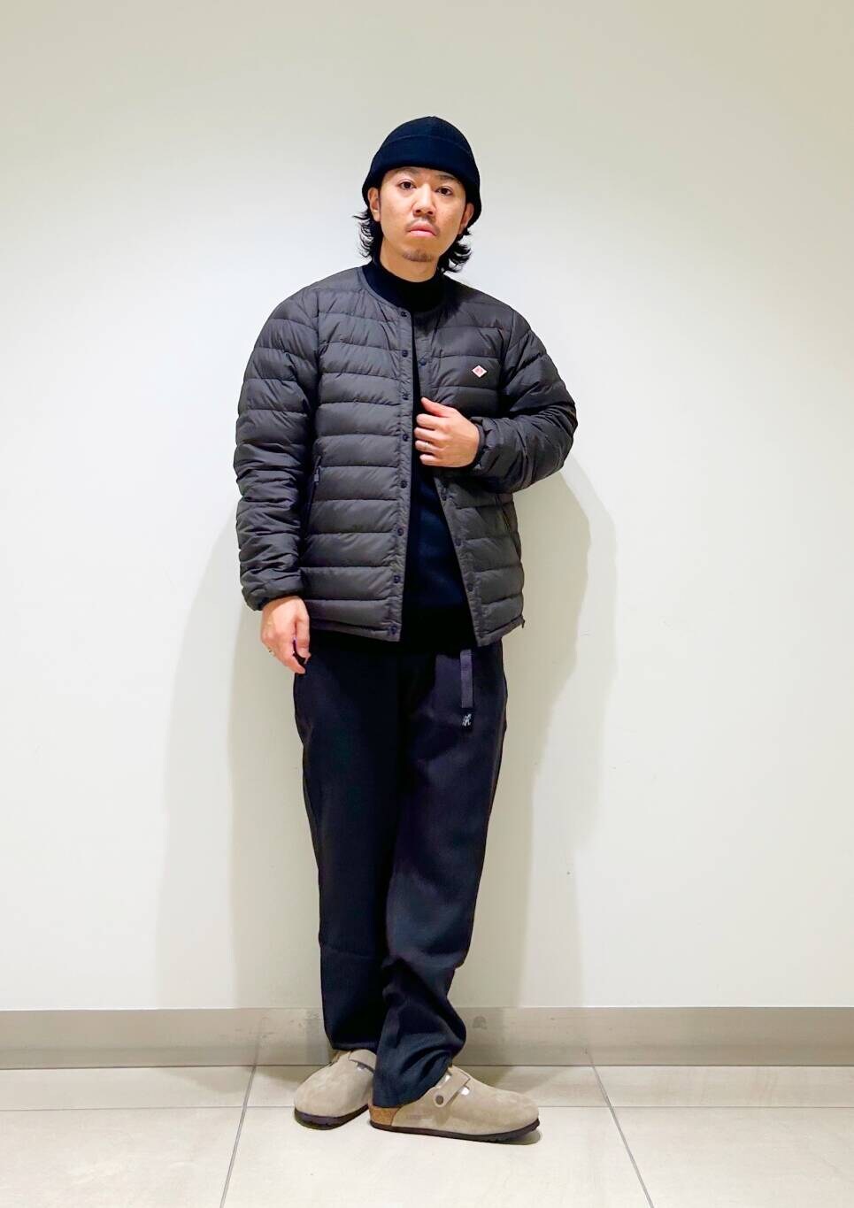 今回はDANTONインナーダウンと200日モックネックニットを使用したコーディネート。