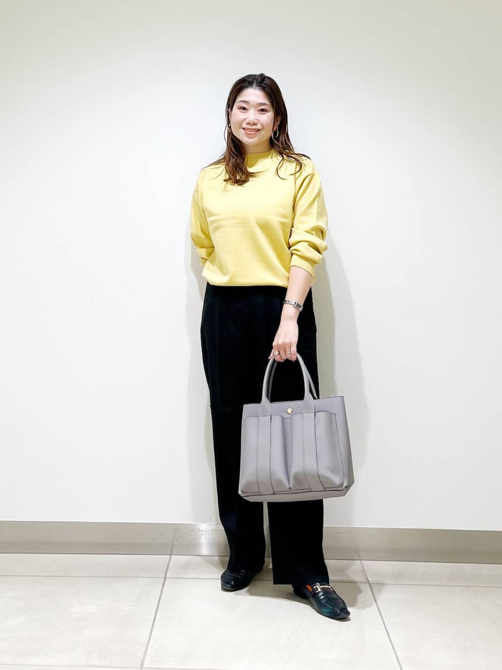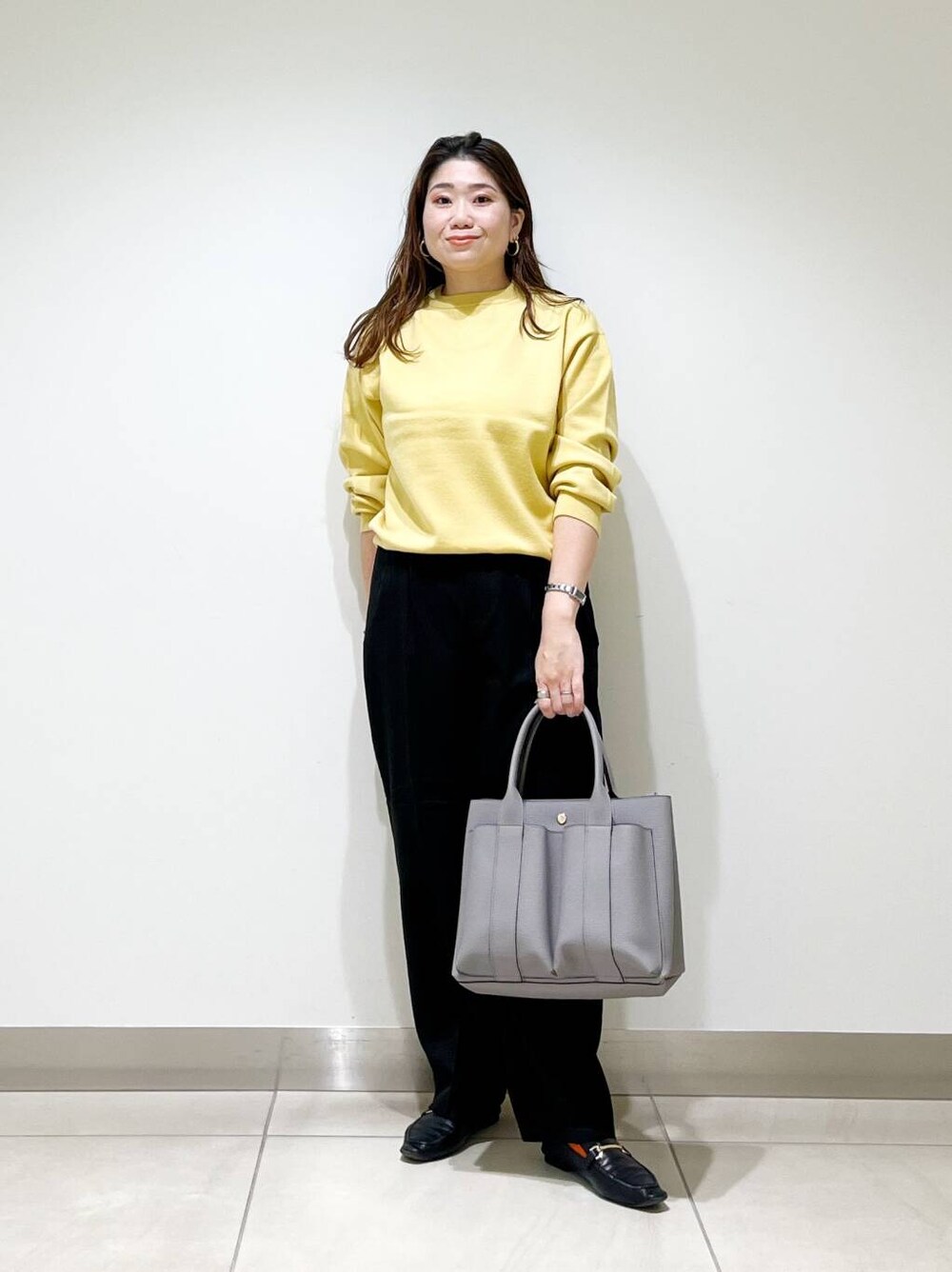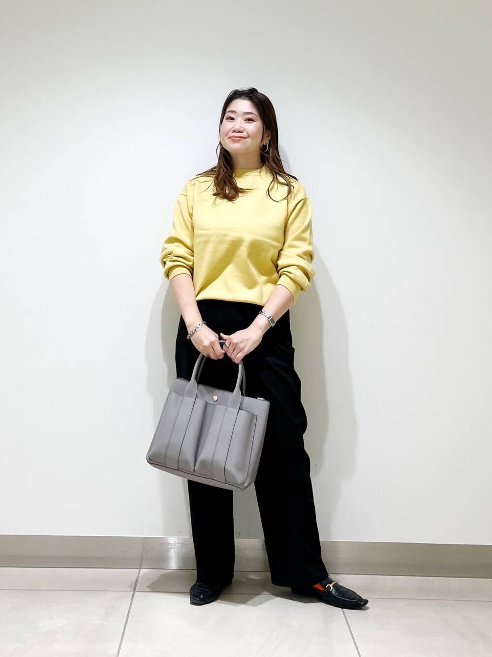 お肌の色をワントーン明るく見せてくれる柔らかいイエローカラーニットです☆