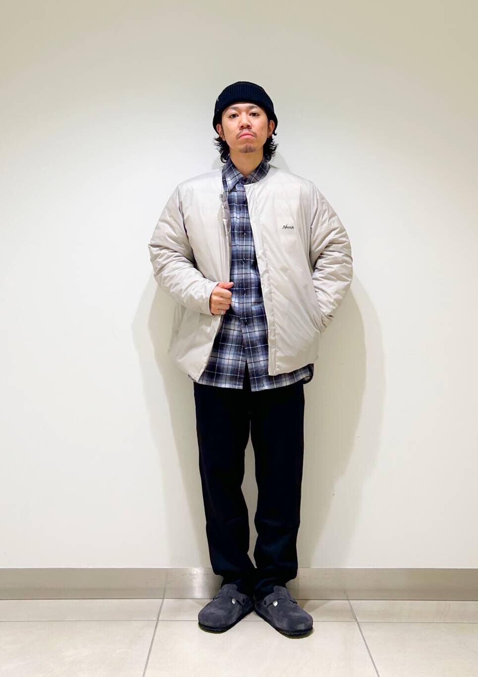 今回はnangaインナーダウンとグラミチウールライクを使用したコーディネート。