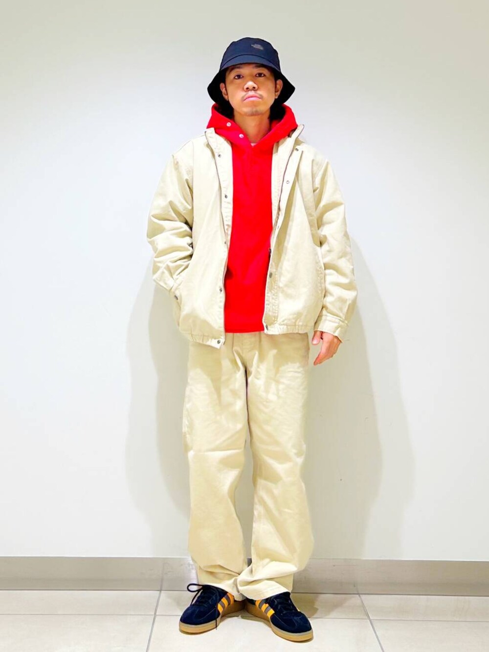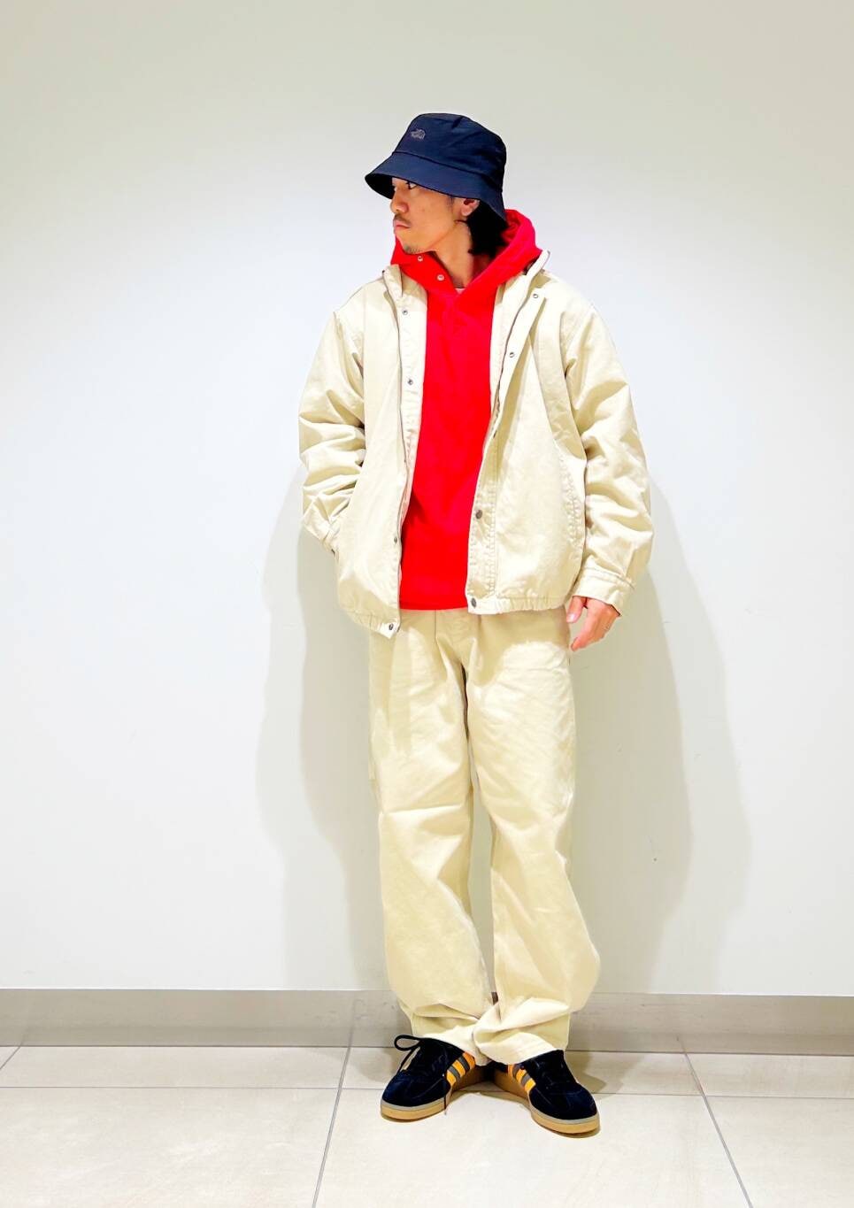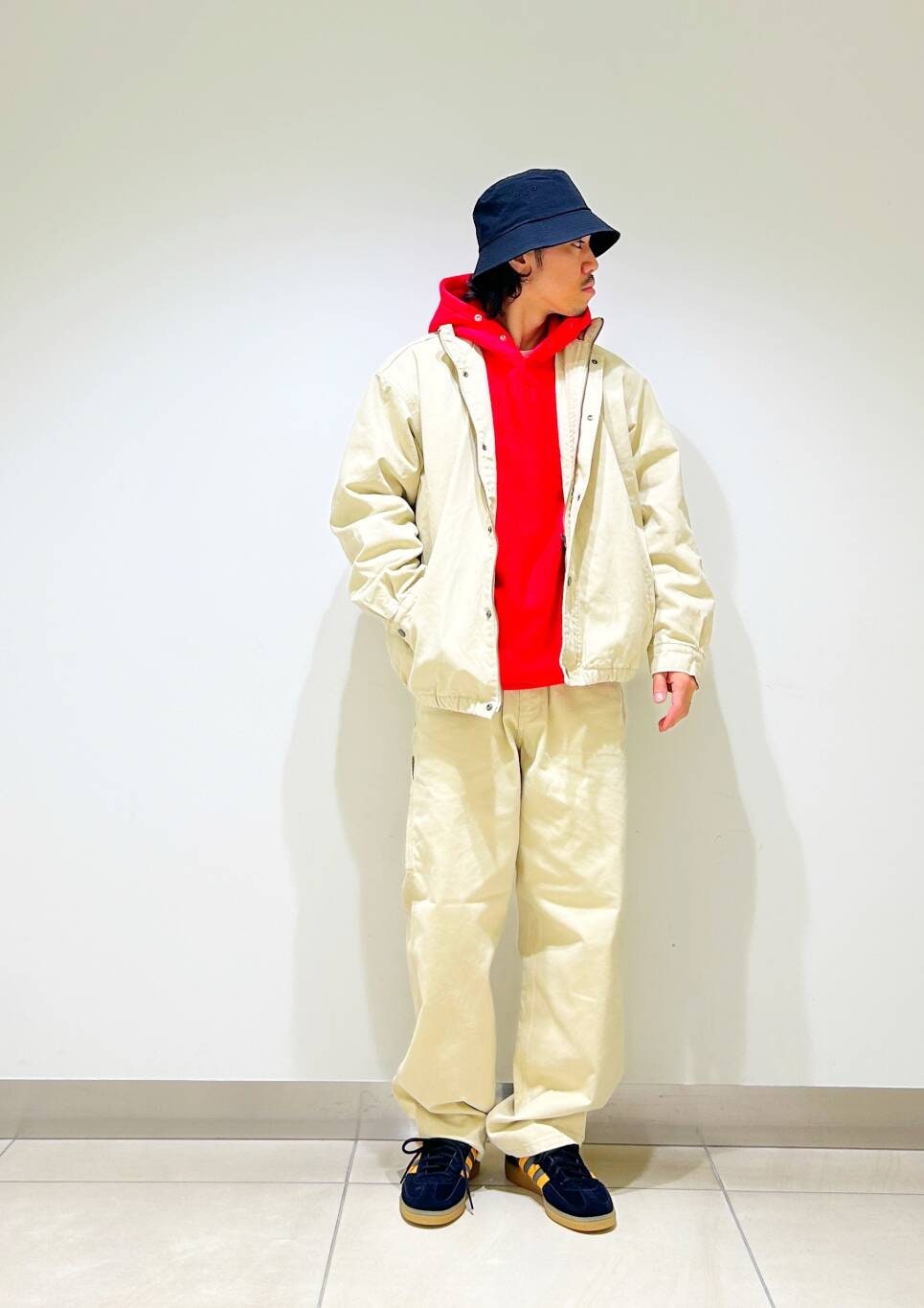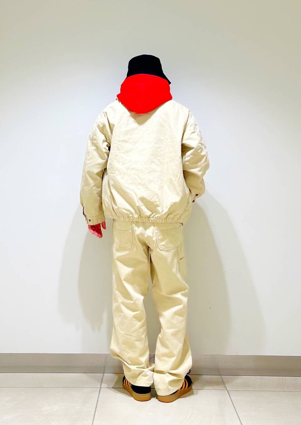 今回はダックセットアップとchampion別注リバースウィーブパーカーを使用したコーディネート。