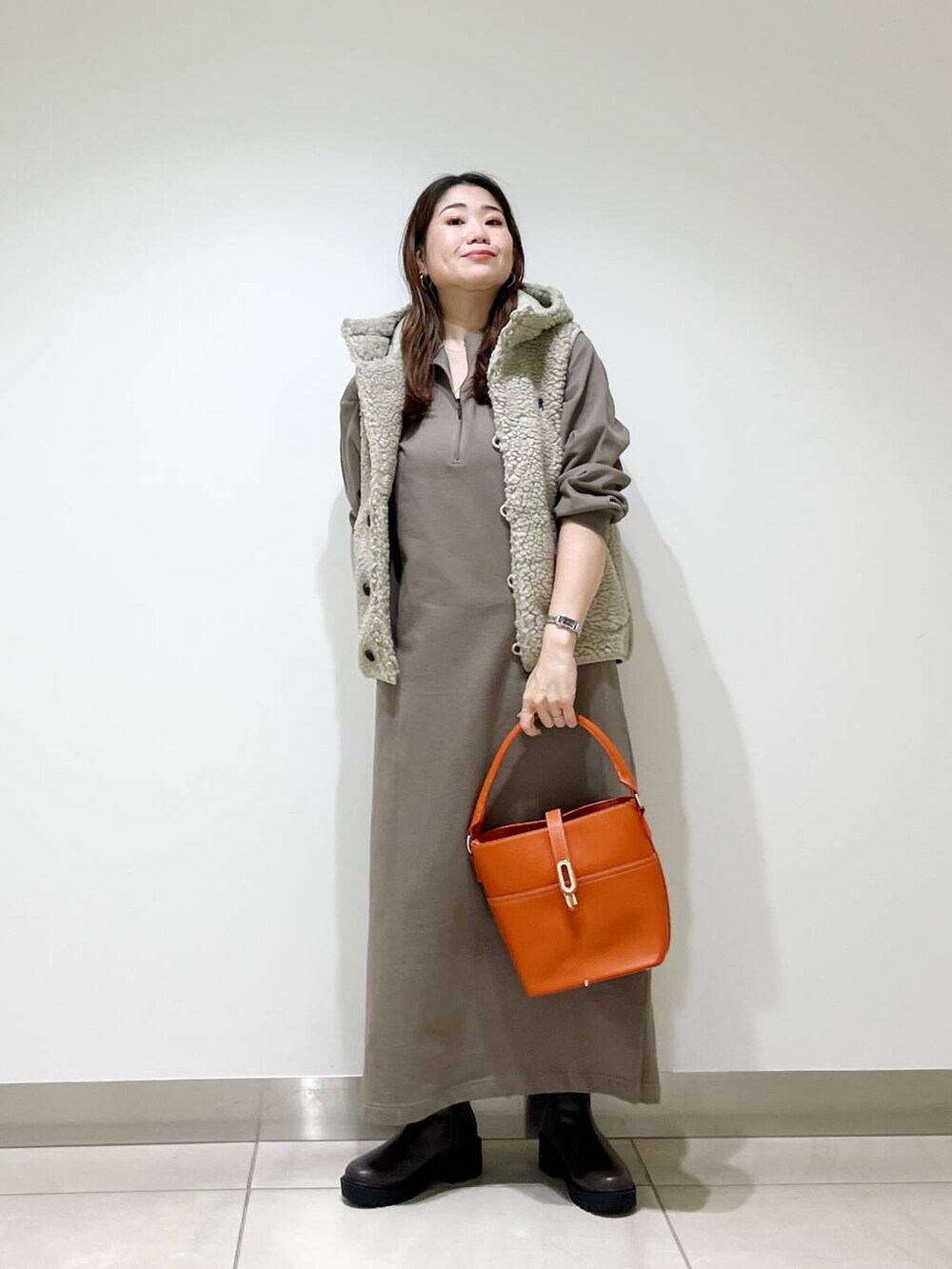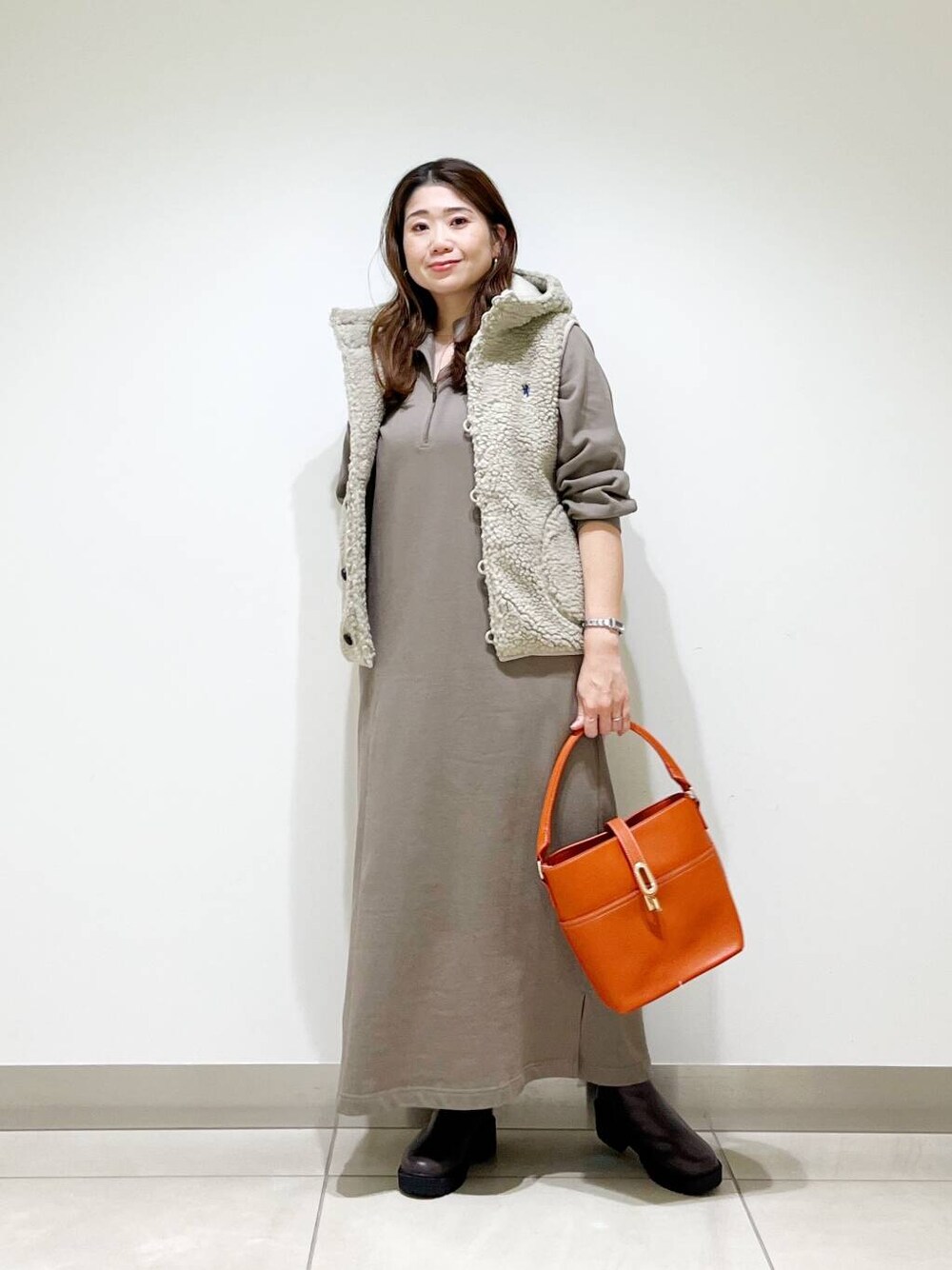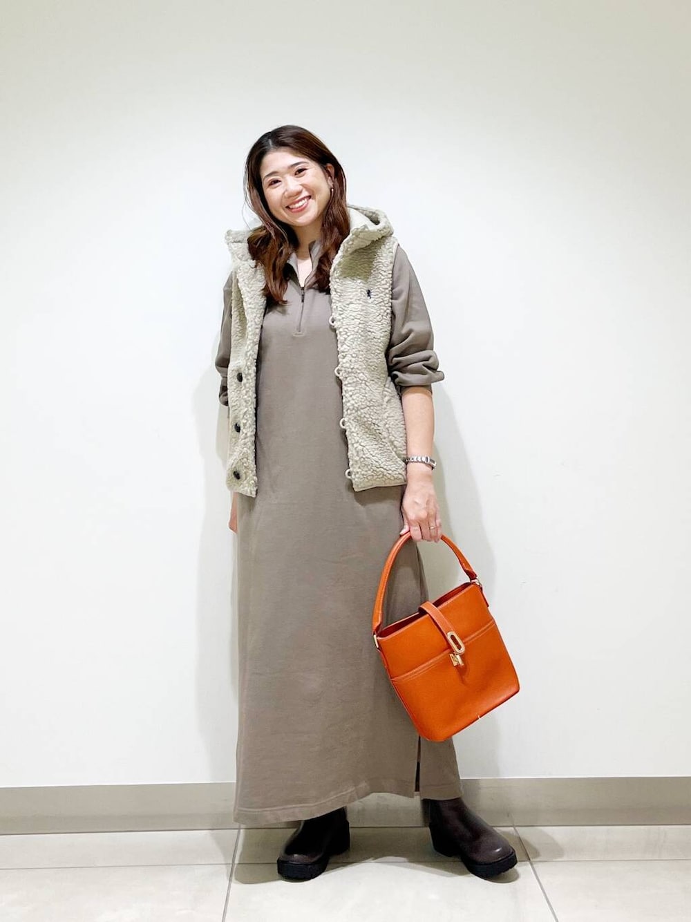 ワンピース×ボアベストの組み合わせは可愛すぎること間違いなしですね☆