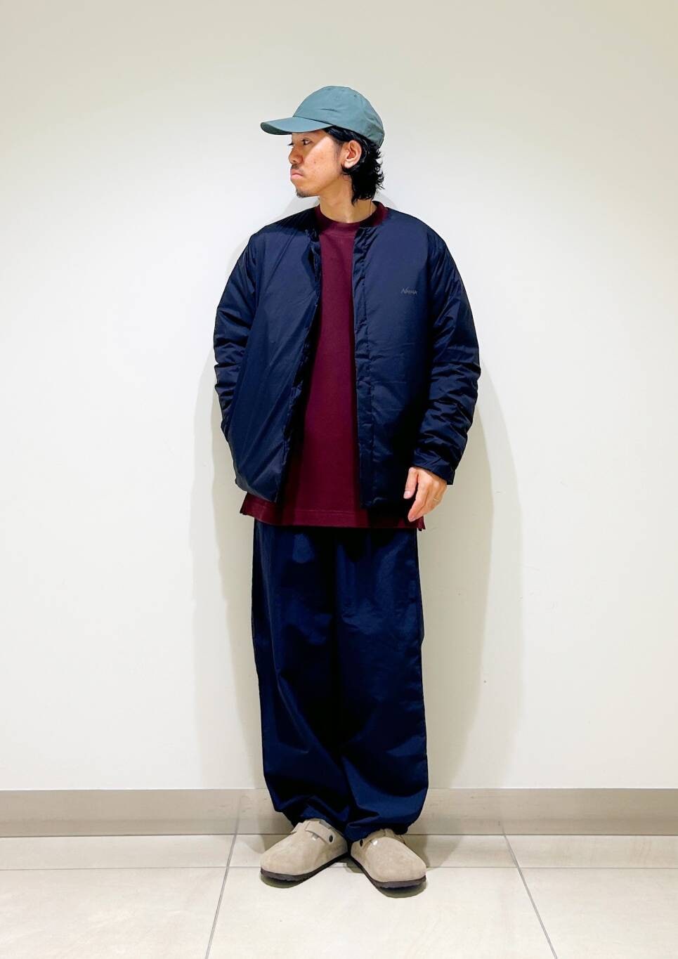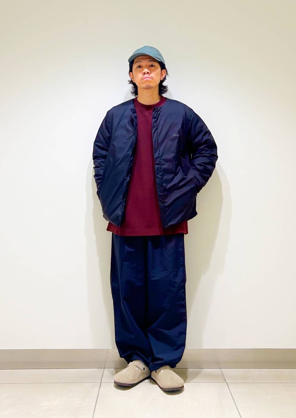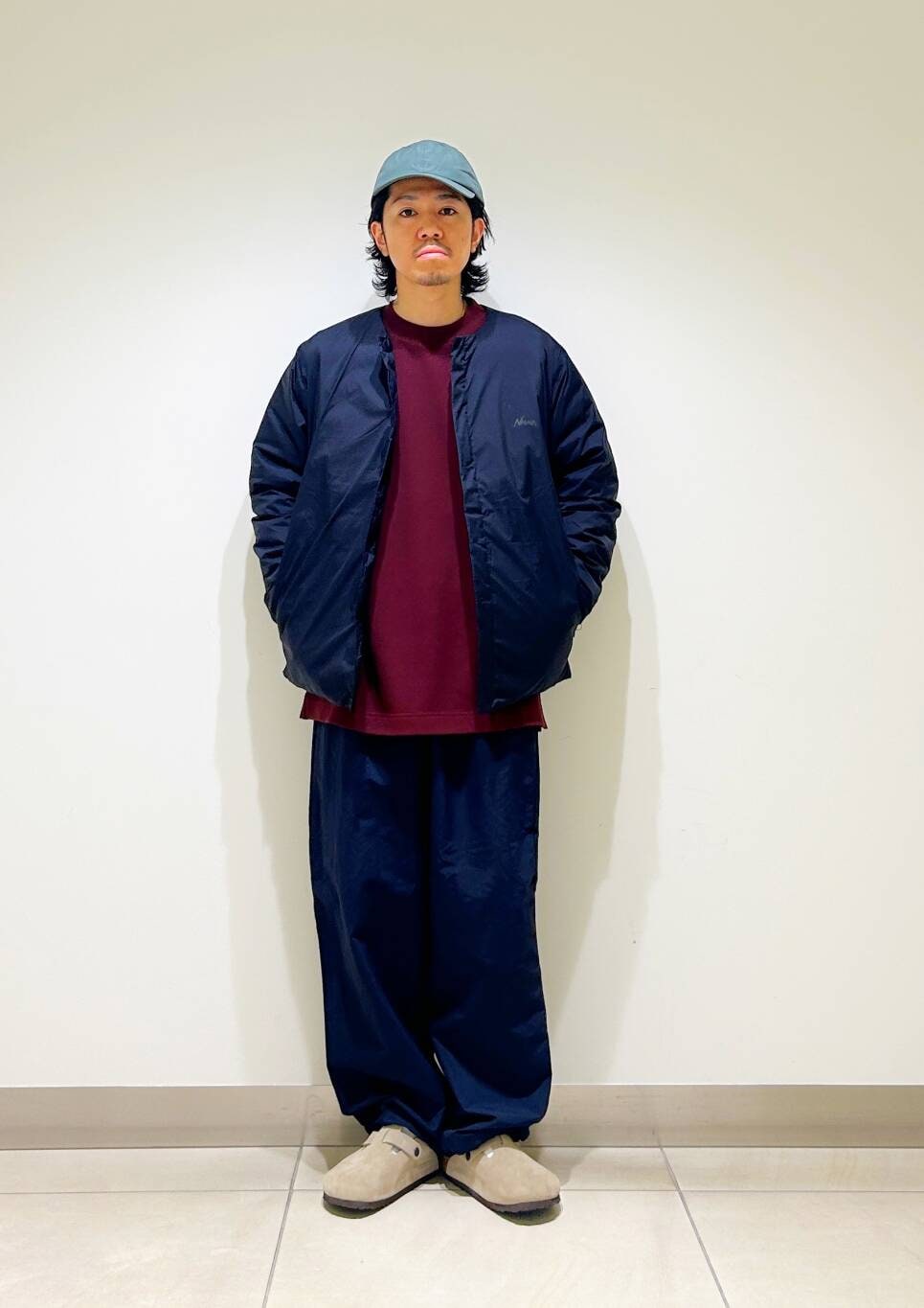 今回はnangaインナーダウンとumbro別注トラックパンツを使用したコーディネート。