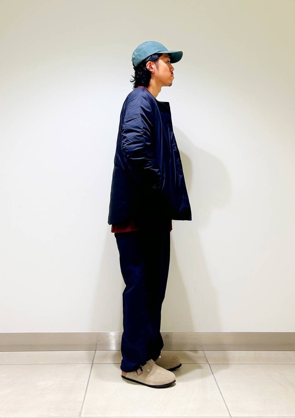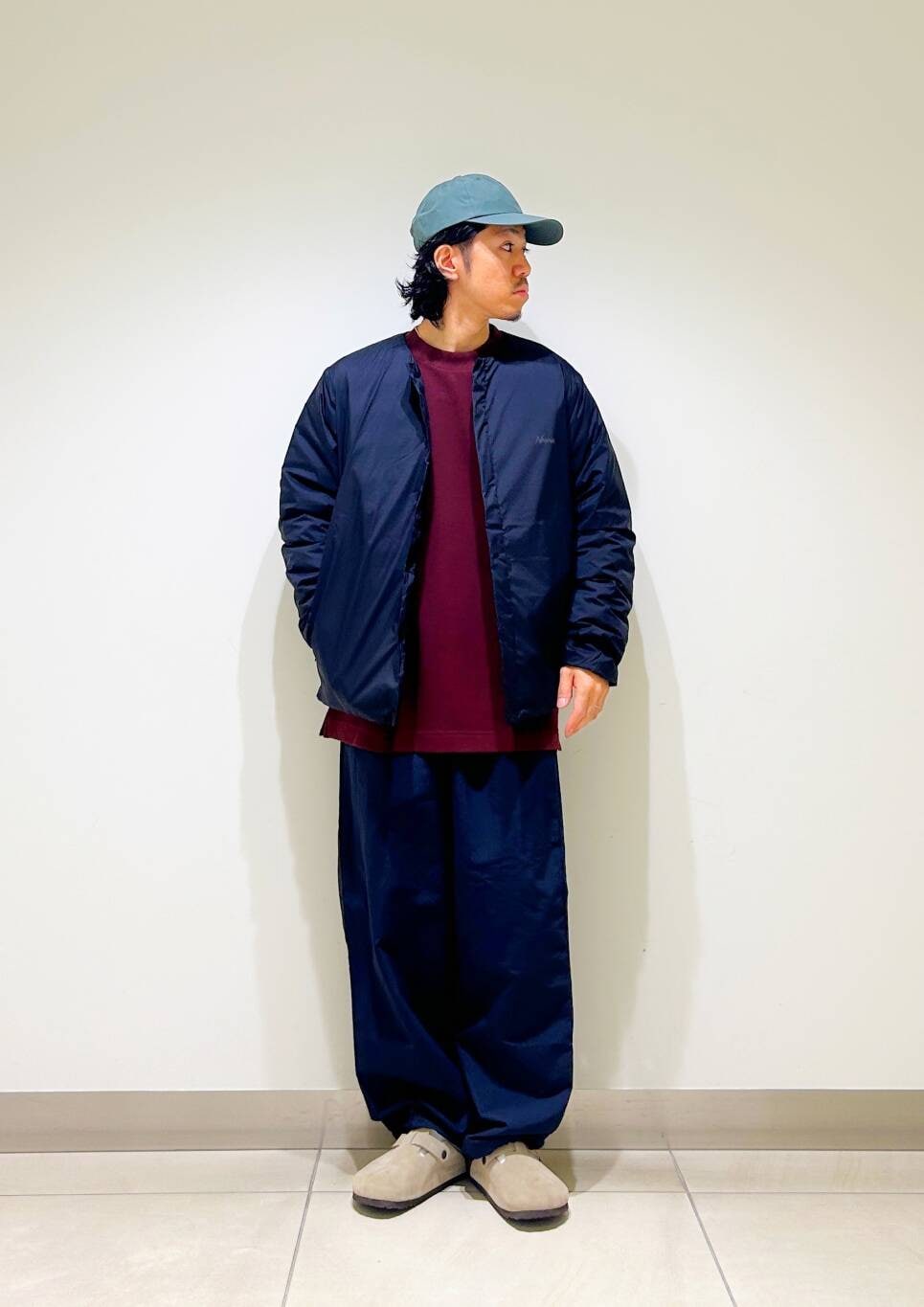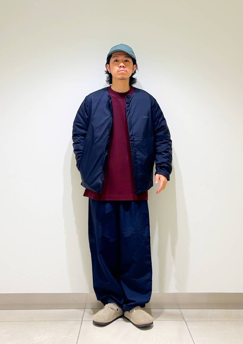 今回はnangaインナーダウンとumbro別注トラックパンツを使用したコーディネート。