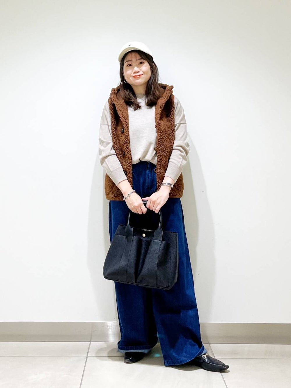 スッキリとした華奢見えのニットはとでも軽くて着やすい一枚です☆ボアベストもあったかいです☆