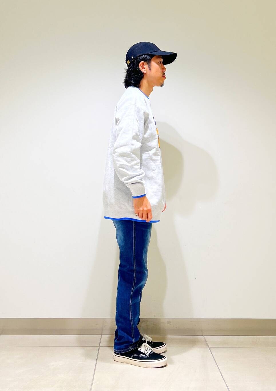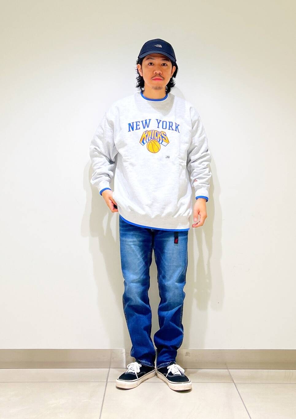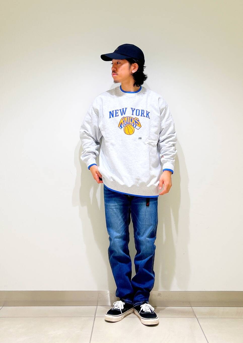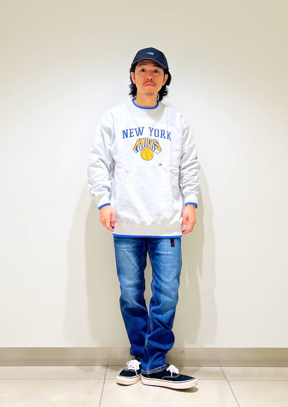 今回はNBAスウェットとグラミチ別注デニムパンツを使用したコーディネート。