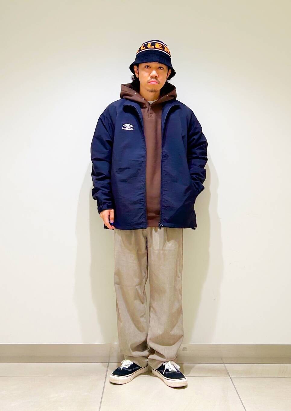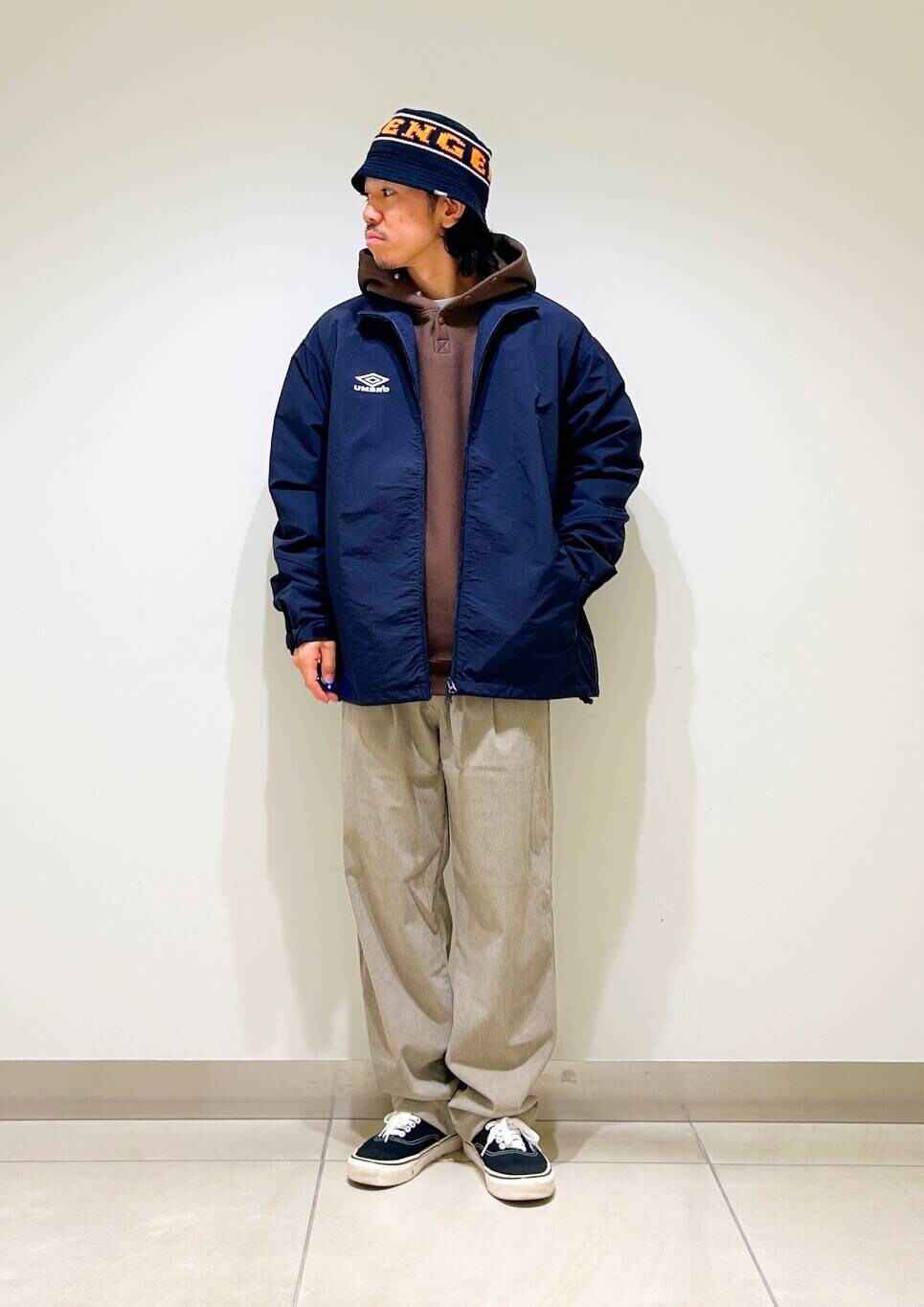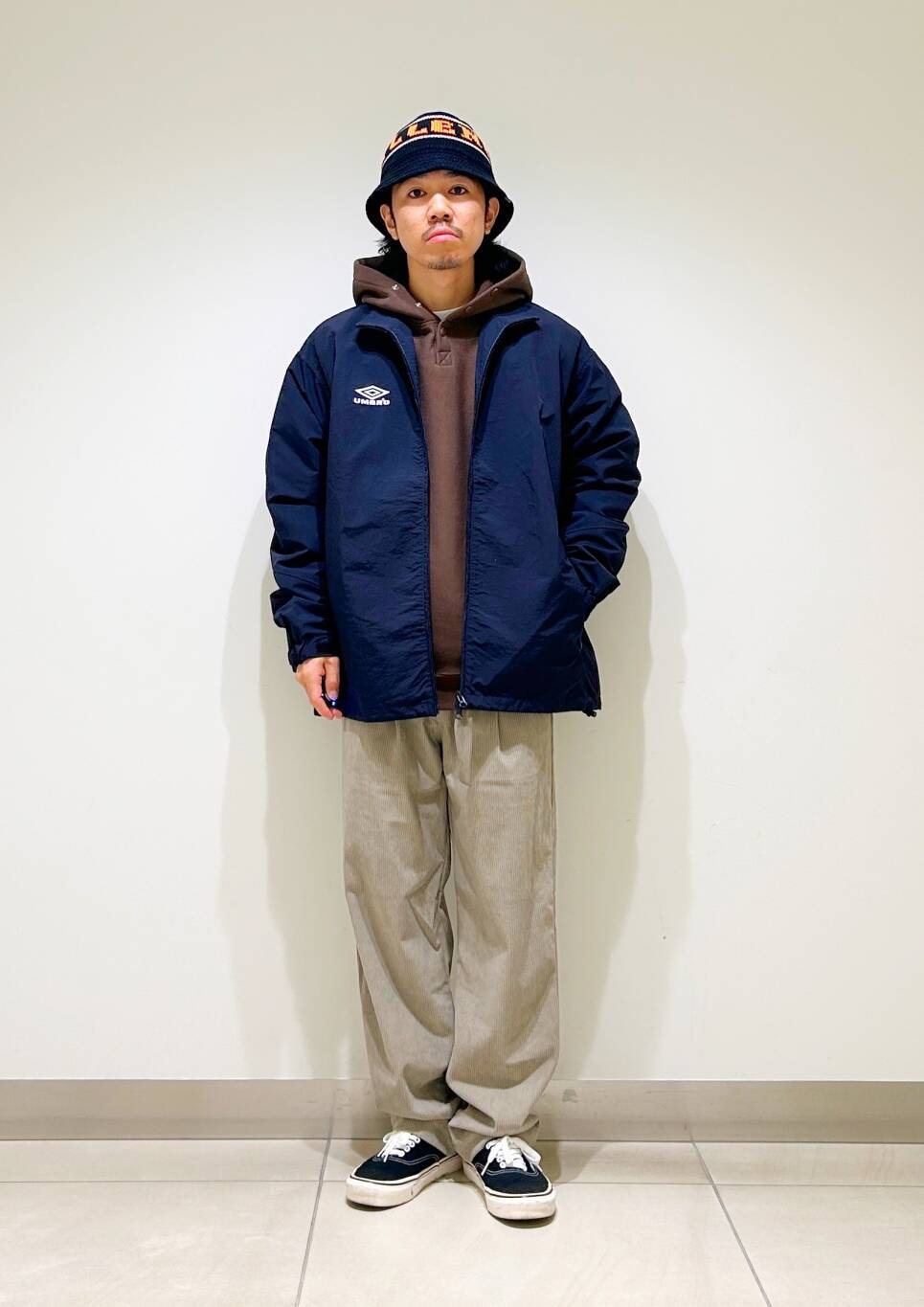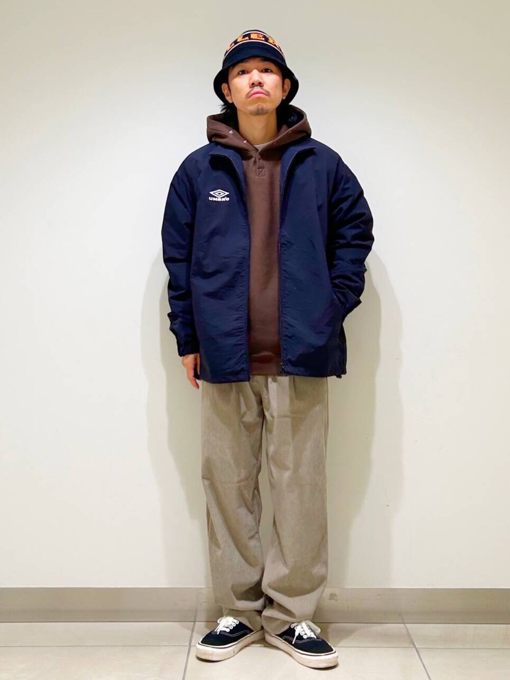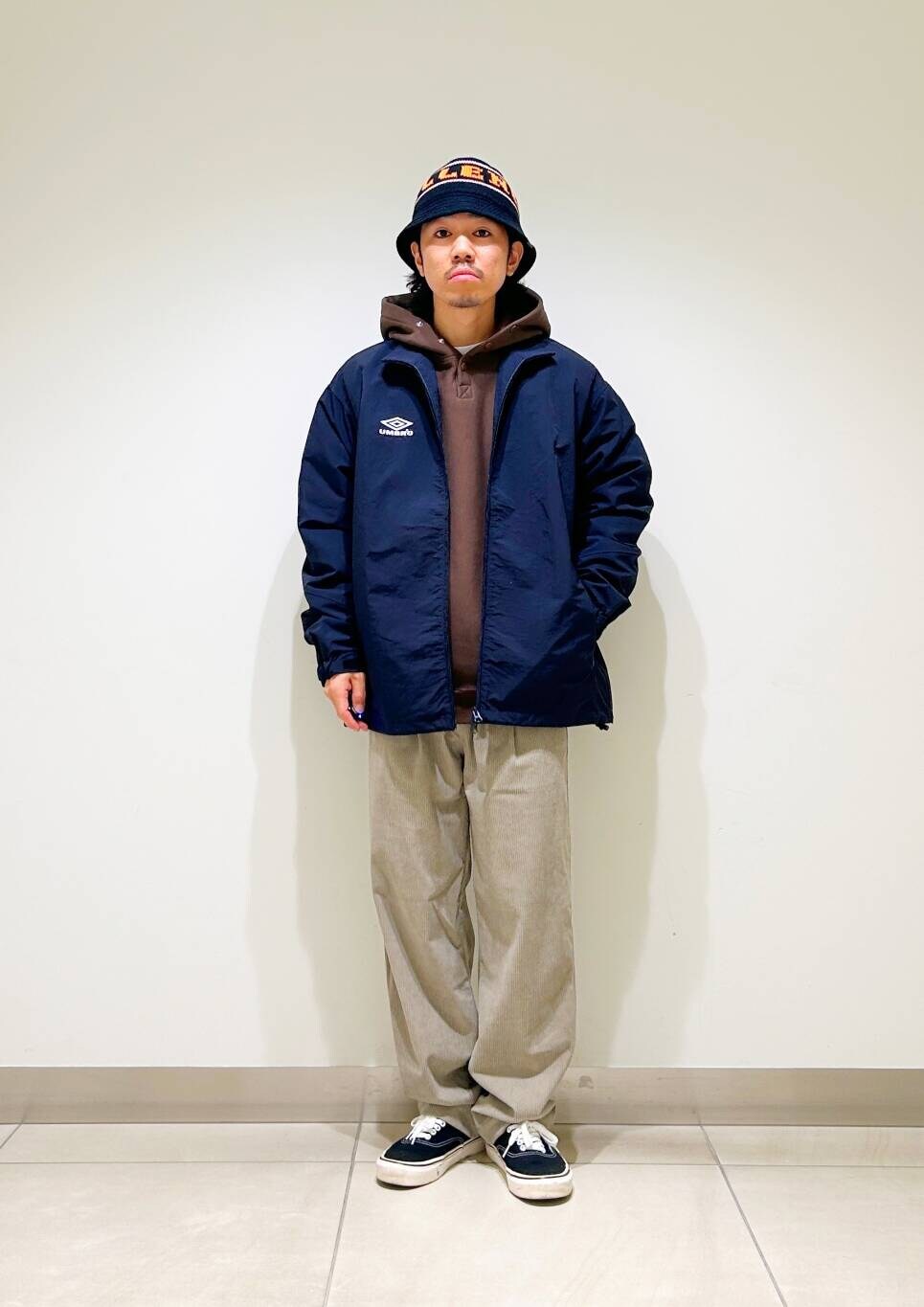 今回はumbroトラックジャケットとコーデュロイトラウザーを使用したコーディネート。