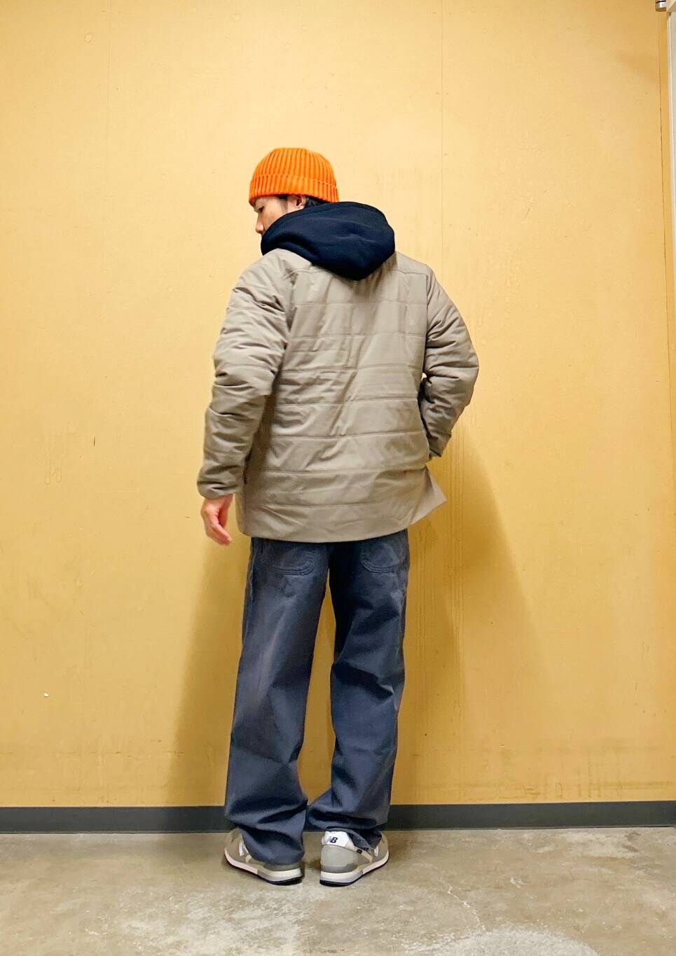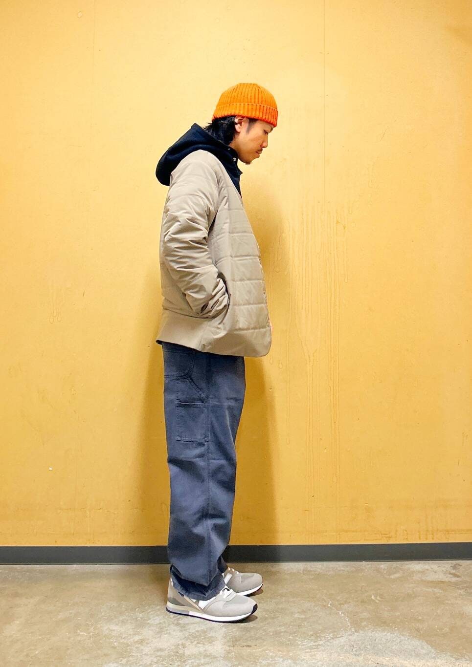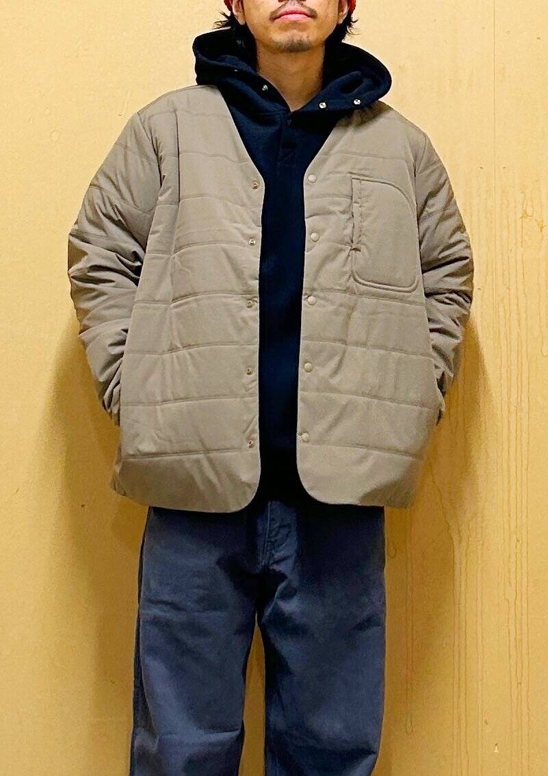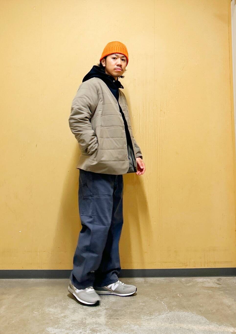 今回はSnow Peak Apparel Flexible Insulated Cardiganとダックストレートパンツを使用したコーディネート。