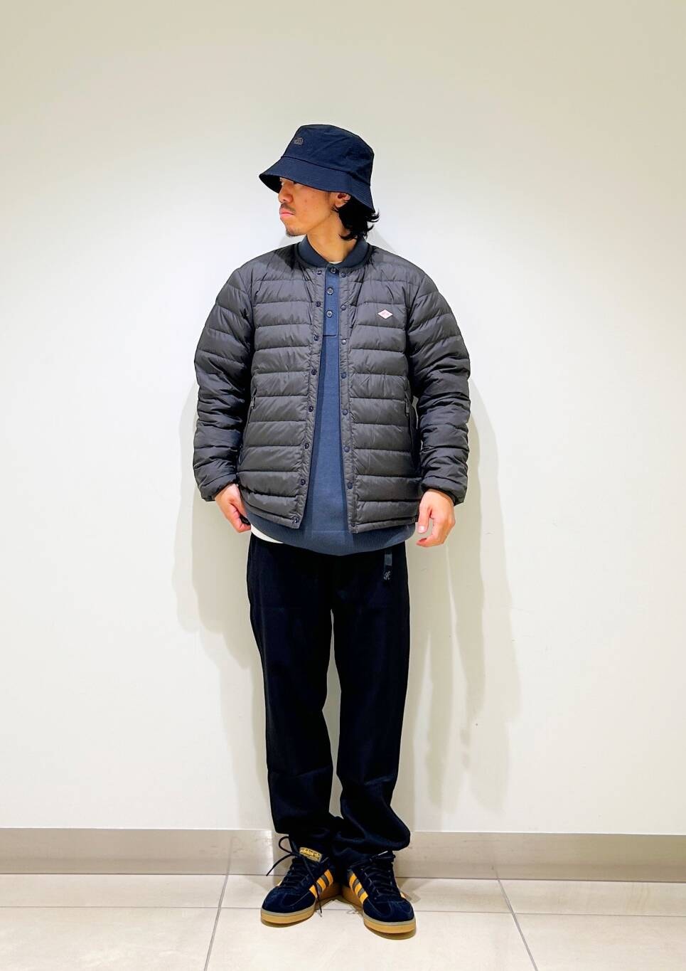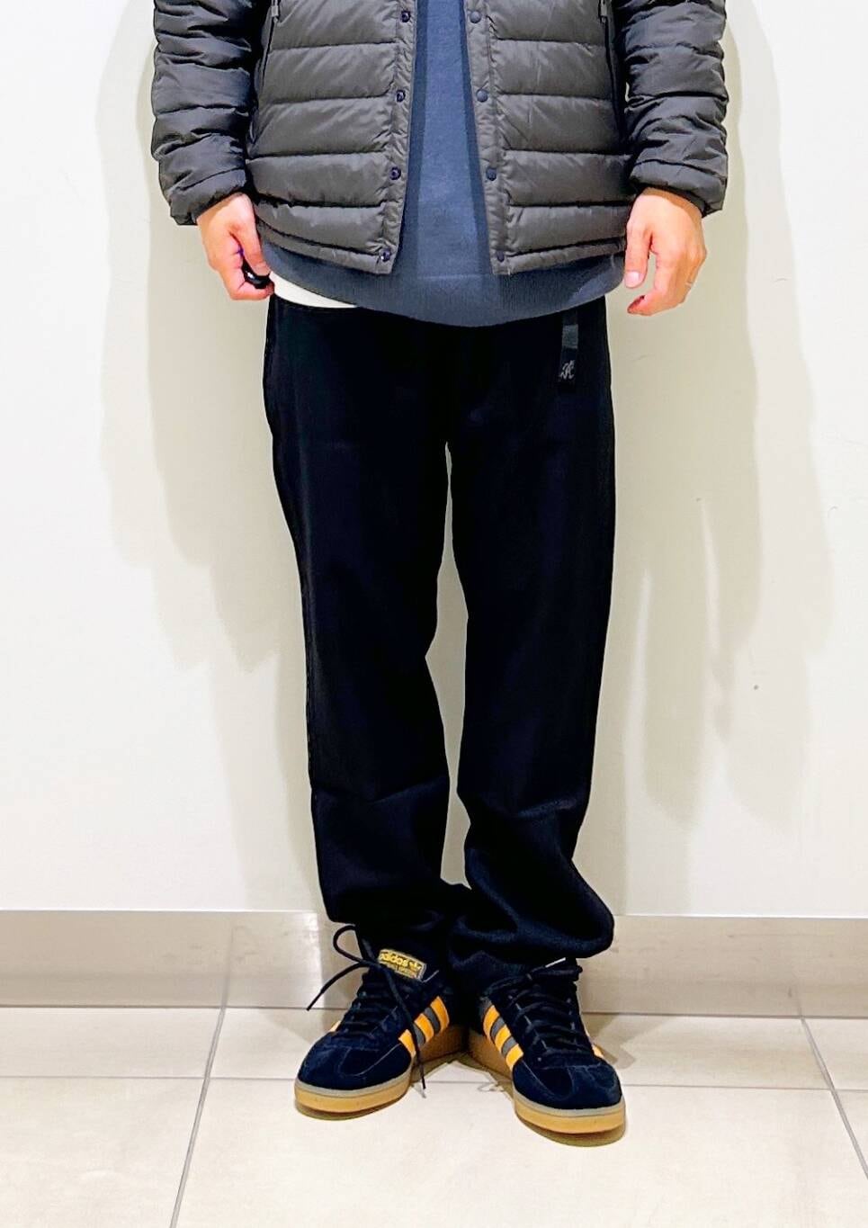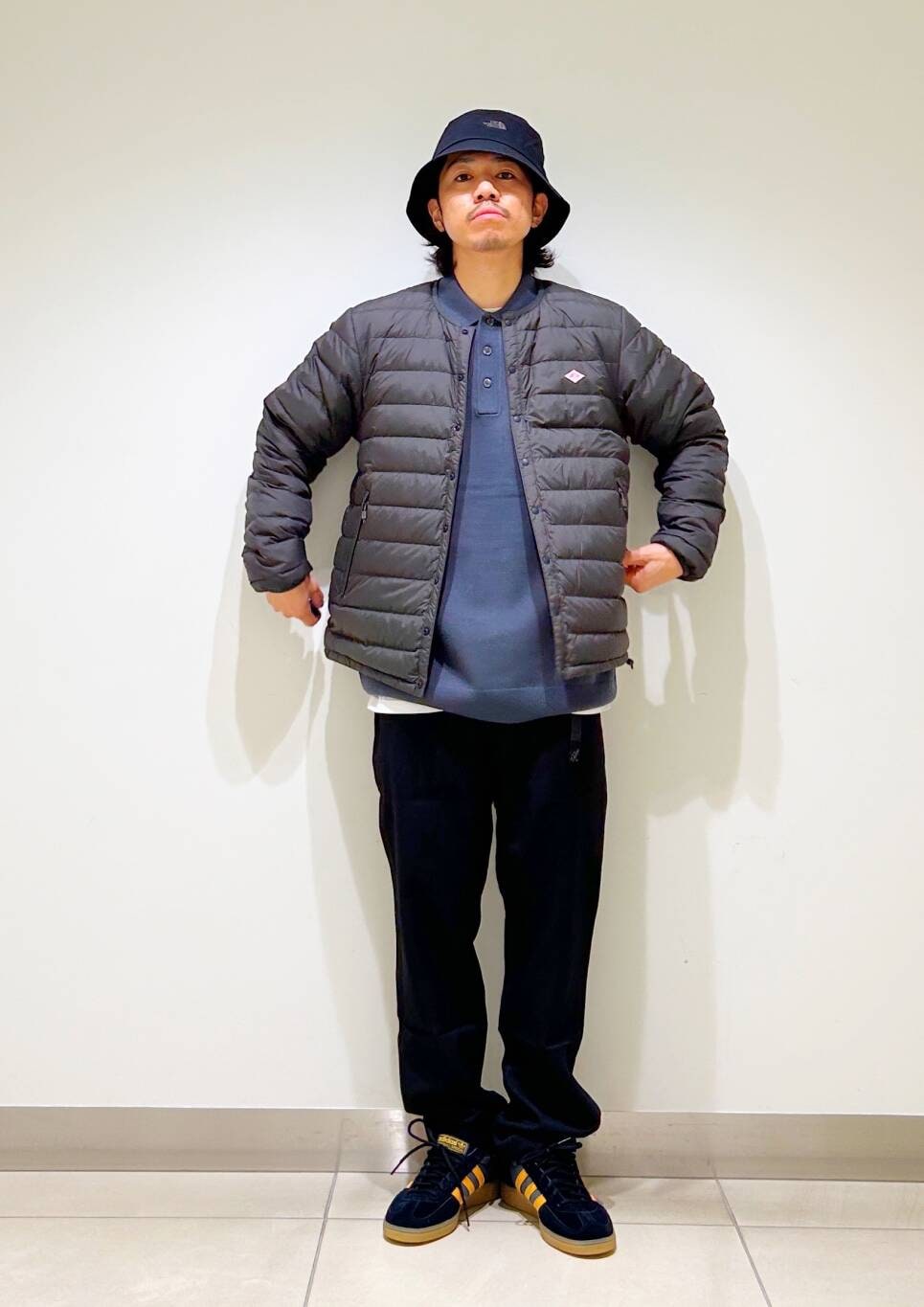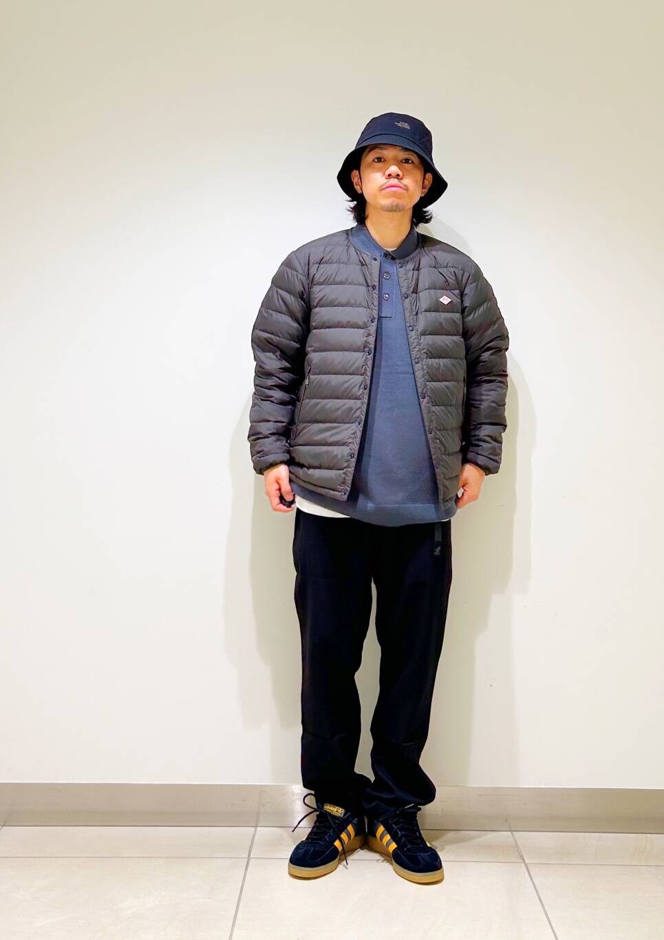 今回はDANTONインナーダウンとグラミチ別注ウールライクトラウザーを使用したコーディネート。