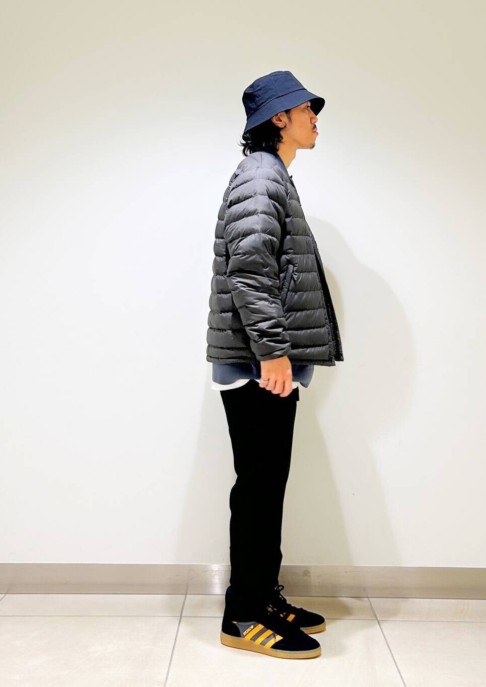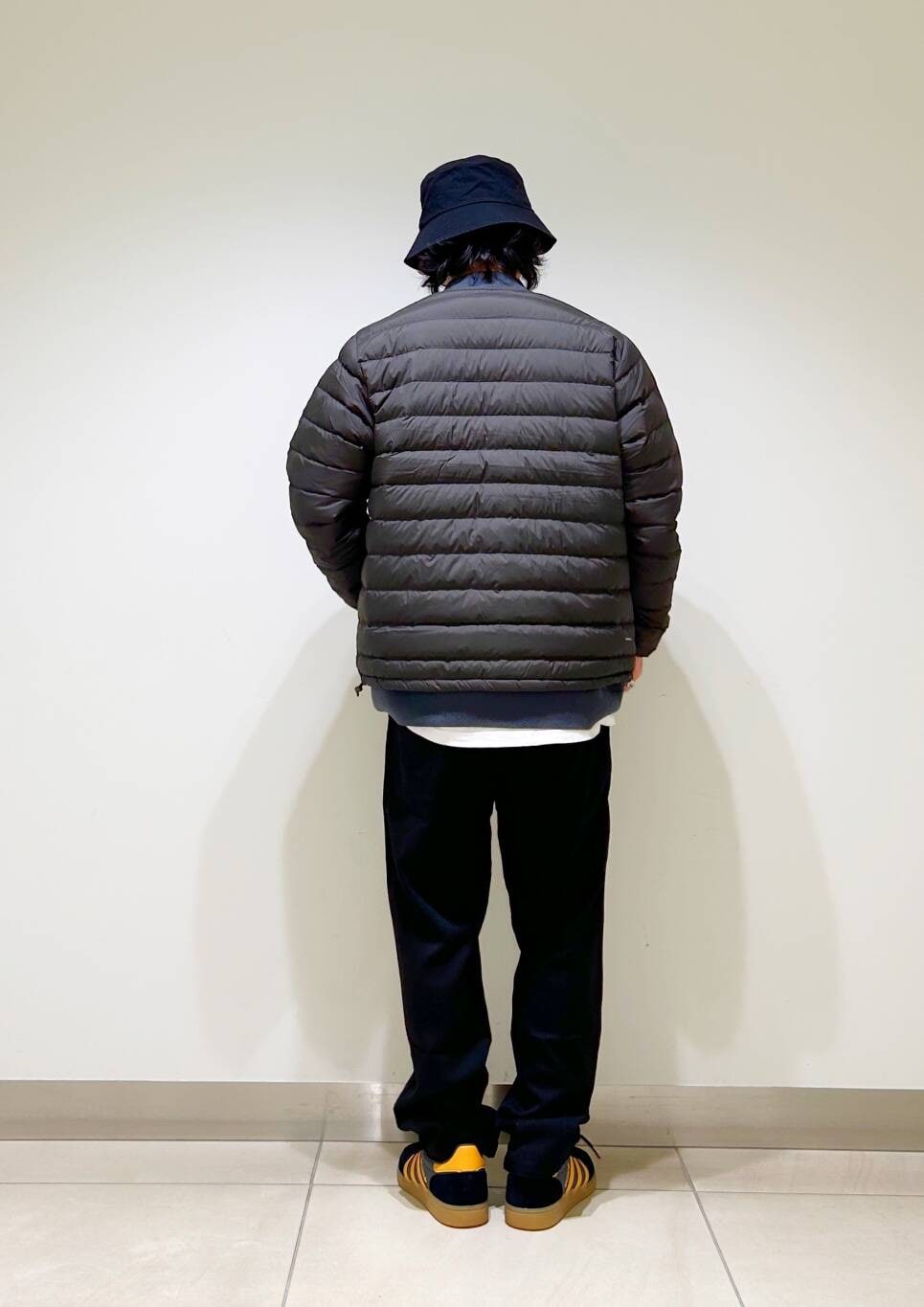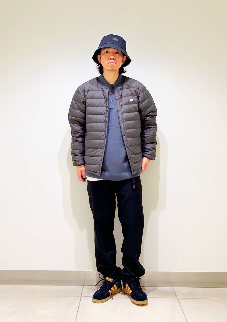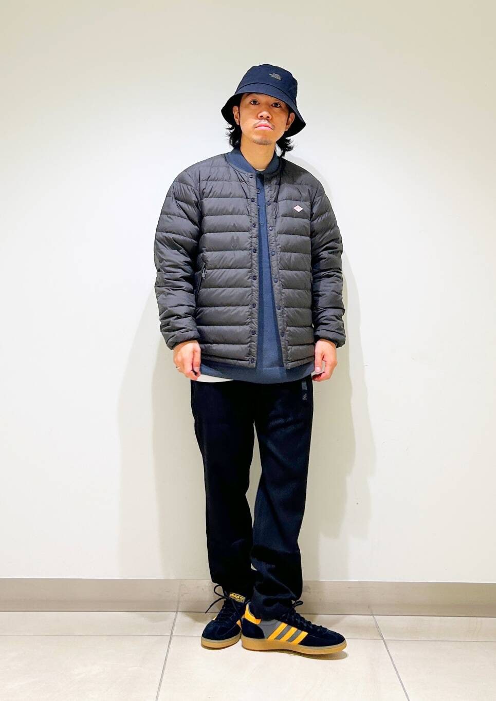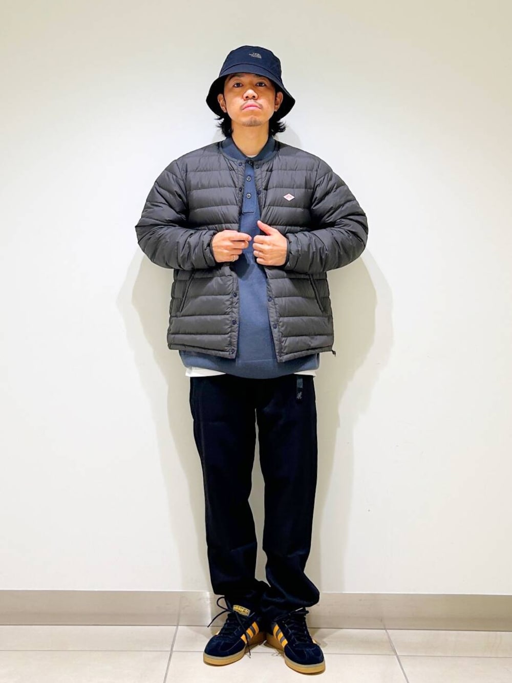 今回はDANTONインナーダウンとグラミチ別注ウールライクトラウザーを使用したコーディネート。