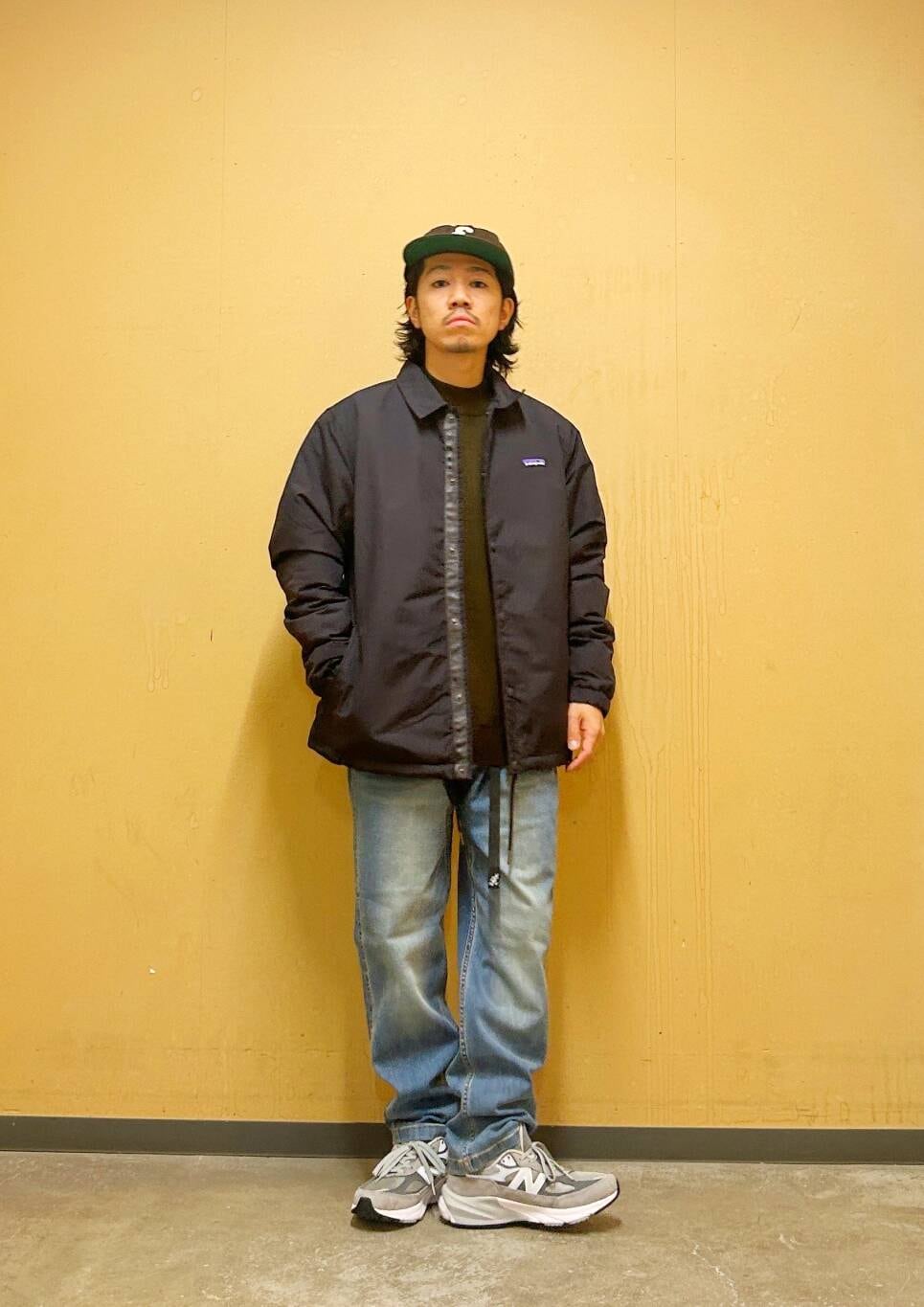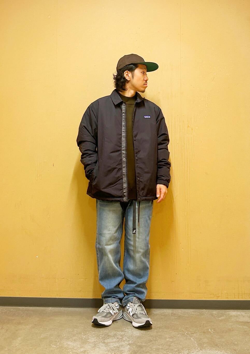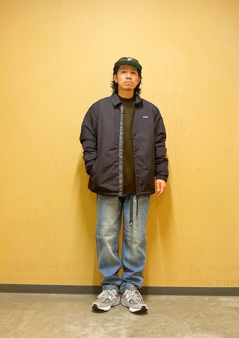 今回はPatagoniaコーチジャケットとグラミチ別注デニムパンツを使用したコーディネート。