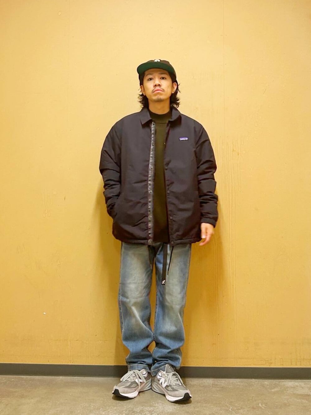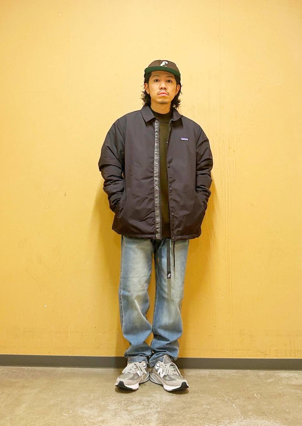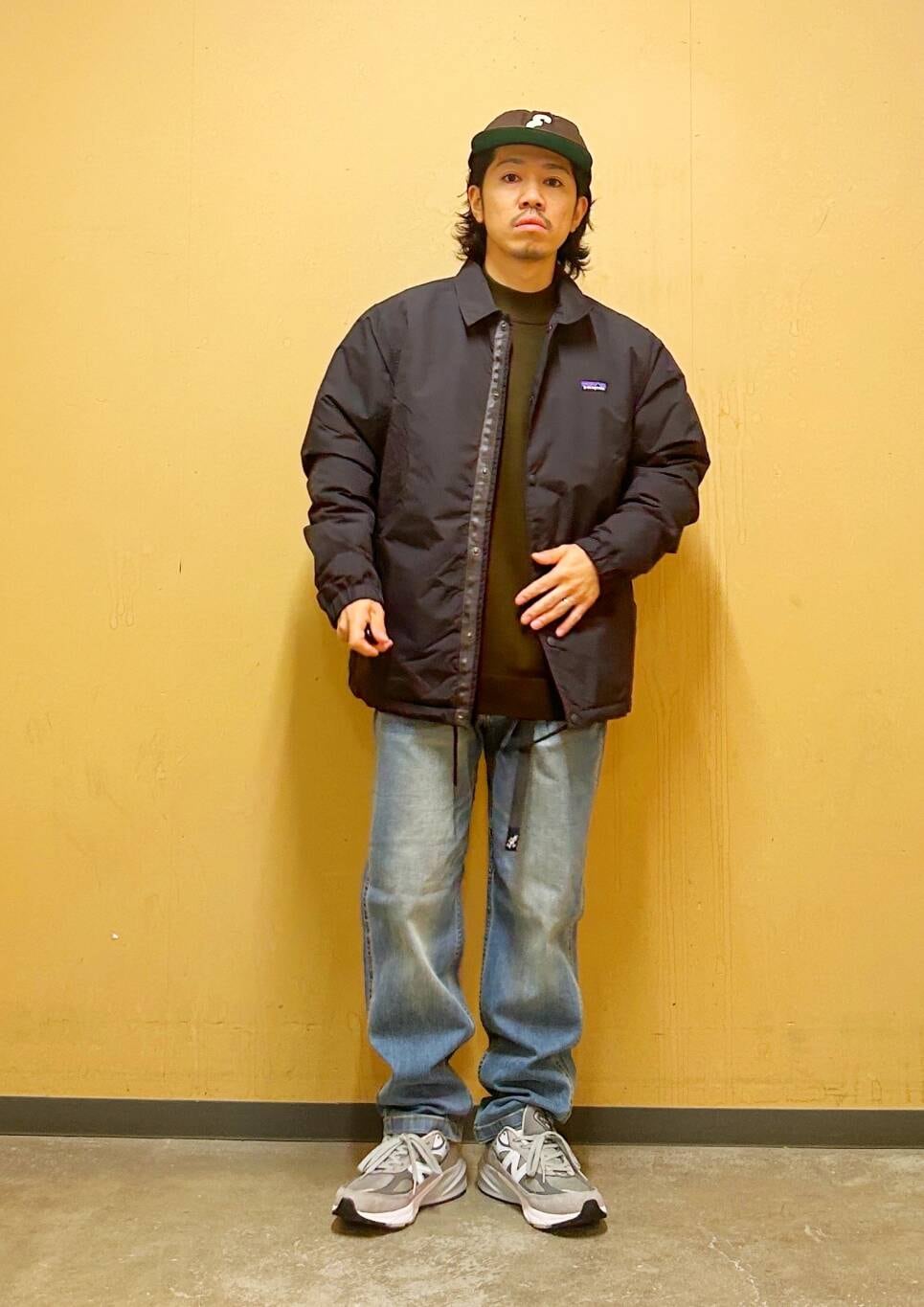 今回はPatagoniaコーチジャケットとグラミチ別注デニムパンツを使用したコーディネート。