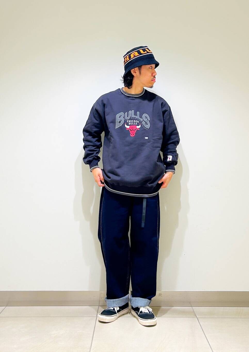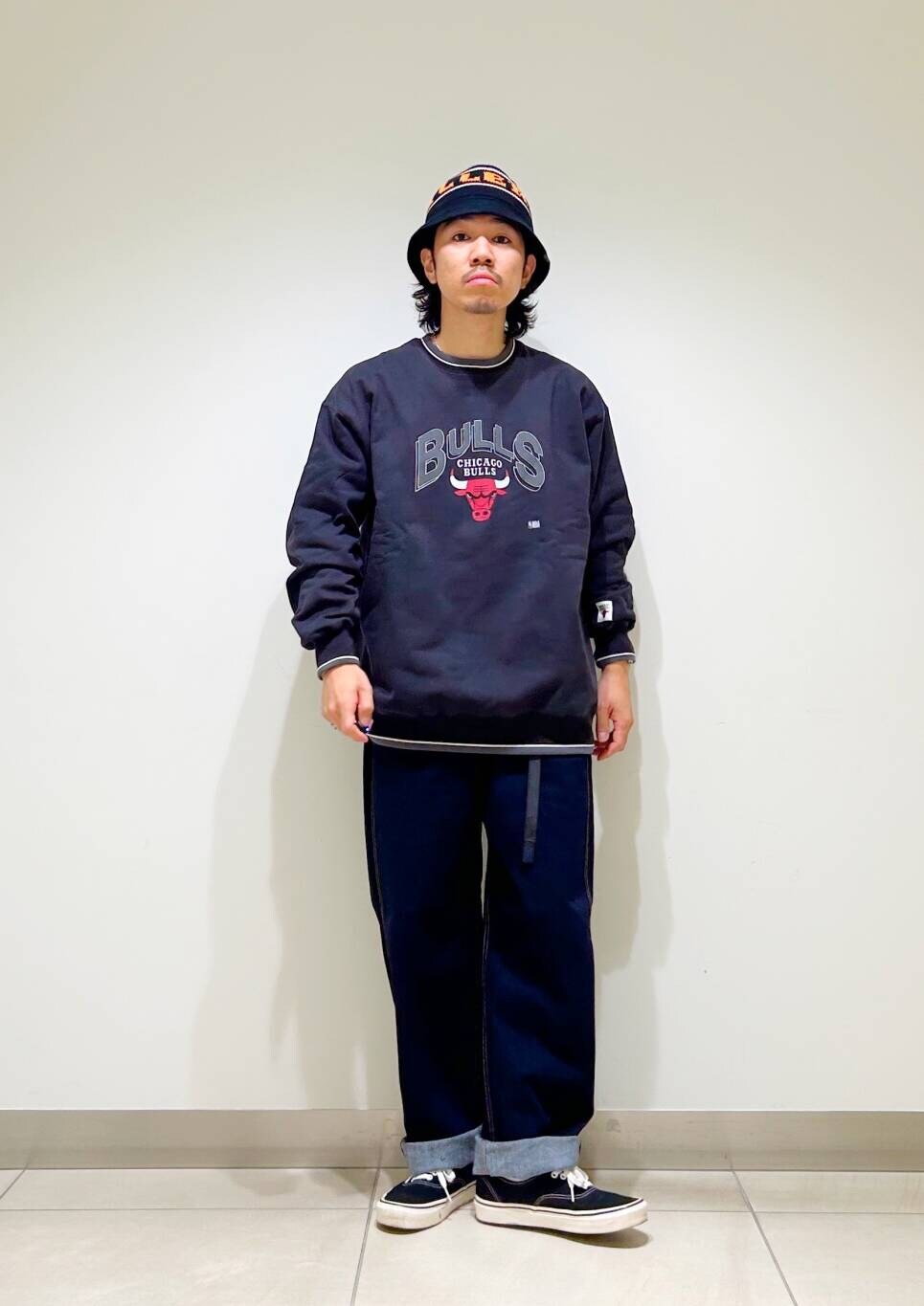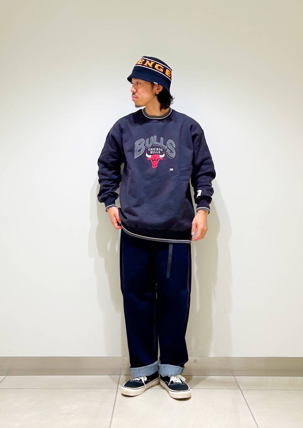 今回はNBAスウェットとグラミチ別注デニムパンツを使用したコーディネート。