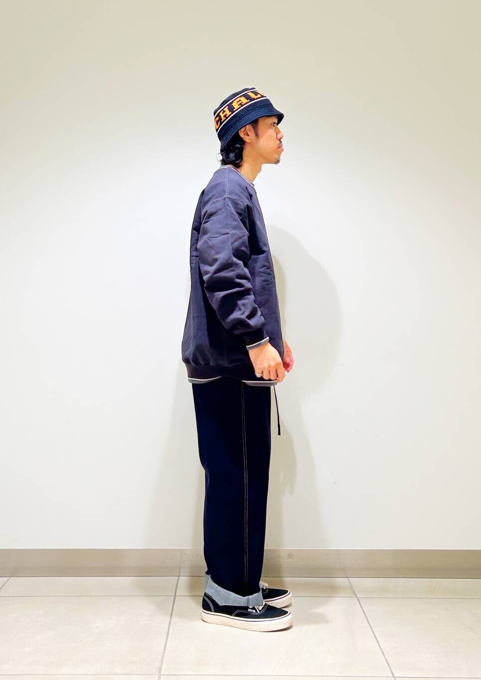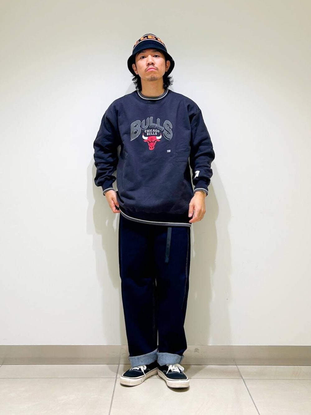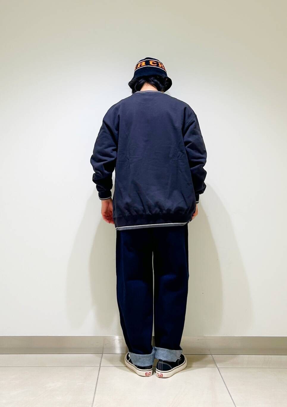 今回はNBAスウェットとグラミチ別注デニムパンツを使用したコーディネート。