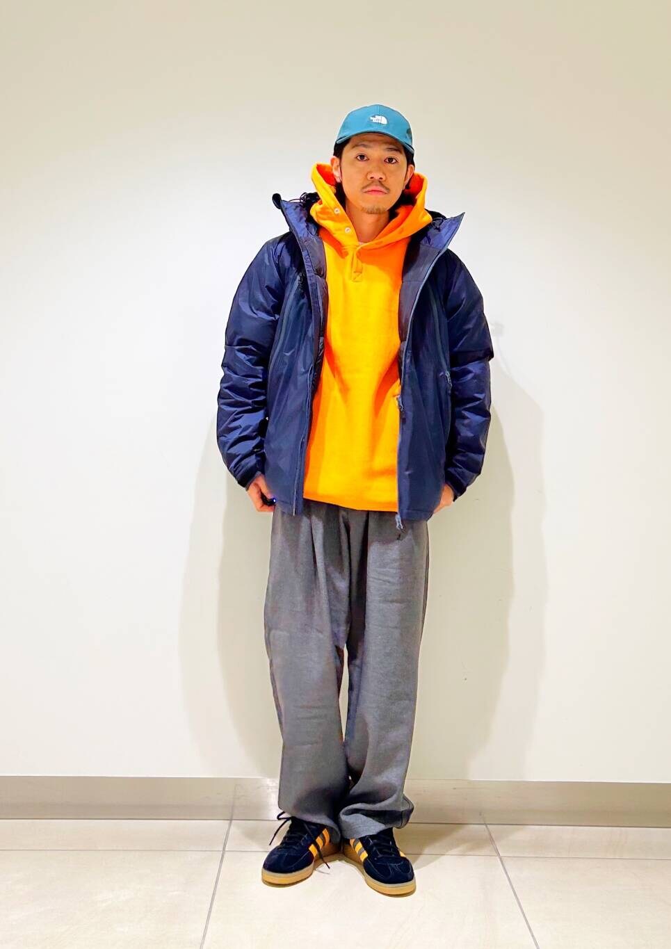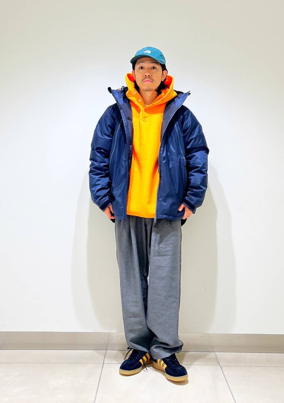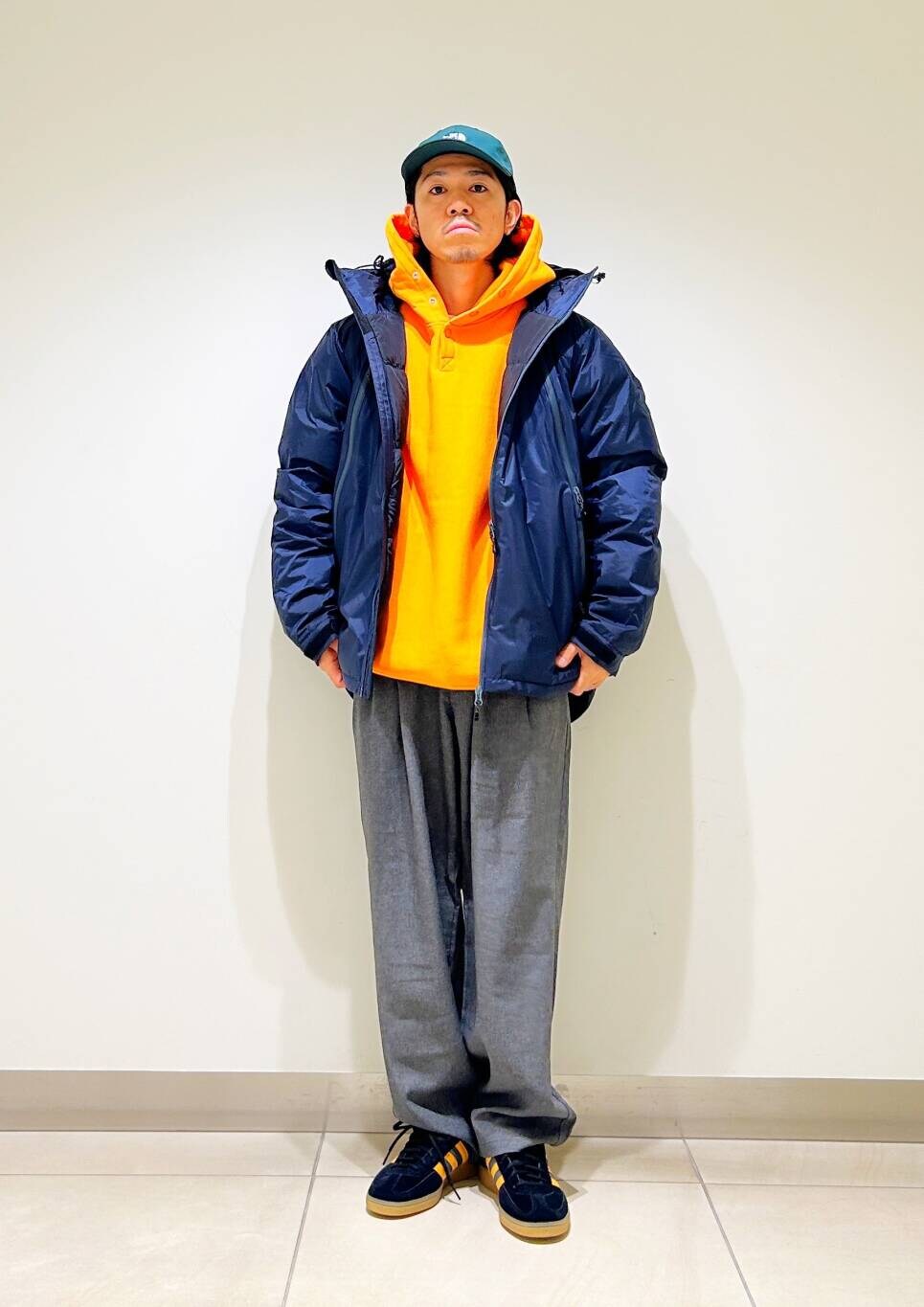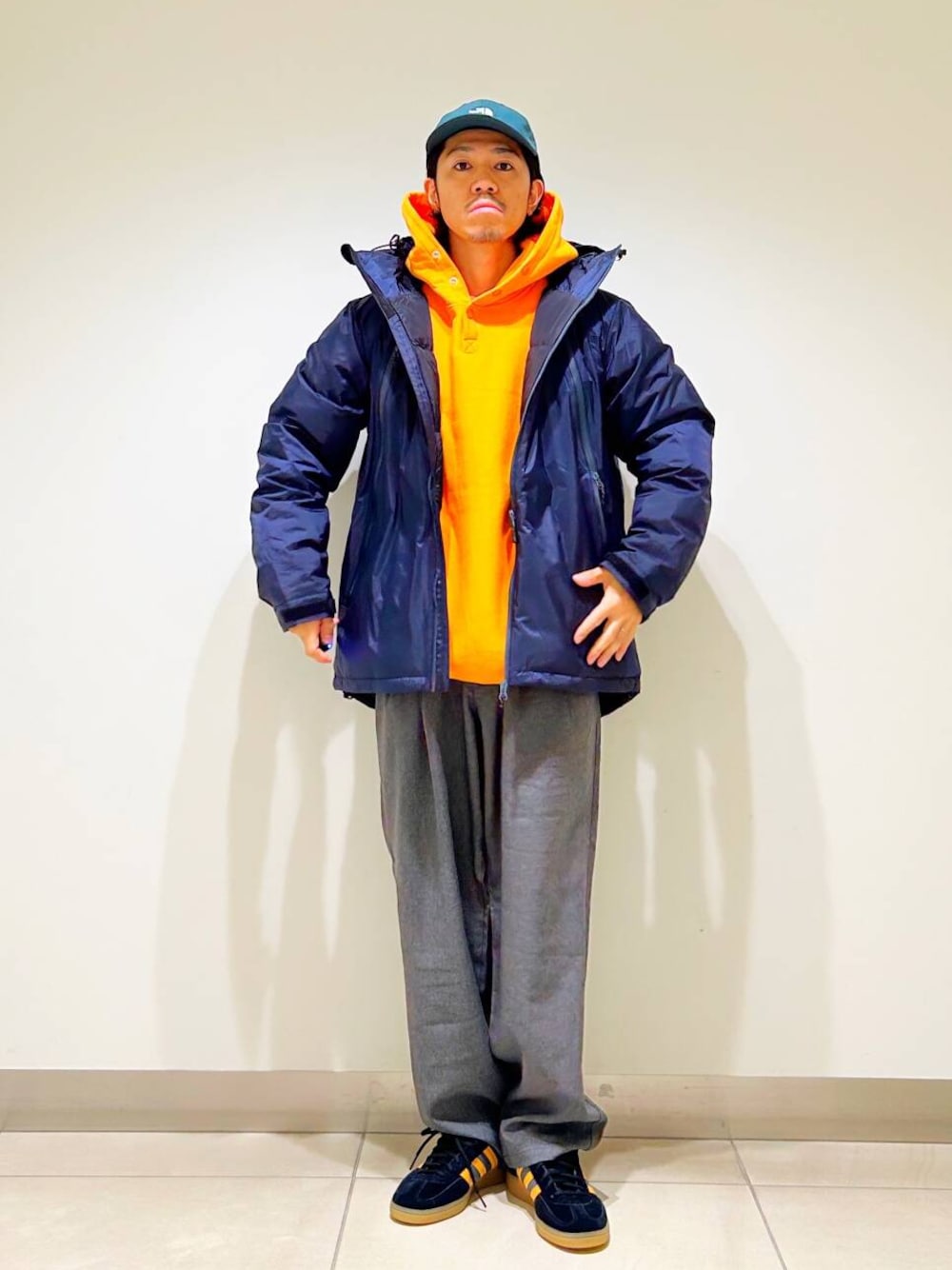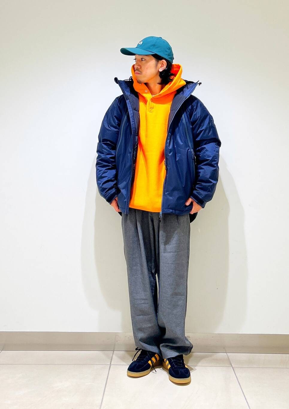 今回はnangaダウンブルゾンとツータックイージートラウザーを使用したコーディネート。