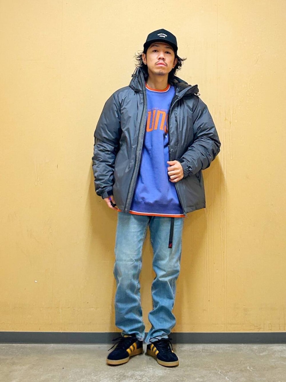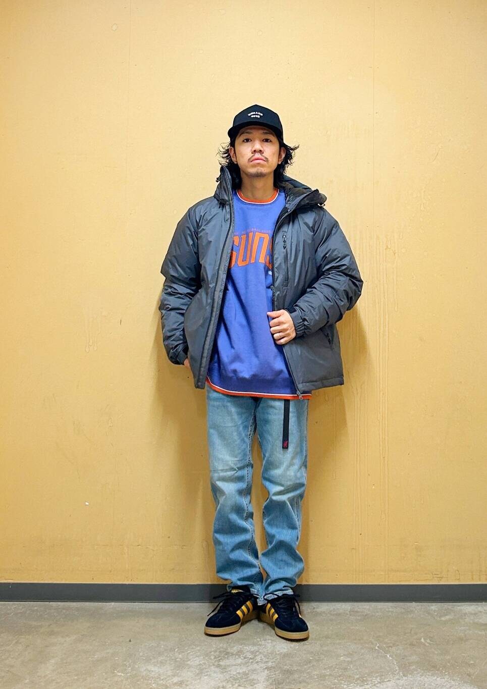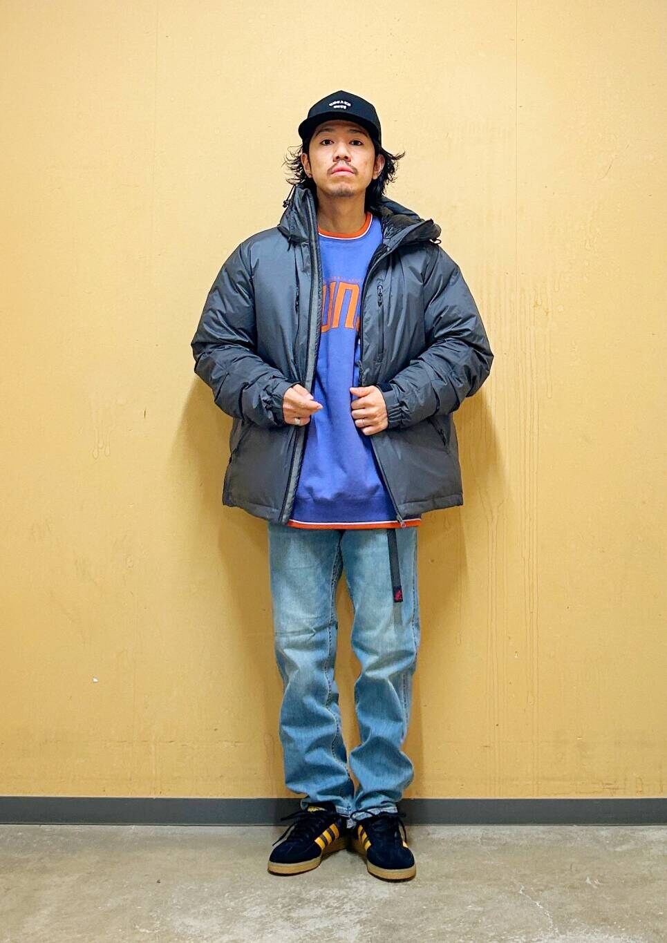 今回はnangaダウンブルゾンとグラミチ別注デニムパンツを使用したコーディネート。