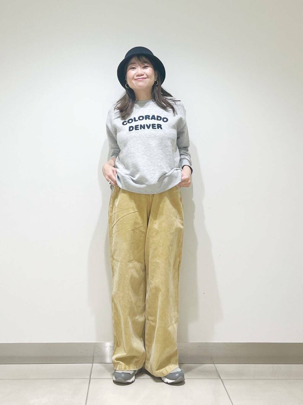スウェットとコーデュロイパンツ合わせをしてカジュアルな印象にしました☆
